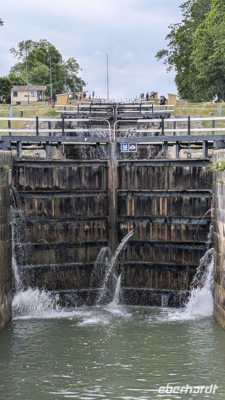 Die Schleusenanlage von Berg bei Linjöping sind ein Highlight und eine architektonische Meisterleistung im gesamten Götakanal, wo ein Höhenunterscheid von knapp 100m überwunden werden musste.