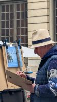 Am Stadthaus mit den interessanten Deckengemälden, die goldenen Figuren der Kunst-Musen, und die Darstellung des Universums in Form von Monde und Sternen.