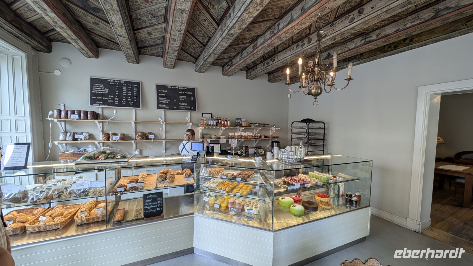 Ein gemütlicher Ort für eine typische schwedische Fika. Draußen sitzen auf der Terrasse am See, das Zwitschern der Vögel, die wärmende Sonne und die kontrastreichen Farben des beginnenden arktischen Sommers. 45 Minuten vergingen hier wie im Flug.