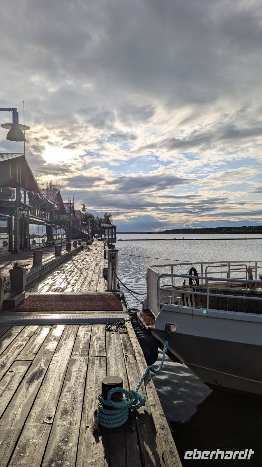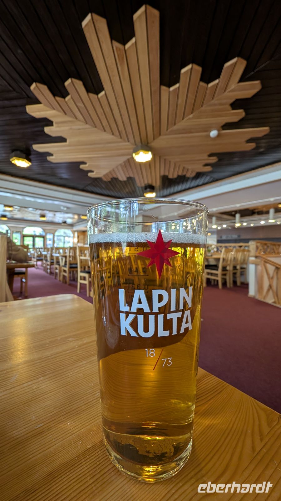 Lulea, wir sind im Reich der Ureinwohner angekommen. Es eilte etwas, da wir heute auswärts Essen mussten. Unten am Strand bei Hemmagastronomi. Tolles Ambiente und ein noch besseres Essen verwöhnte unsere Gaumen. Angefangen mit dem „kleinen Gruß aus der Küche, ein Käsekrokant mit Zitronencreme, die Vorspeise ein Weißlachs und die Hauptspeise, Rentiersteak so wie es sich gehört mit einer köstlichen dunkelbraunen Soße, Kartoffelgratin und Gemüse. Die Nachspeise, mein bisher bestes Creme Brullee. Dazu brauchte es natürlich ein gepflegtes Lager aus der hiesigen Brauerei. Nicht experimentierfreudige Personen bestellten ein Stiegl Bier aus Salzburg. Auch was Besonderes, so kurz vor dem Polarkreis.