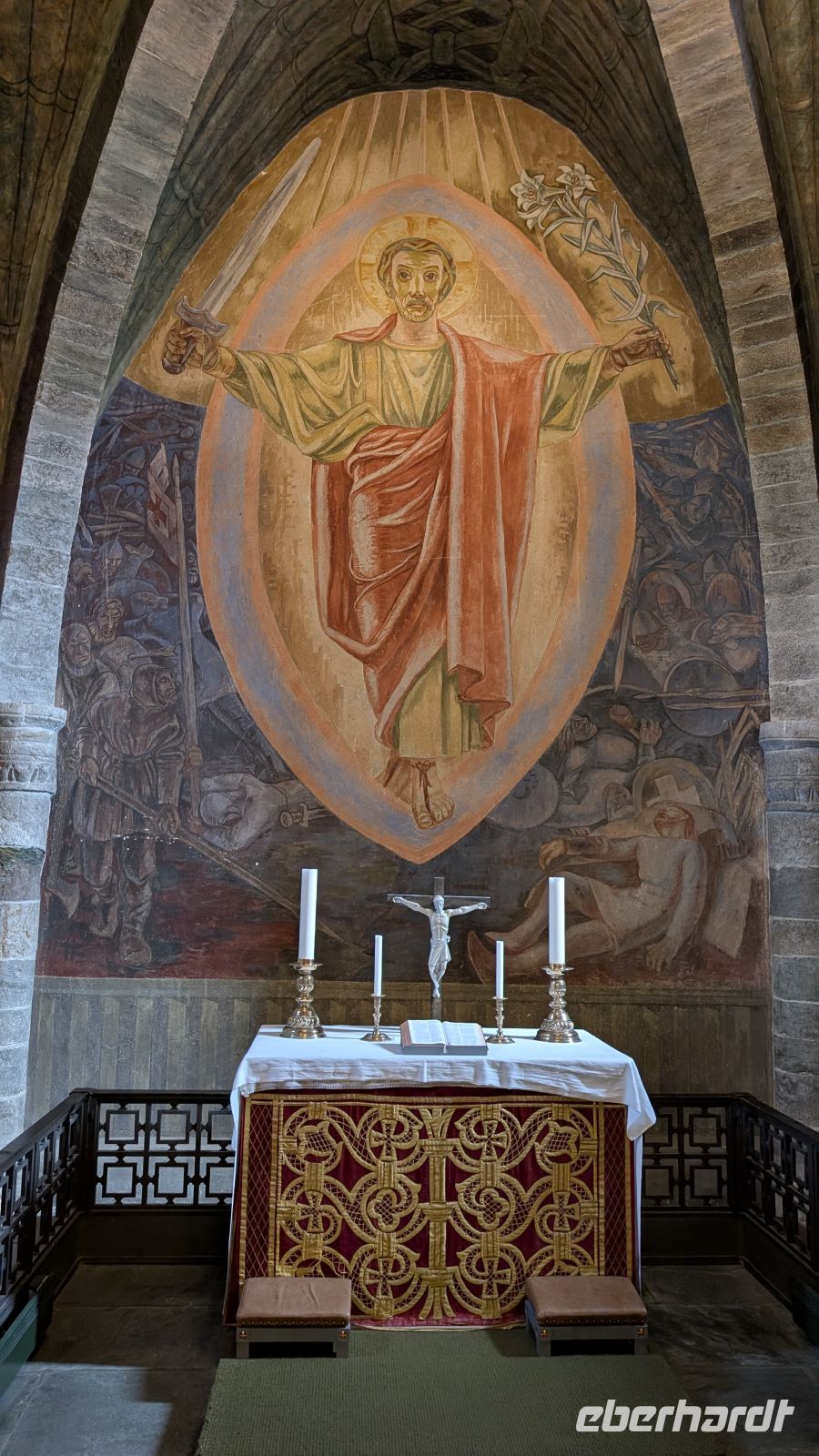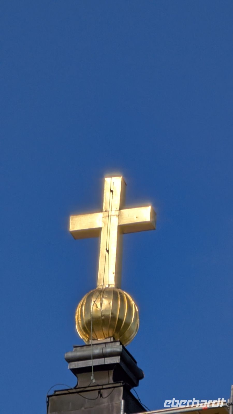 Wir hatten aber Glück, erstens waren noch keine Trauergäste da und zweitens tat ein bisschen Freundlichkeit und Entschuldigung seine Wirkung und so wurde uns erlaubt, kurz die Kirche zu besichtigen. Draußen vor und um die Kirche befreite eine ganze Putzkolonne den Unrat von Wegen und Wiesen. Alles musste sauber sein.