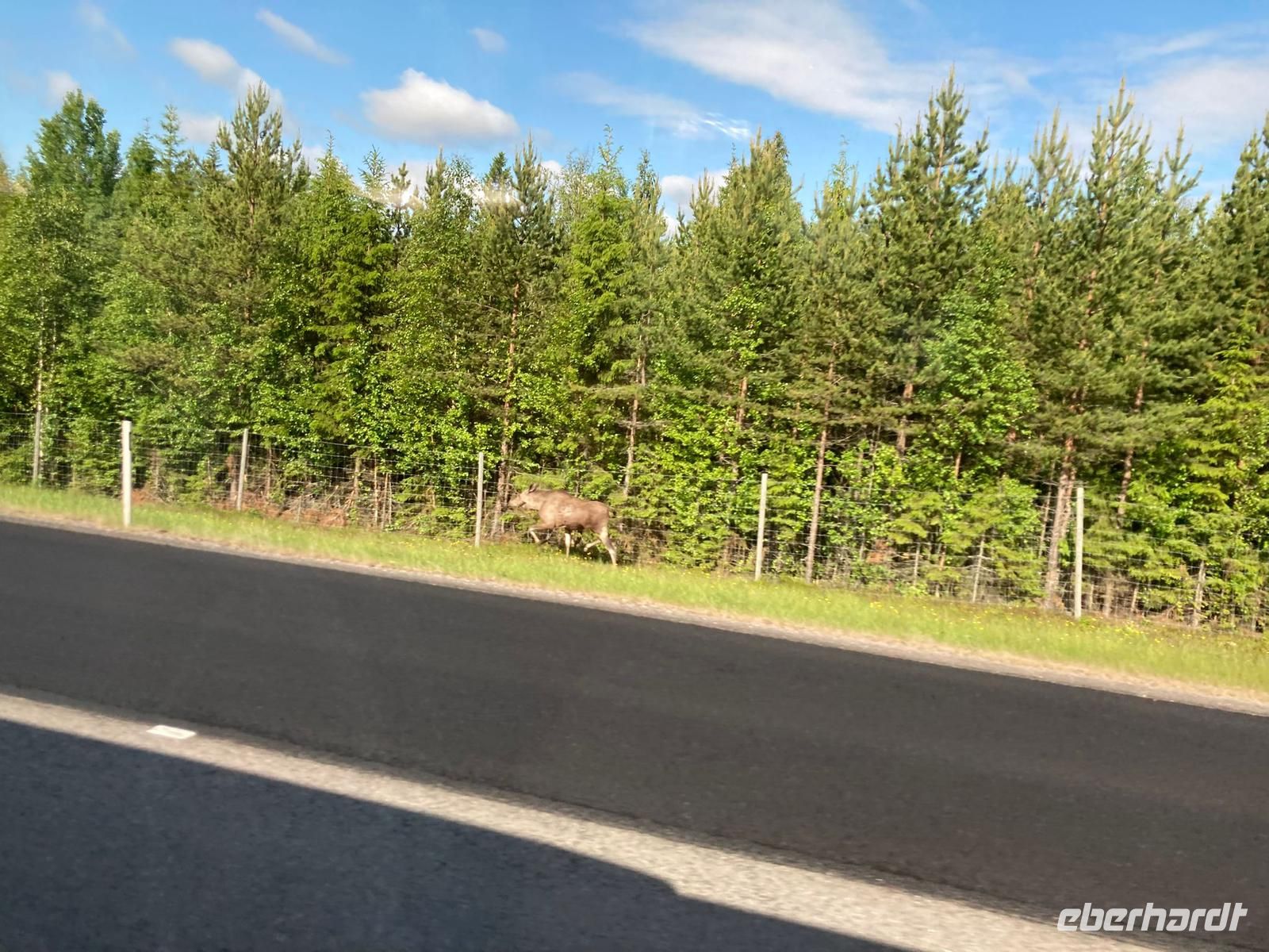 Einige Minuten später, wir waren gerade auf die E 4 zurückgekehrt, als erneut der Ruf „Elch links“ zu hören war.