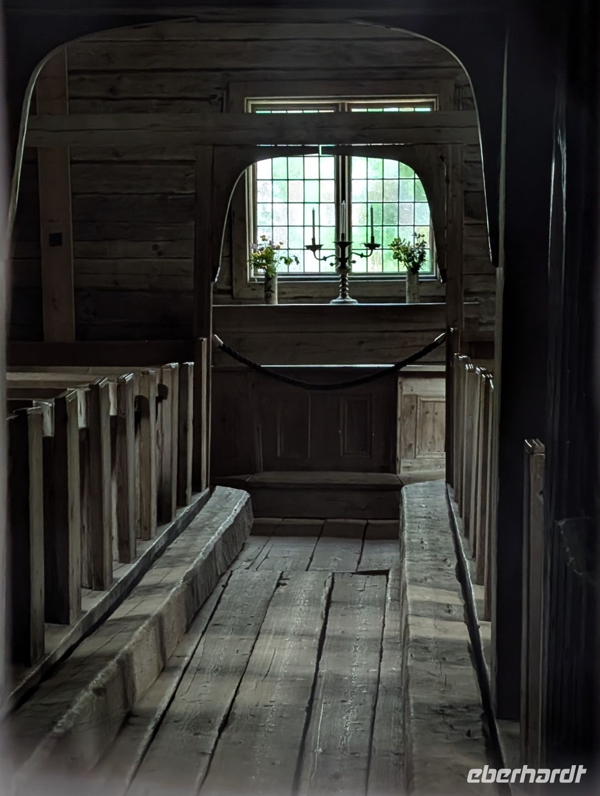 Einige der Häuser standen offen, die besichtigt werden konnten. Heute natürlich modern eingerichtet mit Küche, Heizung, Bad und Dusche. Diese Häuser kann man mieten und seine freie Zeit dort verbringen. Damit unterstützt man den Unterhalt und Erhalt des Kirchdorfes.