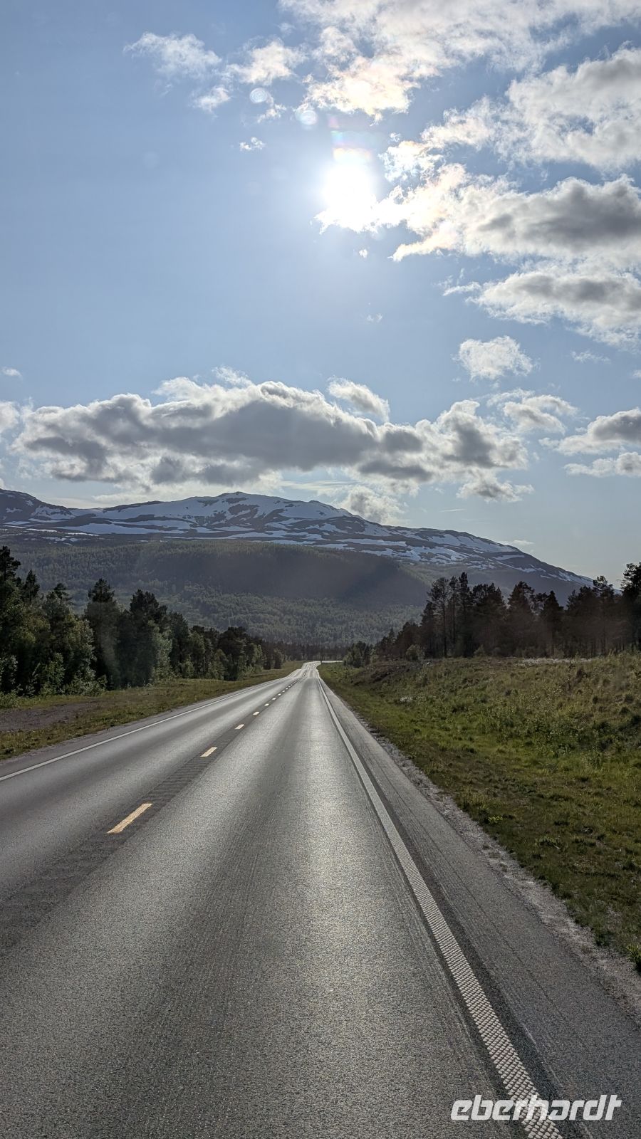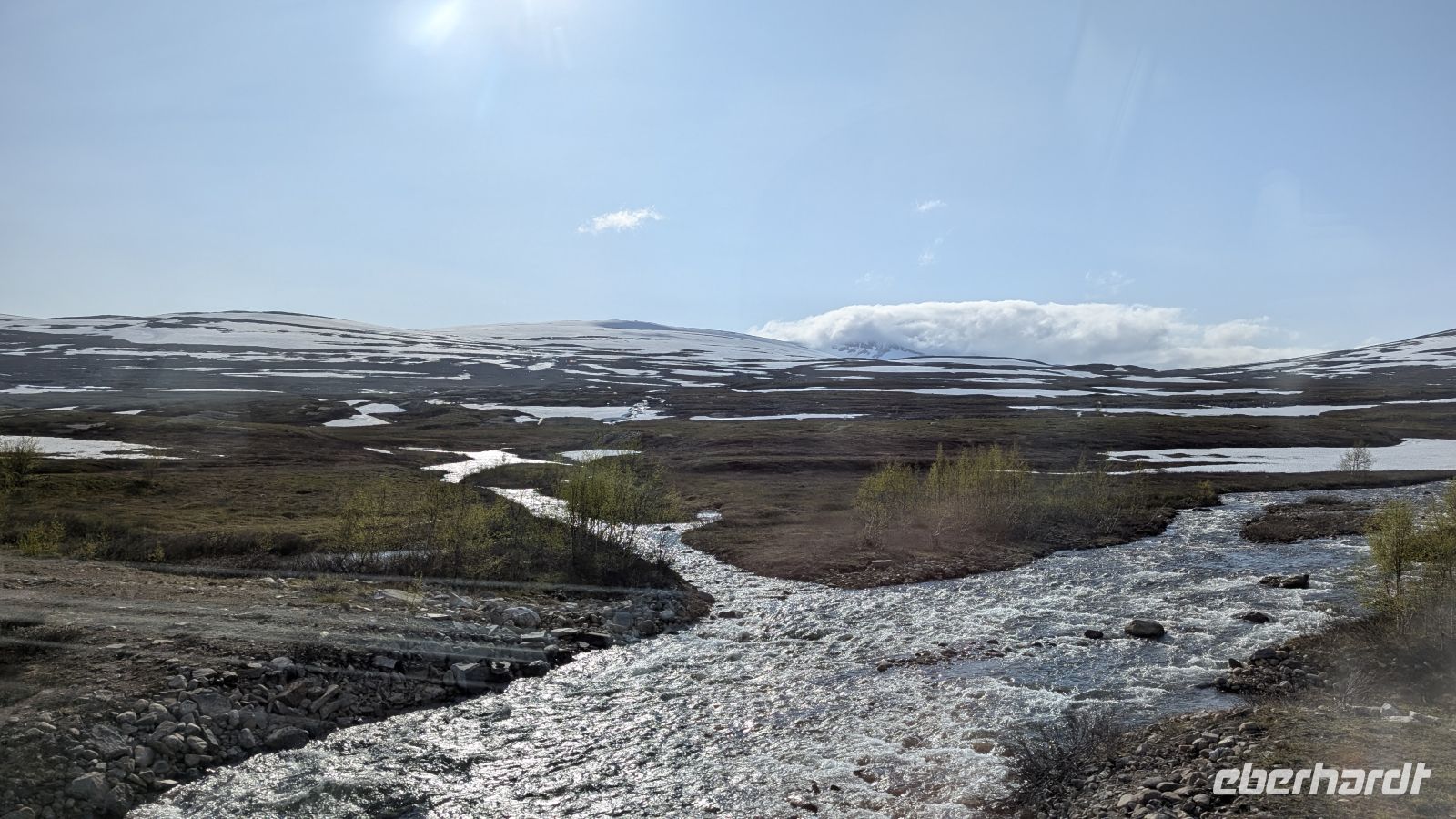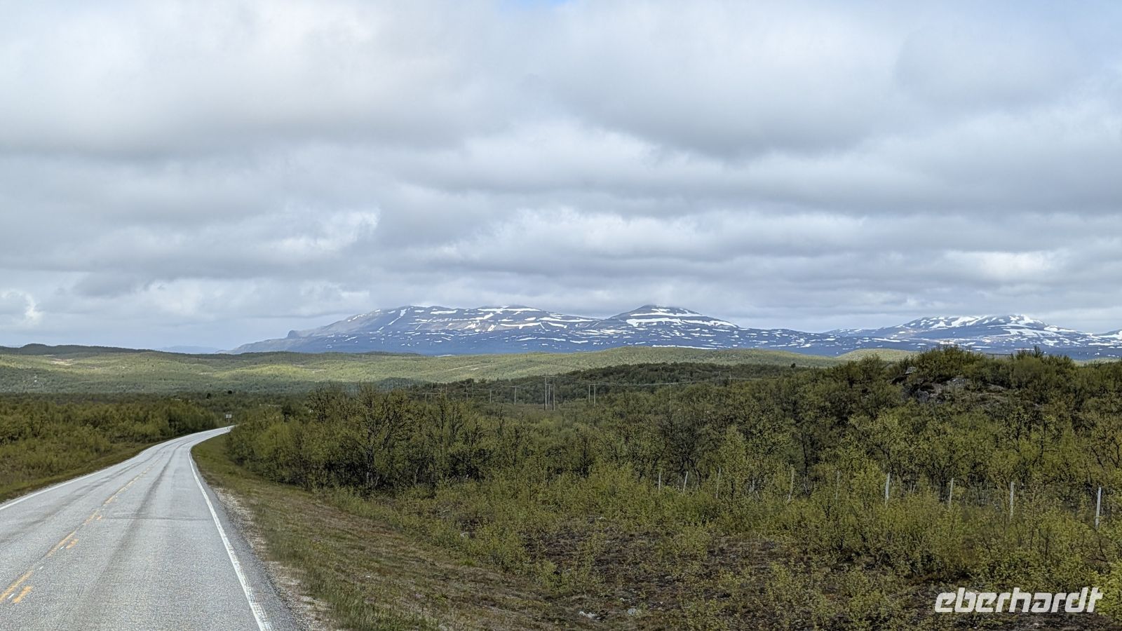 Die Fahrt hinauf zum 1000m hohen Dovrefjell war überwältigend. Unendliche Weiten, und die schneebedeckten Gipfeln des Trollheimen im Hintergrund.