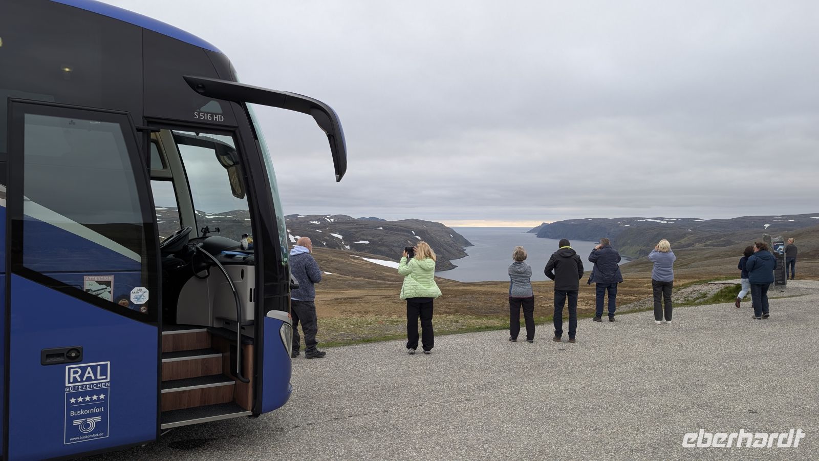 Das einmalige Erlebnis am Nordkap an der Weltkugel zu stehen und ganz für sich allein die besonderen Augenblicke mit den kurzen Sonnenlöchern zu genießen.