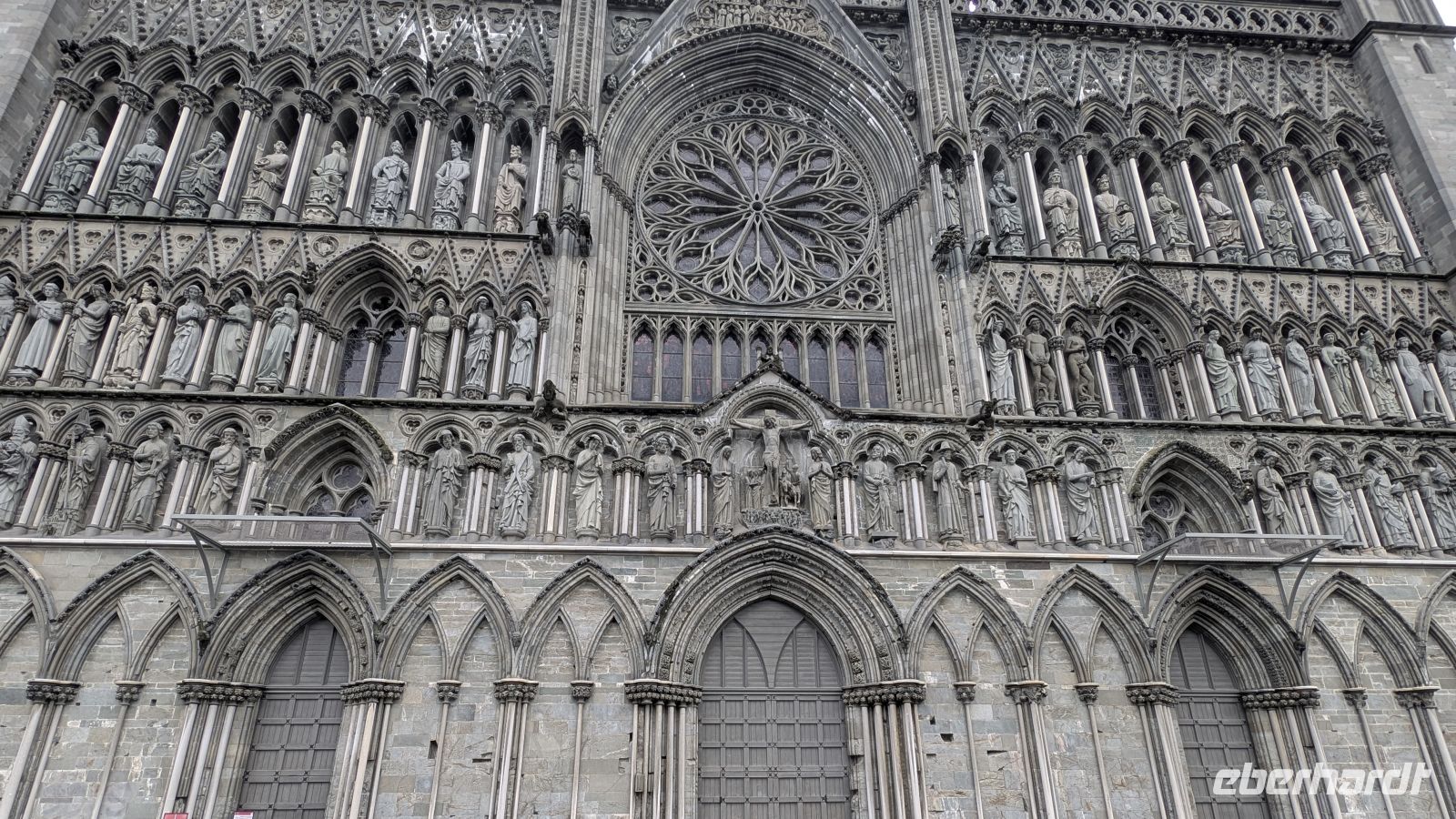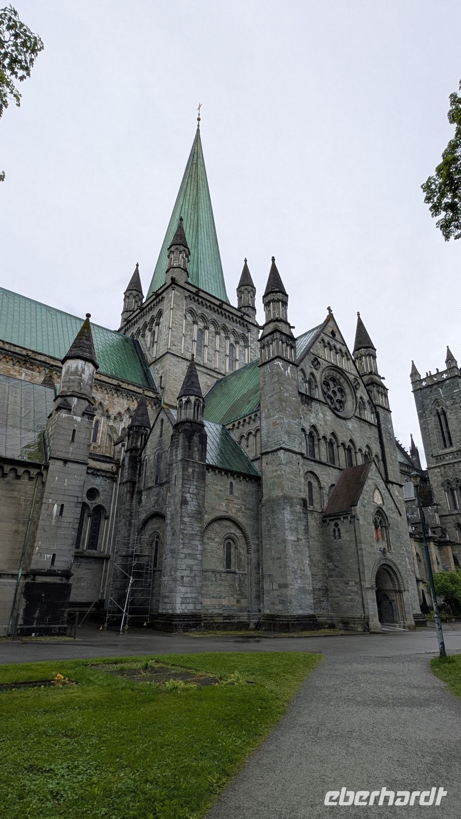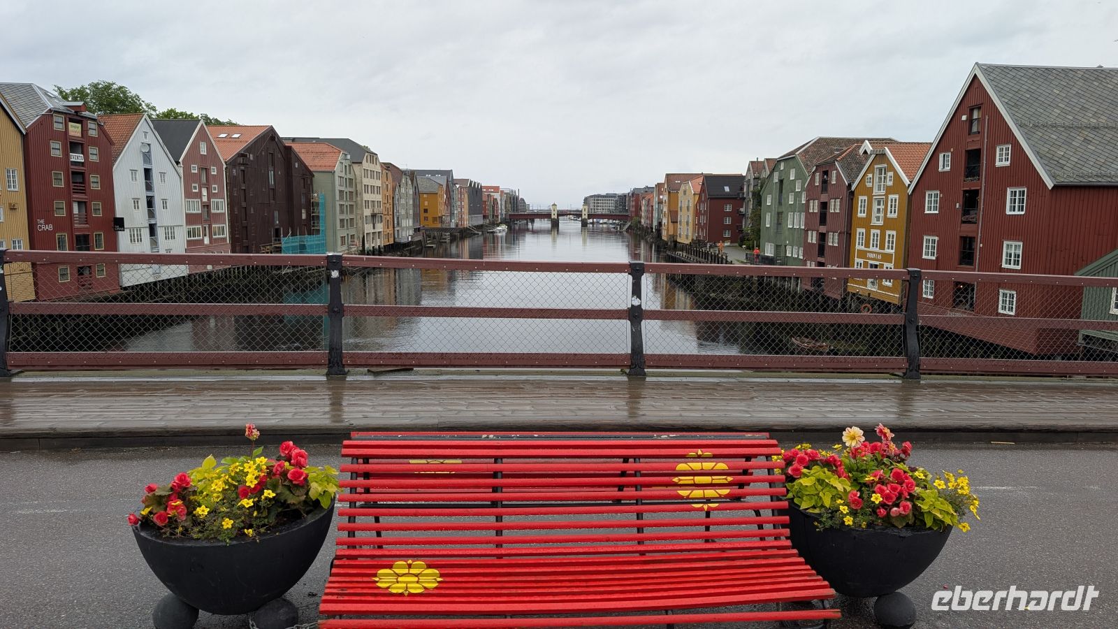 Nach anfänglichem Regen, der uns wieder die Regensachen aus dem Koffer holen ließ, schien beim Aussteigen im Zentrum von Trondheim schon fast wieder die Sonne. Die Regenschirme und Regenkleider waren umsonst.