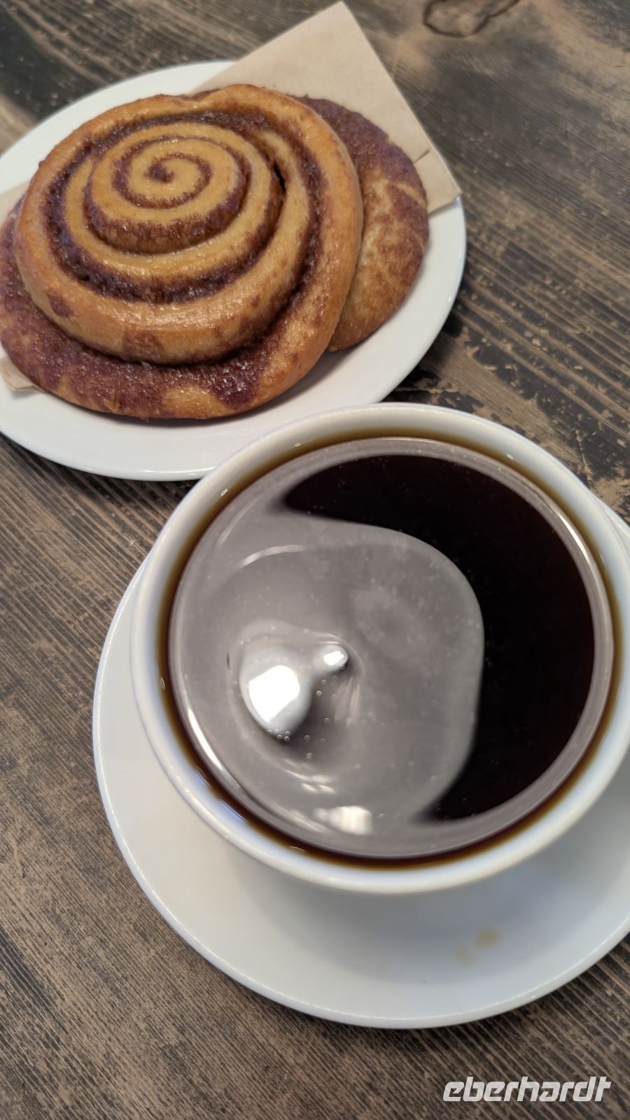 Aber aufpassen, die Möwen sind bestens gelaunt und schnell und auch keine Kostverächter. Auch sie wissen, wo es die besten Zimtschnecken gibt. Und unbeaufsichtige Zimtschnecken wurden kurzerhand, oder besser schneller Schnabel, vom Teller geholt und unter den anwesenden Vögeln brüderlich geteilt.