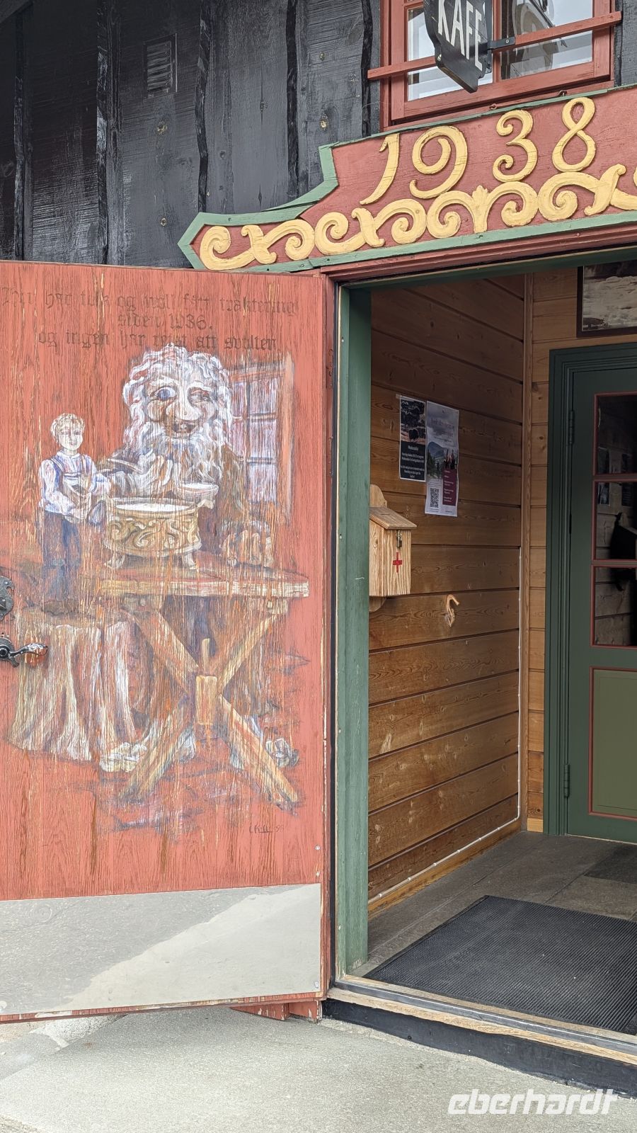Andere gingen gleich über die alte Holzbrücke und links in die Bäckerei mit Kaffeerösterei und probierten die guten Zimtschnecken, oder ein köstliches Eis. In Norwegen ein MUSS.