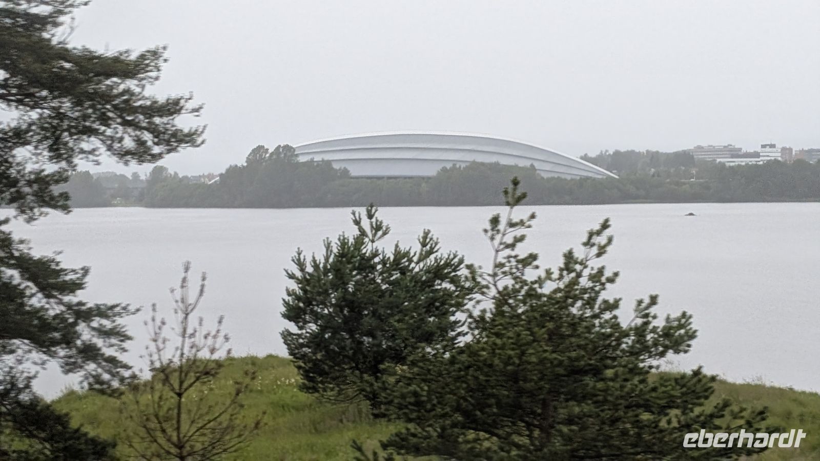 Ein kleiner Blick auf das imposante Eishalle mit 220m Länge und 25.000qm Dachfläche, ähnelt einem umgedrehten Wikingerschiff. 10.600 Menschen finden darin Platz und wenn mehr Platz benötigt wird, dann vergrößert man einfach auf 20.000 Personen.