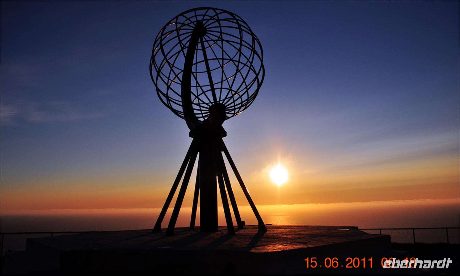 Annähernd 3 Stunden verweilen wir am Kap, sind fasziniert vom Nordkapfilm und natürlich der Nordkaphalle sowie dem berühmten Globus selbst. Gegen 0.16 Uhr erreicht die Sonne an diesem Tag ihren tiefsten Stand.