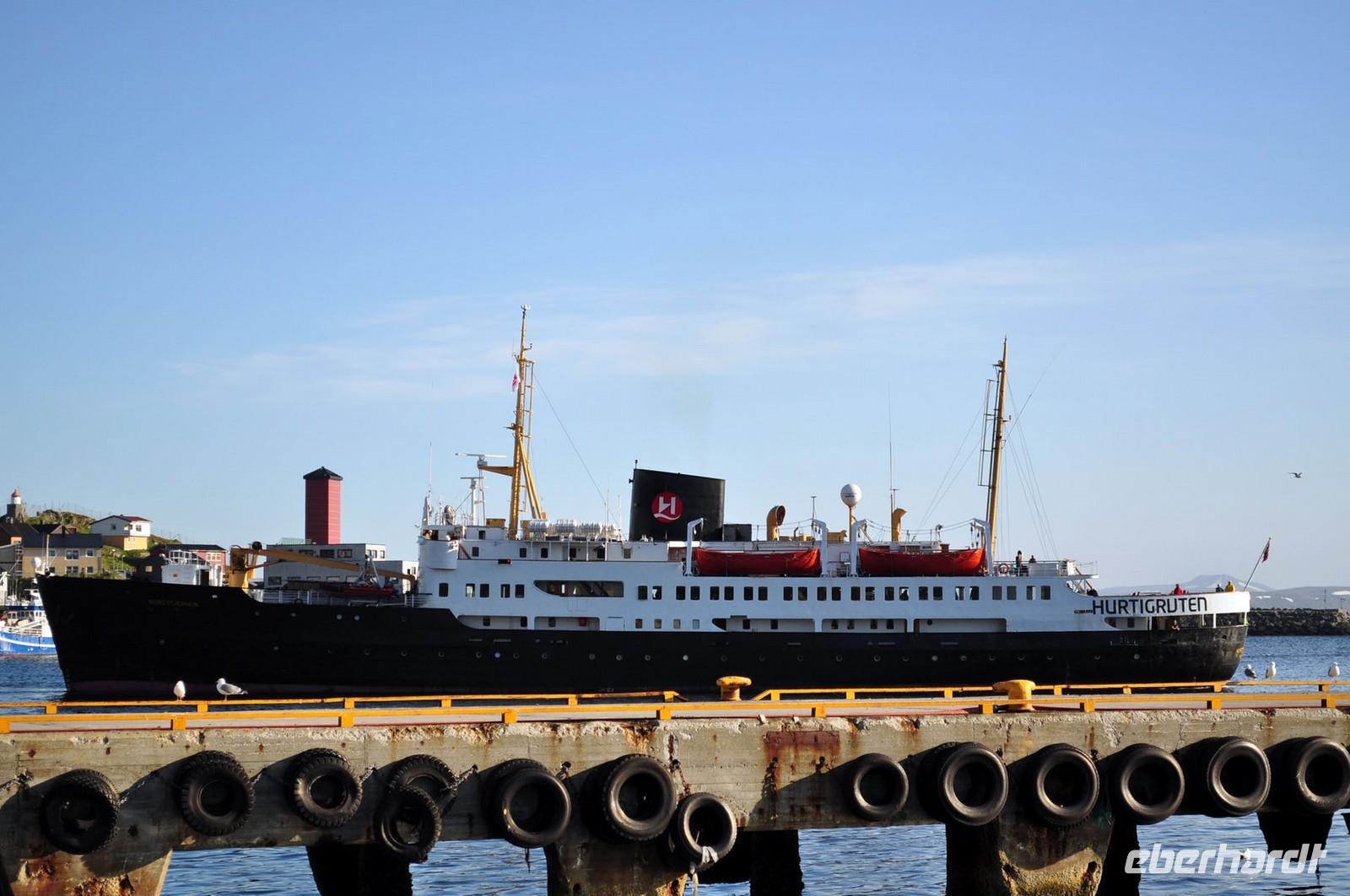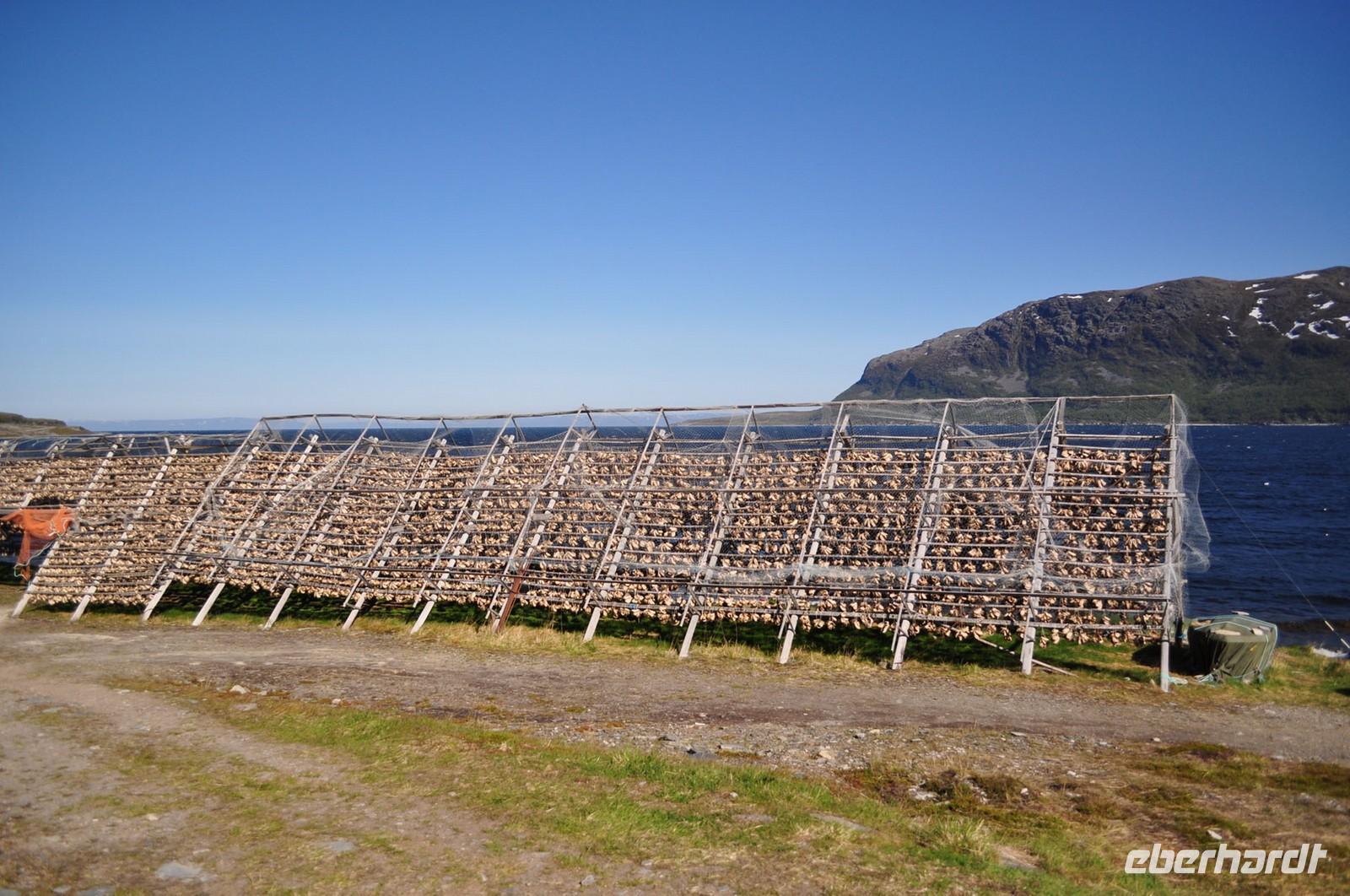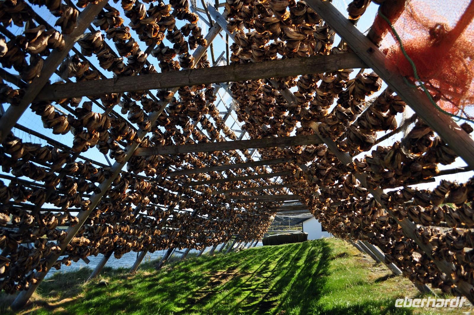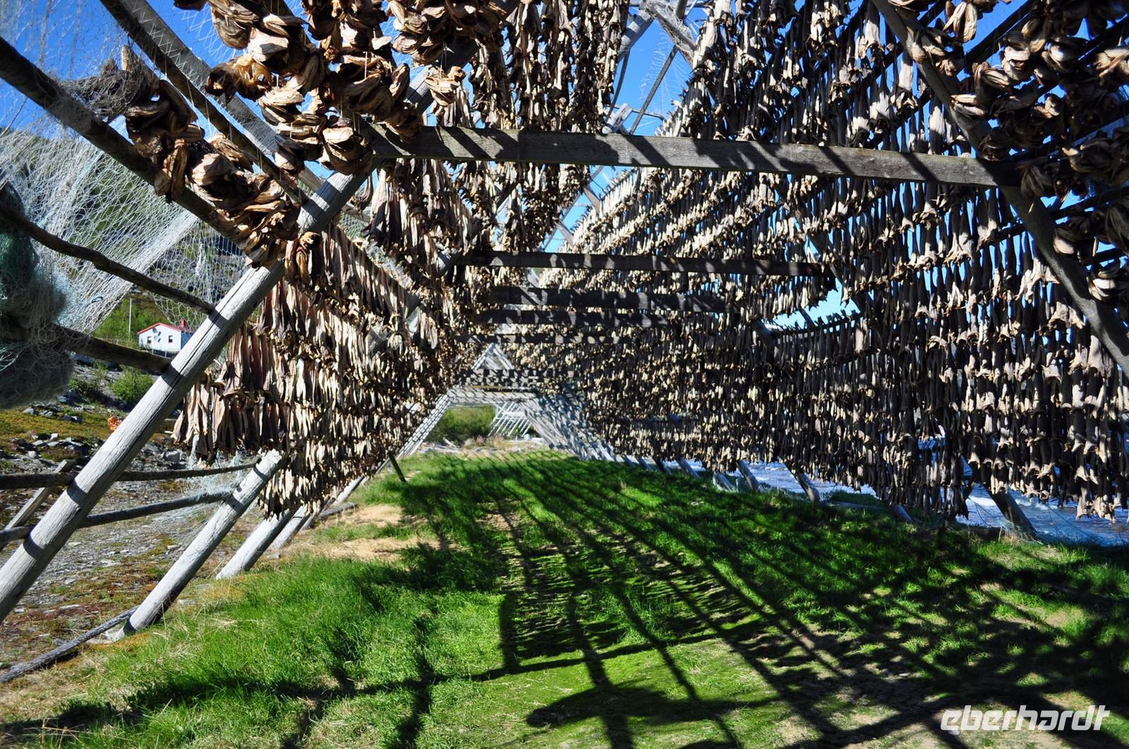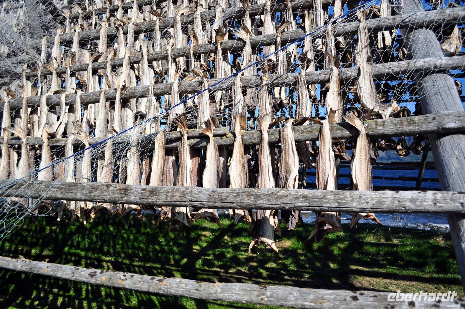 MS Midnatsol (ein weiteres Hurtigrutenschiff) zu empfangen bzw. zu verabschieden. Mutige können auch die berühmten Stockfischgestelle begutachten, die jetzt noch voll behangen und kurz "vor der Ernte" stehen.