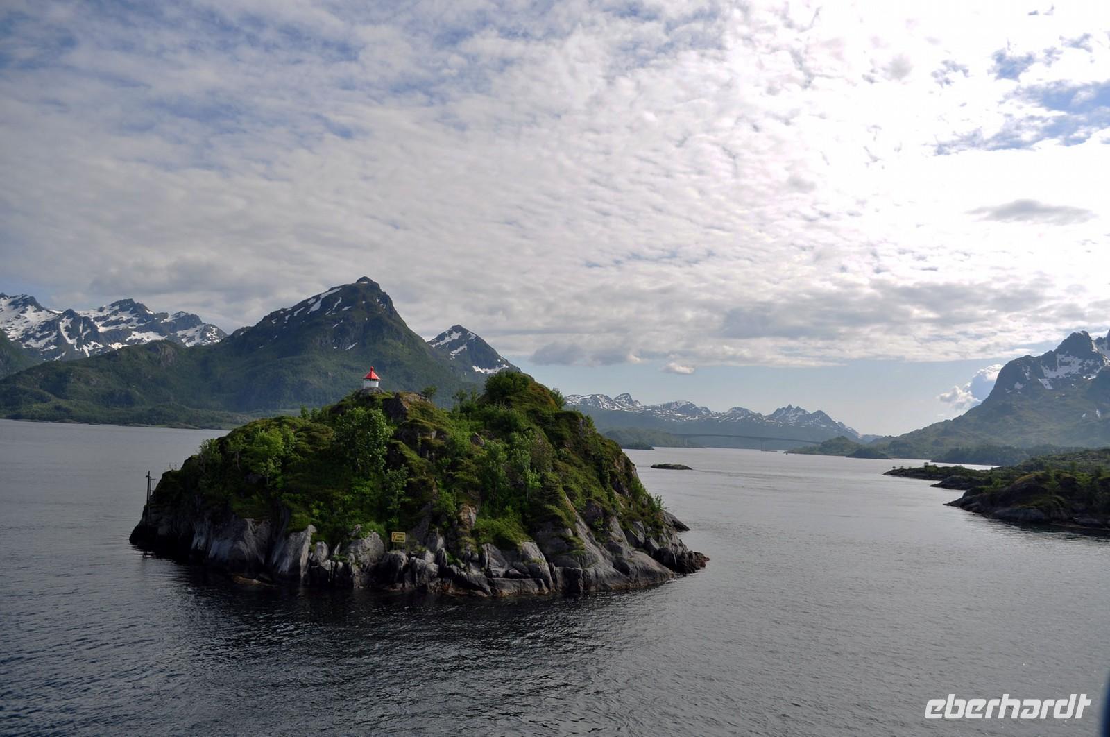 An diesem Tag werden wir sehr weit in die Welt der Fjorde vordringen fernab der E6. Wir nutzen dazu die Reichsstrasse 17. Auch als norwegische Küstenstrasse bekannt. Am Vormittag erreichen wir über die sehenswerte Schrägseilbrücke "Helgelandsbru" die Märcheninsel Helgeland. Es ist das Herzstück der nordischen Märchen und Mythenwelt. Noch heute bekommt der Betrachter die versteinerten sieben Schwestern und vieles mehr geboten. Dann die erste von drei Fjordfähren an diesem Tag. Die Überfahrt dauert eine Stunde. Nur wenige Kilometer über die folgende Insel und wir sind an der zweiten Fjordfähre. Wir sind nun im Bereich des Torghatten ein großer Felsen mit einem riesigen Loch. Wer genau hinschaut erkennt einen Hut zerschossen von einem Pfeil. Ein sehr bekanntes norwegisches Fotomotiv.
