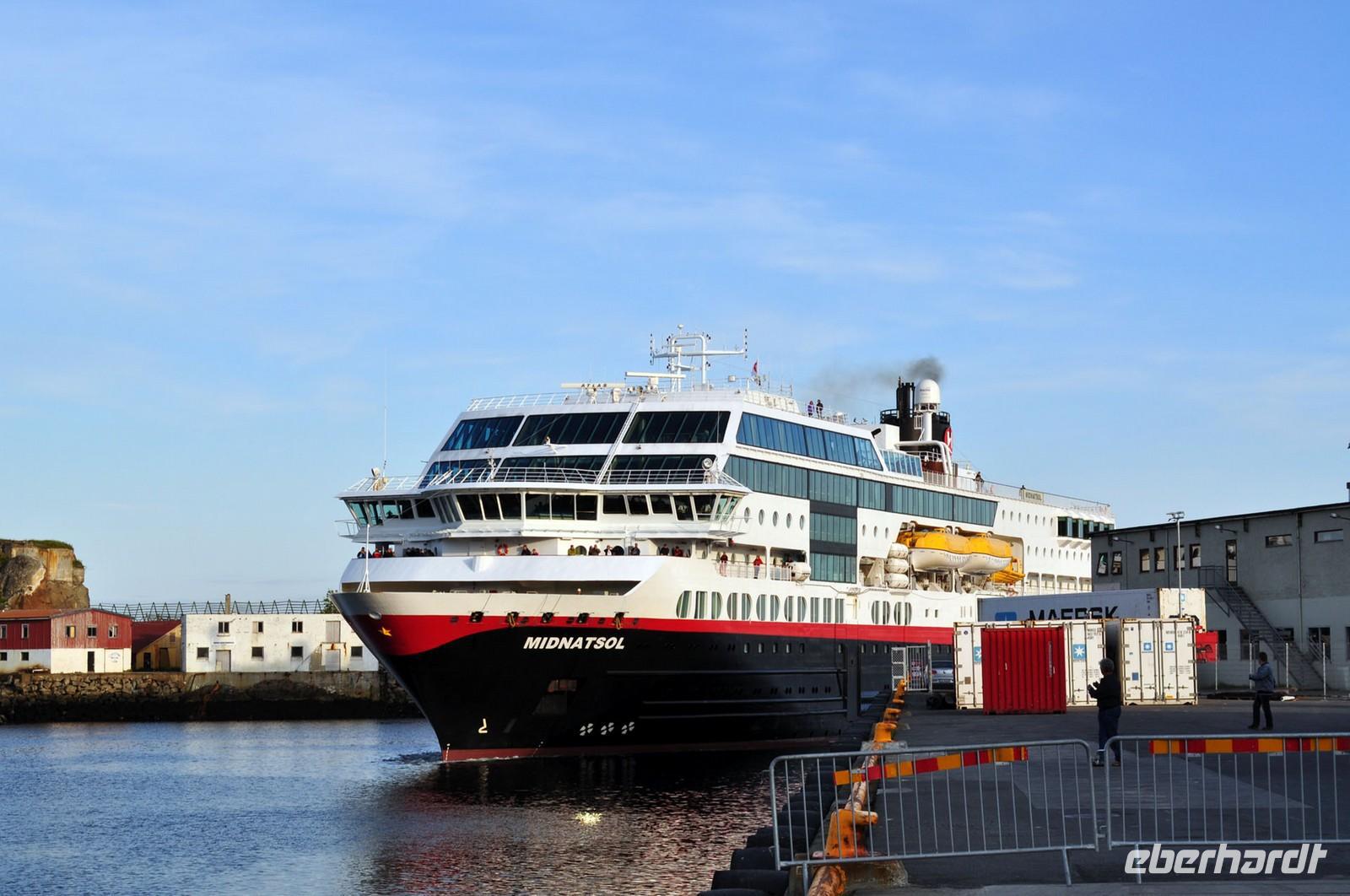 Gegen 0.30 Uhr fahren wir von nun an immer nach Süden bis nach Honningsvåg, überwältigt von der wunderbaren Mitternachtssonne genießt man die Nacht.