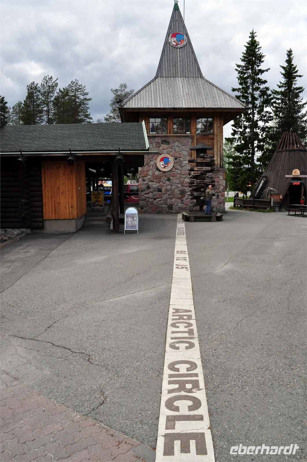 Aber keine weitere Zeit verlieren, der Polarkreis und der Weihnachtsmann erwartet uns bereits. Am Polarkreis werden alle Täuflinge natürlich mit Sekt in den erlauchten Kreis der Nordlandfahrer aufgenommen. Gemeinsam gehen die Täuflinge den Schritt in die Arktis.