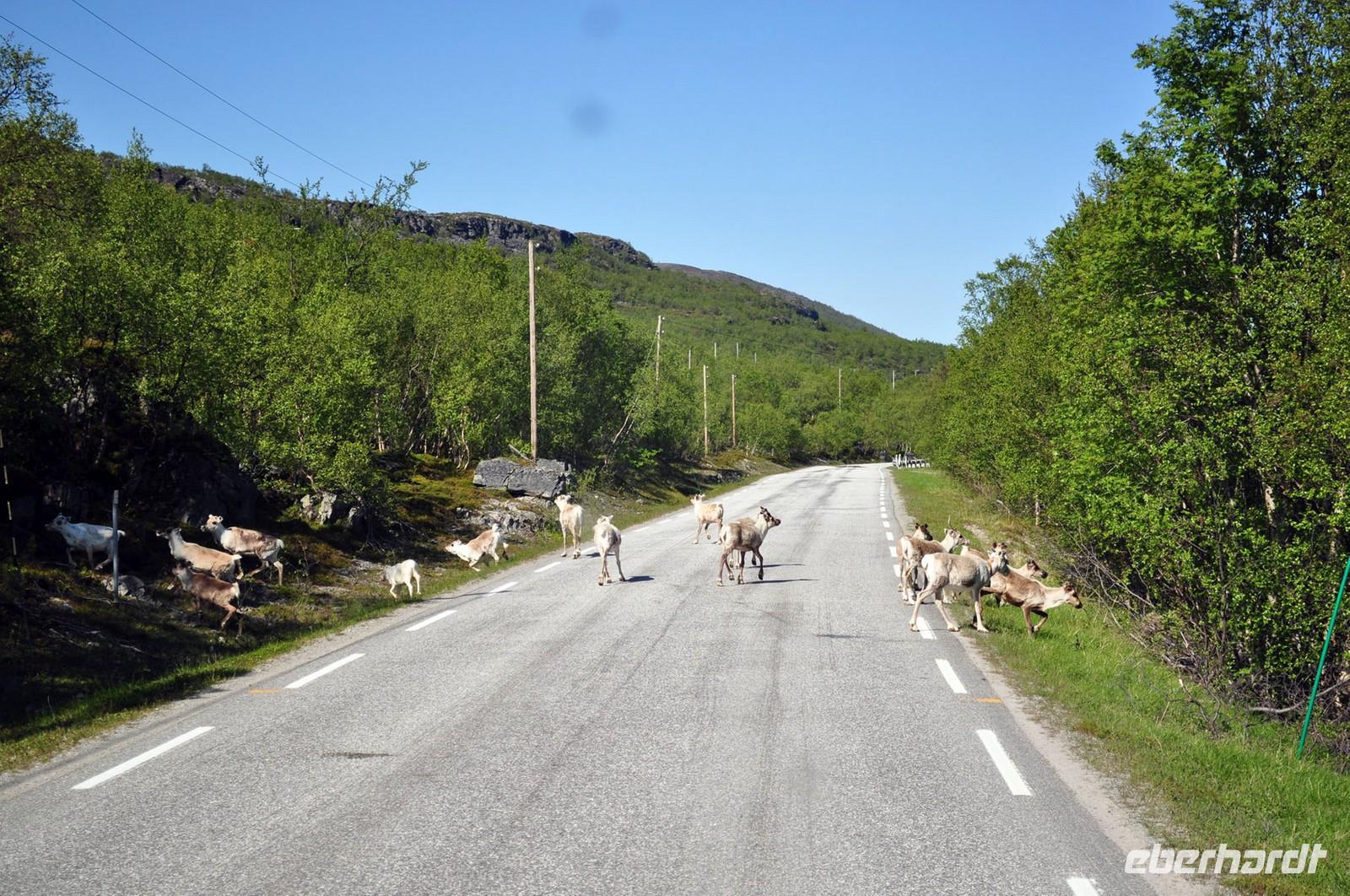 Unsere Reise mit diesem wunderbaren Höhepunkt keineswegs gelaufen. Es erwarten uns eine Vielzahl weiterer Höhepunkte. Die Fahrt nach Süden ist durch ihre Schroffheit, aber auch durch die vielen Rentiere geprägt.