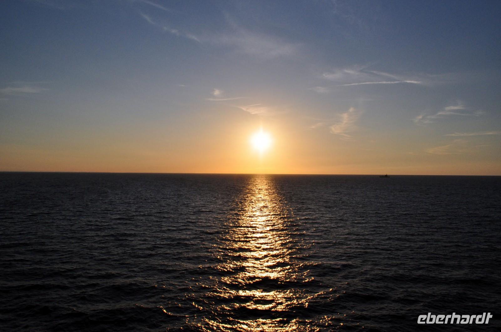 Gegen 17 Uhr betreten wir das Schiff. Die Zeit bis zum Abendessen kann mit der Erkundung des Schiffes, der Entspannung auf dem Sonnendeck etc. verbracht werden.