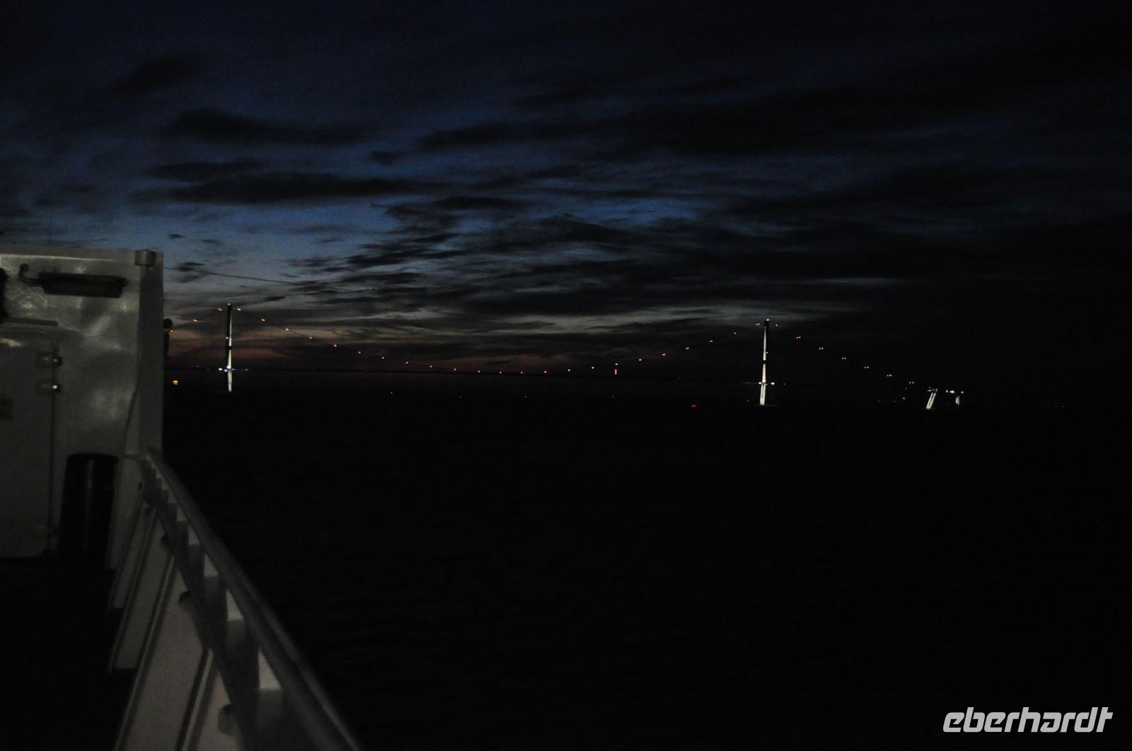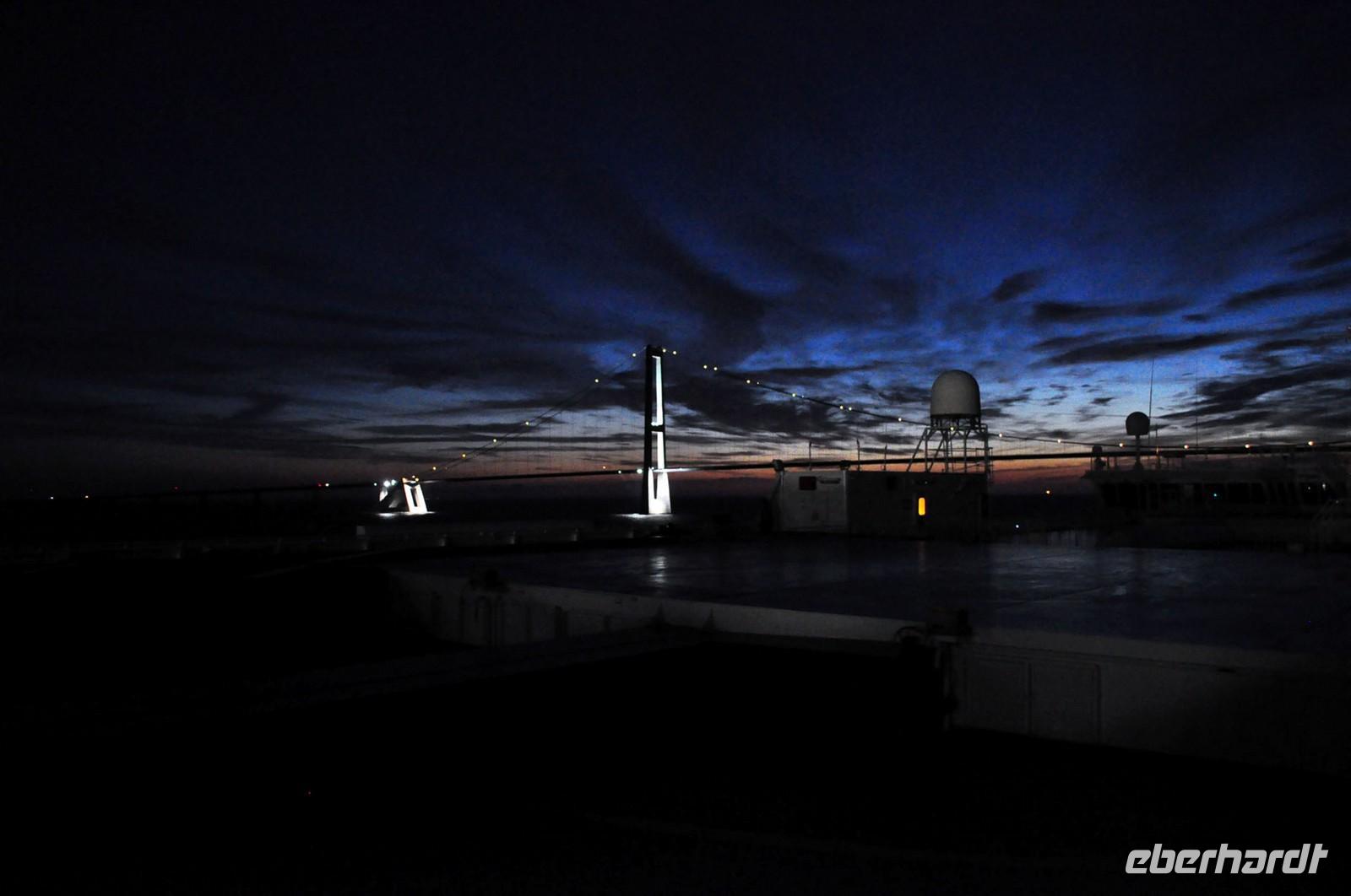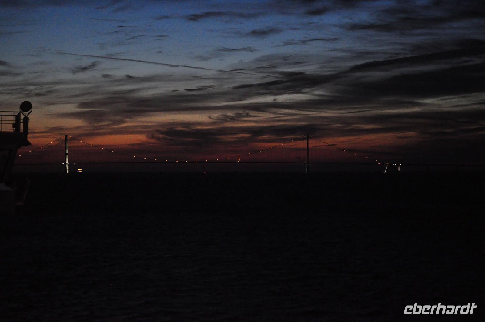 Nach dem Abendessen bleibt genügend Zeit die "kleine Kreuzfahrt" nach Göteborg zu genießen. Gegen Mitternacht gibt es dann noch ein richtiges Highlight, die Durchfahrt durch die berühmte Große Belt Hängebrücke.
