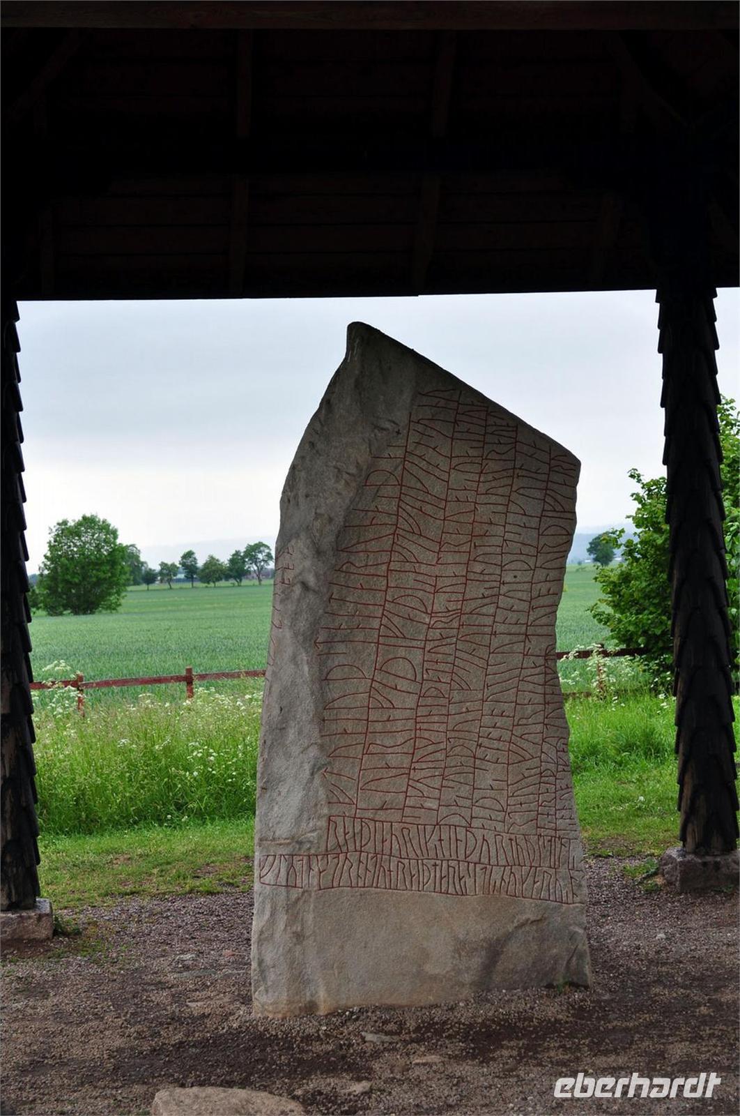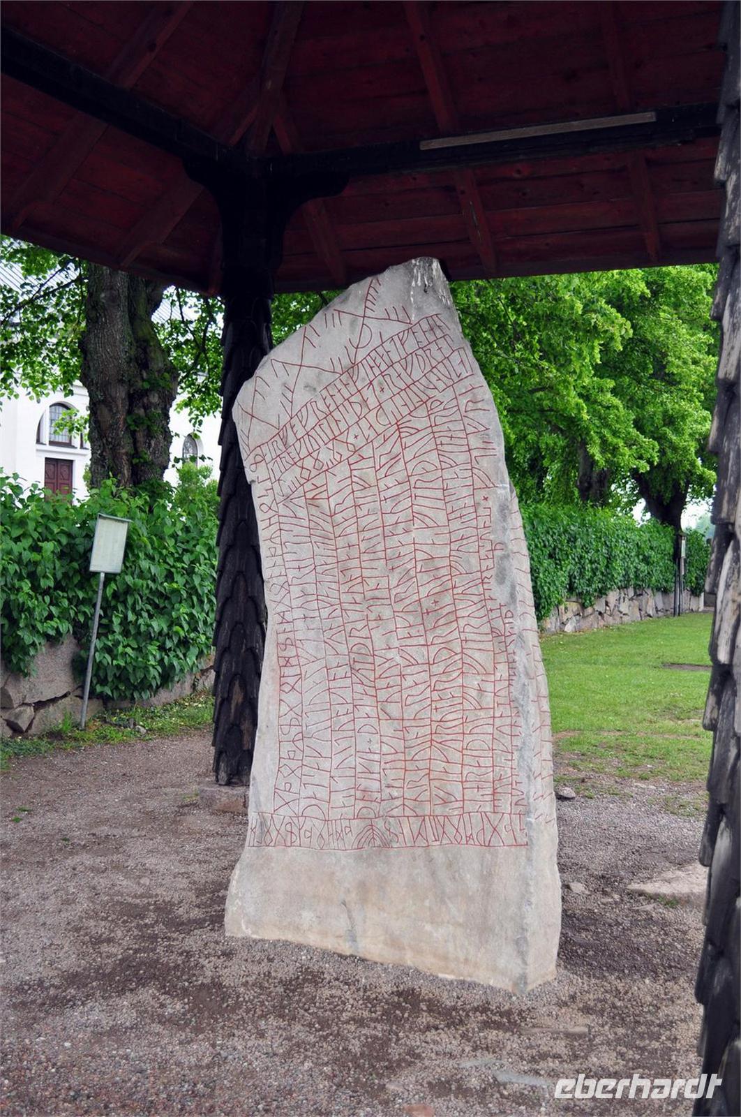 Am Nordende des Sees besuchen wir den Rökstenen, den größten Runenstein aus der Wikingerzeit, bedeckt mit über 700 Runen.
