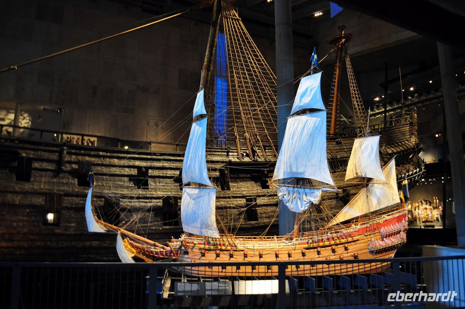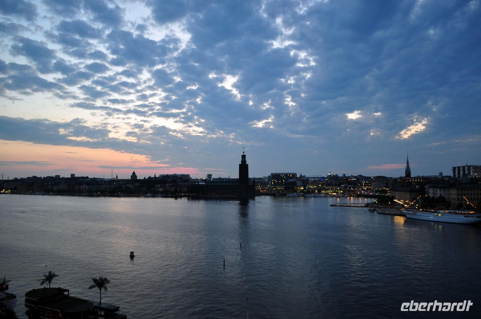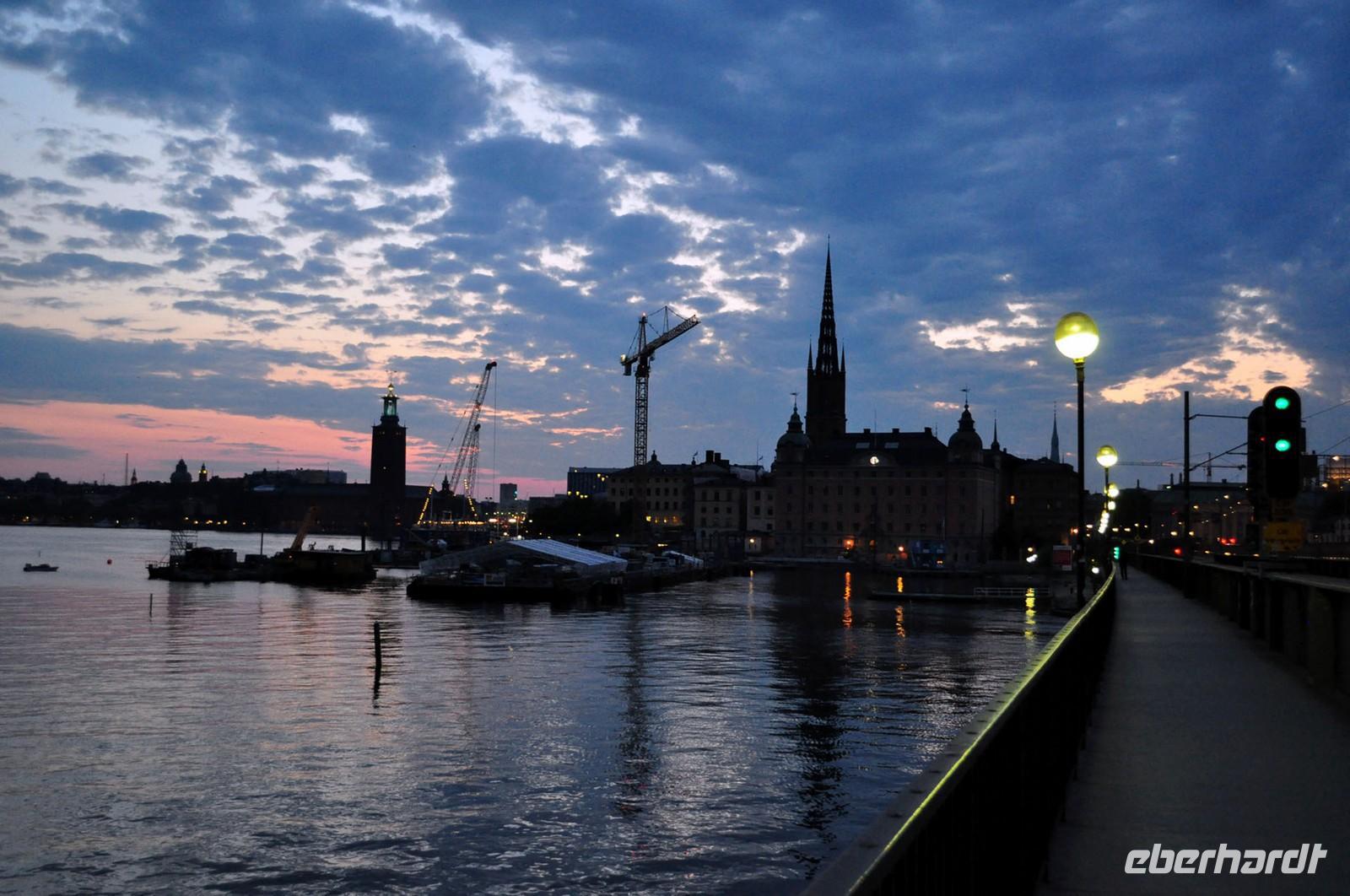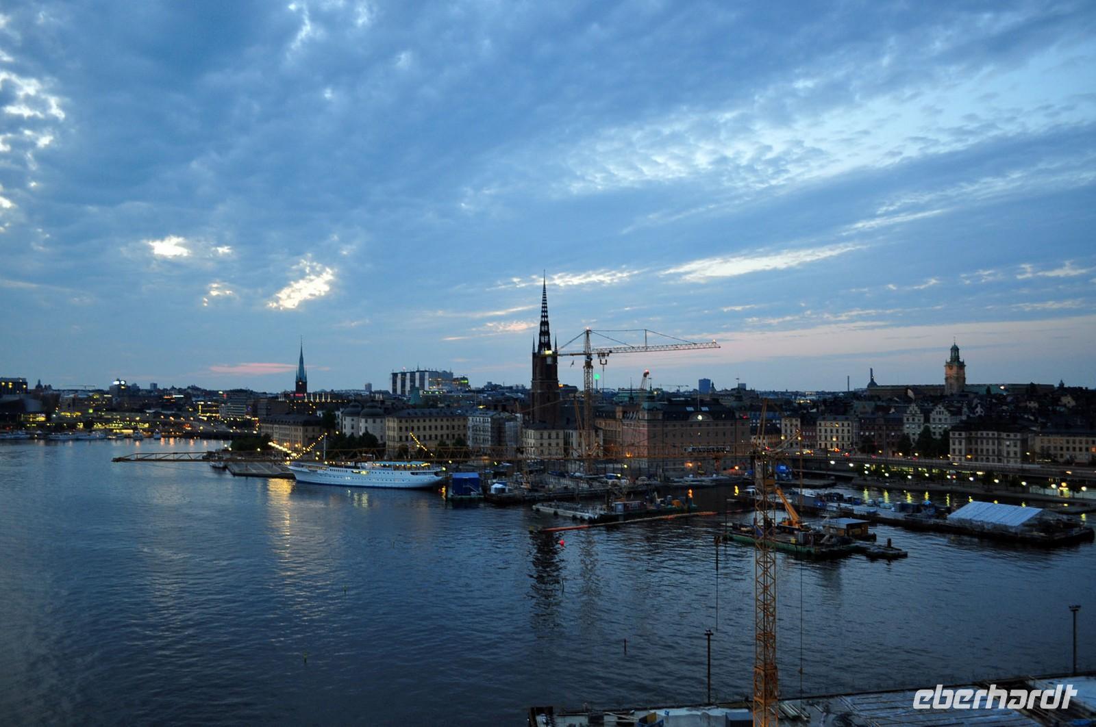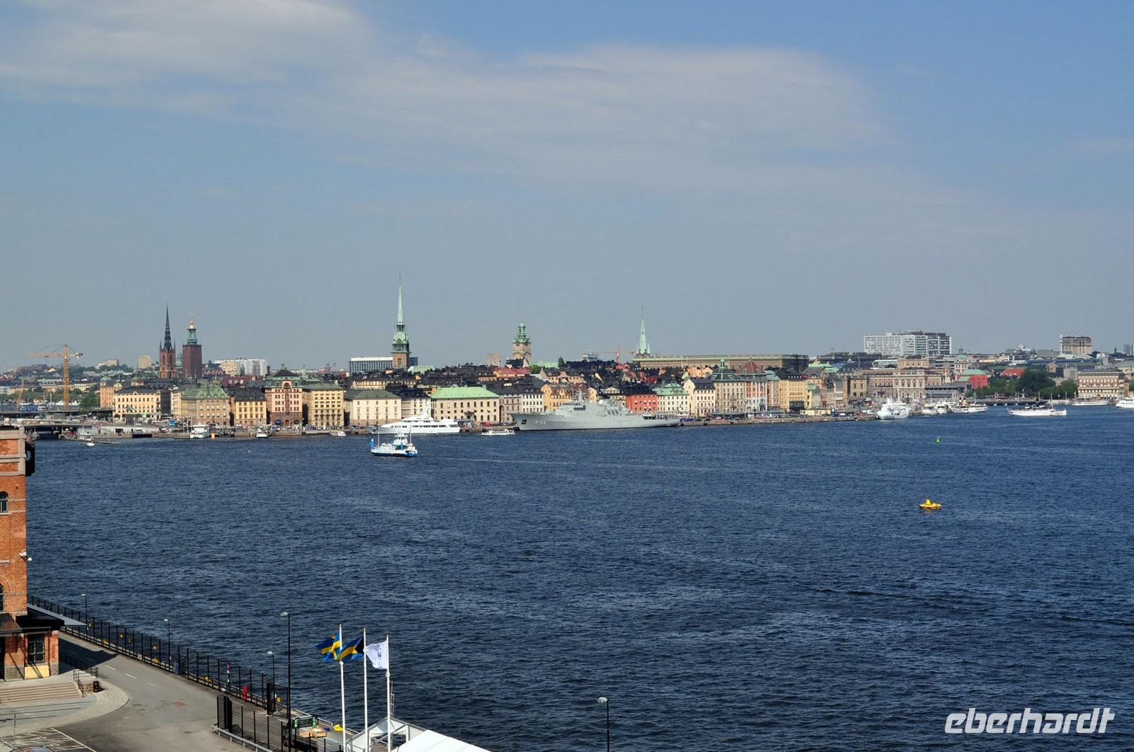 Am Morgen beginnt die Stadtrundfahrt. Als erstes besuchen wir das berühmte Vasa-Museum mit dem alten im 17. Jh. gesunkenen und 20. Jh. gehobenen Segelboot. Diese Entscheidung sollte sich als sehr genial herausstellen. Als wir ankamen waren wir allein, als wir fuhren war dort die Hölle los, Gruppen über Gruppen drängelten sich an uns vorbei ins Museumsinnere, für uns nicht relevant. Die Stadtrundfahrt ging weiter entlang den berühmten Museen wie der Skansen (Freilichtmuseum) und das Nordische Museum. Vorbei an der teuersten Wohnlage der Stadt, direkt am Wasser, vorbei am Schloss, durch Gamla Stan hinauf zu einem wunderschönen Aussichtspunkt auf der Insel Södermalm, oberhalb des Viking Line Terminals. Auf dem Rückweg ging über Riddarholmen und schönem Blick zum Stadhus weiter zur Wachablesung am Schloss. Am heutigen Pfingstwochenende erleben wir etwas besonderes: Die Wachablösung durch die Kavallerie. Ein beeindruckendes Schauspiel. Am frühen Nachmittag verlassen wir die schwedische Hauptstadt und beginnen unsere Reise in den hohen Norden. Vorbei an Uppsala, dem alten Erzbischofsitz bis nach Sundsvall.