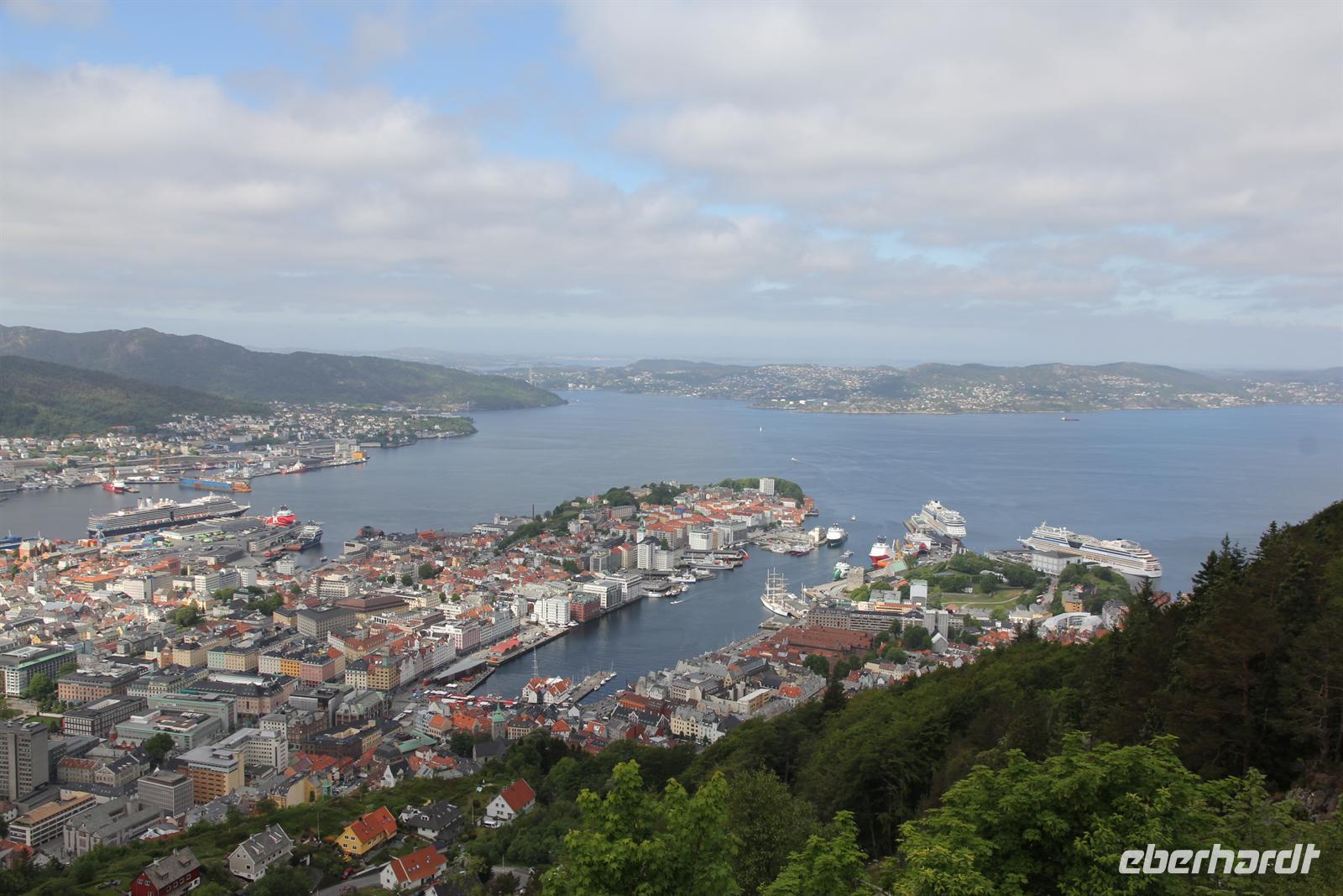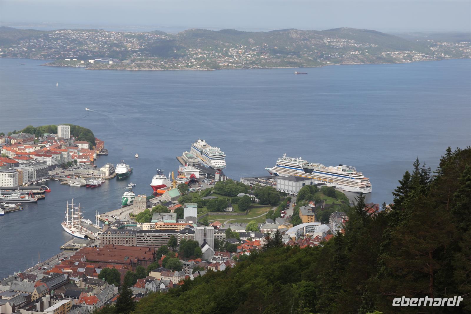 Die regenreichste Stadt Norwegens erwartete heute unseren Besuch und zeigte sich von Ihrer sonnigsten Seite. Nach einem ausgiebigen Frühstück trafen wir uns zu einem gemeinsamen Rundgang durch die Hansestadt. Nur wenige Gehminuten vom Schiff entfernt fanden wir uns bereits im berühmten Brygge-Viertel wieder. Die alten Hansehäuser mit Ihren verwinkelten Hinterhöfen haben einen unglaublichen Charme.Im Hansemuseum durften wir schließlich so ein altes Haus betreten und interessantes zum Leben der Kaufleute erfahren. Höhepunkt unseres Ausfluges war die Auffahrt mit der Floidbahn. Von oben eröffnete sich uns ein wunderschöner Ausblick über die Stadt und wir konnten sogar unser Schiff AIDAmar mit dem Schwesternschiff AIDAluna sehen.