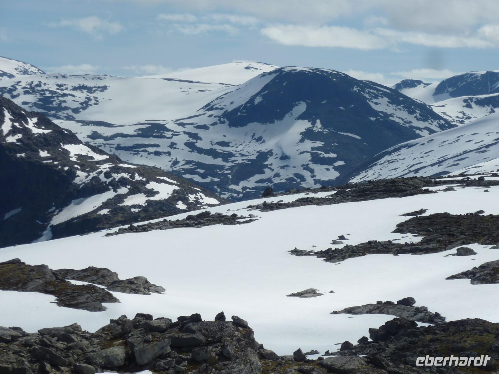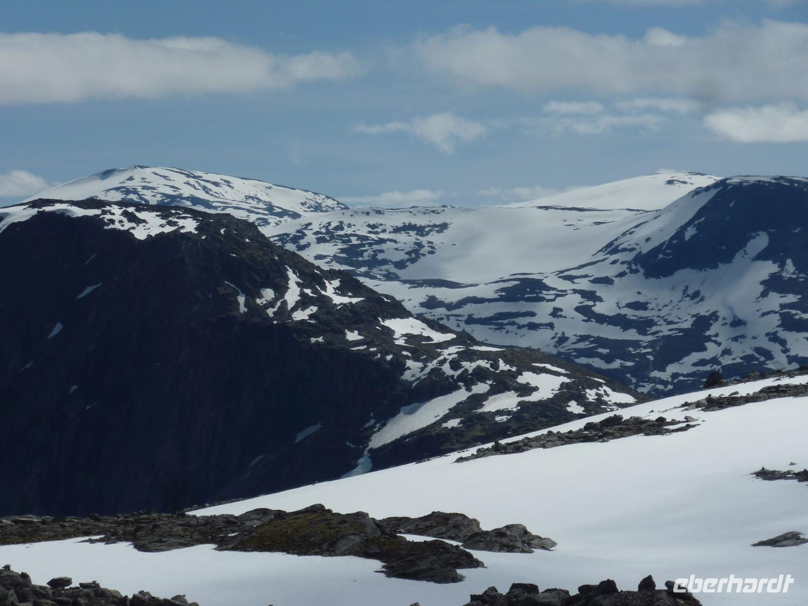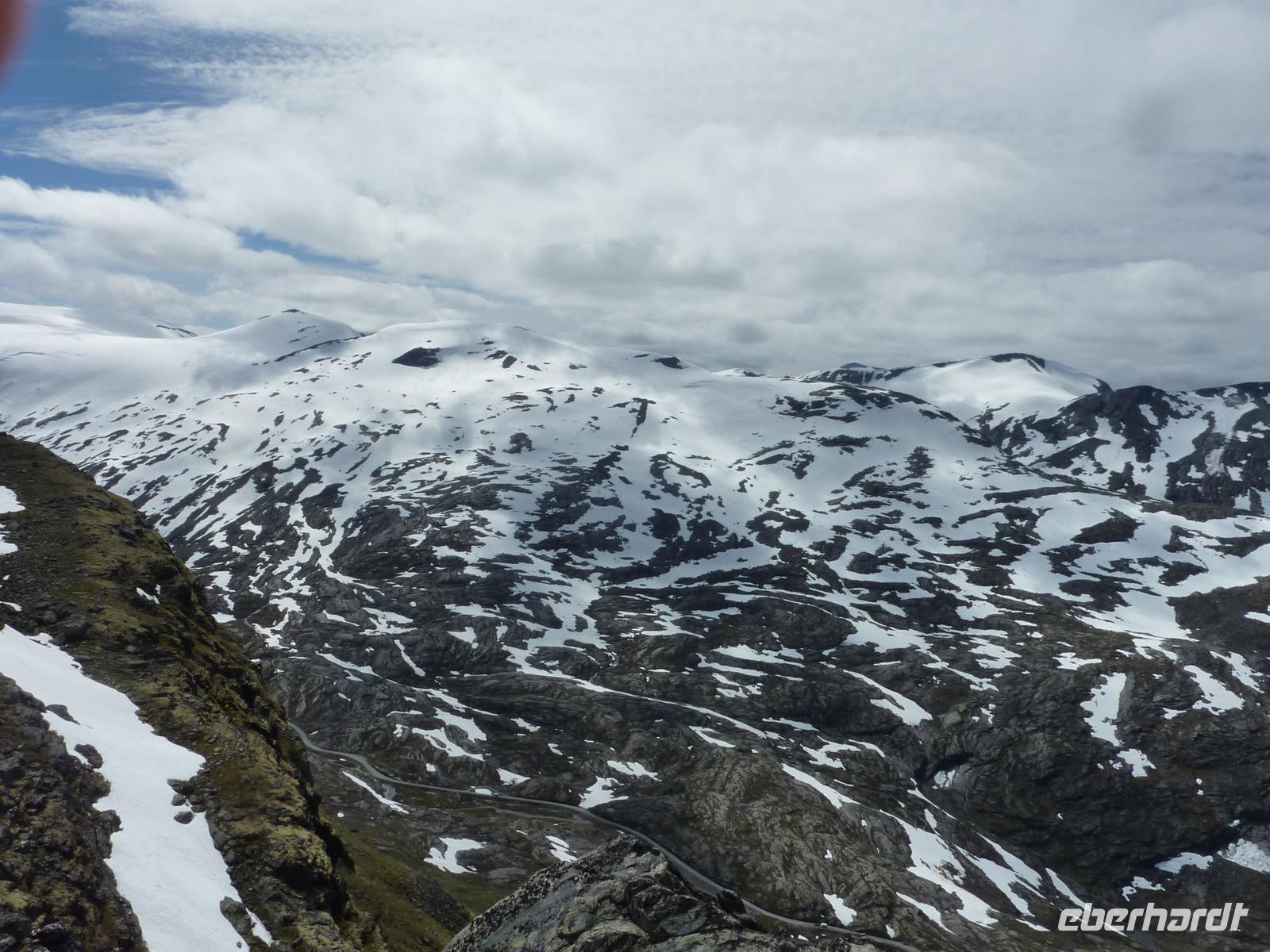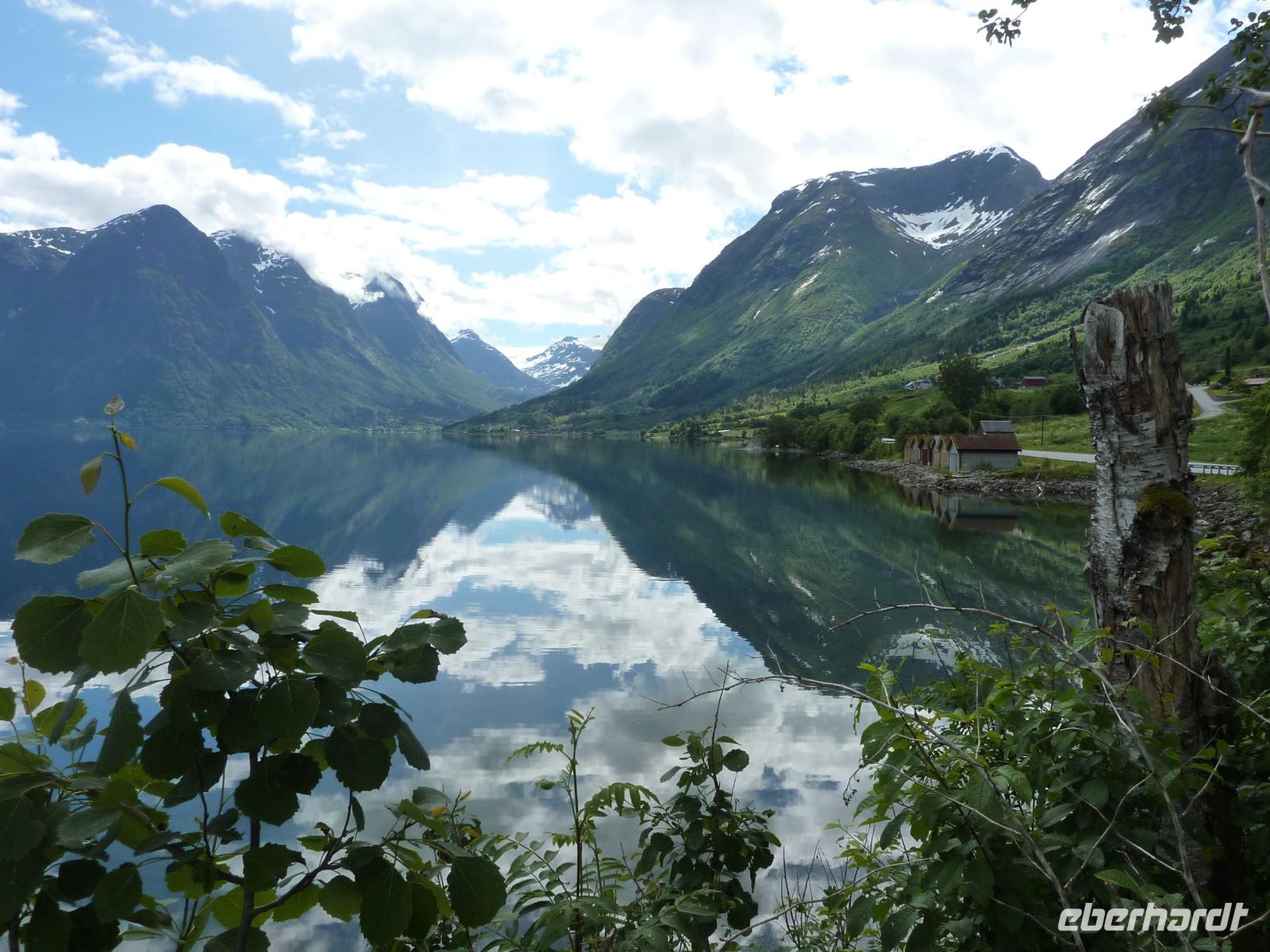 Heute hieß es etwas früher zu frühstücken, denn wir trafen uns bereit 08:15 Uhr zu unserem heutigen Ausflug von Hellesylt, dem Eingang zum Geirangerfjord, nach Geiranger. Viele waren aber schon früher an Deck und genossen die Fahrt in den Fjord hinein. Wieder ganz pünktlich trafen wir uns auf Deck 5. Die Wettervorhersagen versprachen einen schönen Tag und so machten wir uns voller Vorfreude auf den Weg. In Hellesylt empfing uns unsere heutige Reiseleiterin Mariana und unser Chauffeur bei Sonnenschein. Wir liefen vom Schiff circa 500 Meter zum Wasserfall des Flusses Langedalserva und stiegen von hier in unseren Bus. Unsere sympathische, gut aussehende Reiseleiterin für den Tag kommt aus Hamburg und arbeitet in der Saison hier in Norwegen. Während der Busfahrt erzählte Sie uns viel Interessantes über die Landschaft und die Menschen hier in Norwegen. Bei strahlendem Sonnenschein fuhren wir durch die gebirgige tolle Landschaft von Hellesylt Richtung Hornindal. Am See von Hornindal, wo es ein großes Seeungeheuer geben soll, stoppten wir für ein paar Minuten. Die schöne Landschaftsfahrt führte uns dann in das kleine, ruhige Städtchen Stryn, wo wir unsere einstündige Mittagspause verbrachten. Kleine Läden und Kaffees luden zum Bummeln oder Verweilen ein. Von Stryn fuhren wir weiter bis zum Nationalpark Jostedalsbreen, wo sich auf 487 Quadratkilometern der größte Gletscher auf europäischem Festland befindet. Unsere Reise führte uns weiter auf steilen, kurvigen Bergstraßen hinauf zum Tystigengletscher, wo sich das Sommer-Skigebiet befindet. Bei strahlender Sonne konnten wir hier noch die weißen Schneewände bestaunen. Unser nächstes Ziel war der 1494 Meter hohe Gipfel Dalsnibba. Von hier oben hatten wir einen unvergleichbaren Blick auf den tief unten liegenden Geirangerfjord, die steilen Felswände, Seen und Gletscher. Unsere AIDAluna sah von hier oben, wie eine kleine Stecknadel aus.