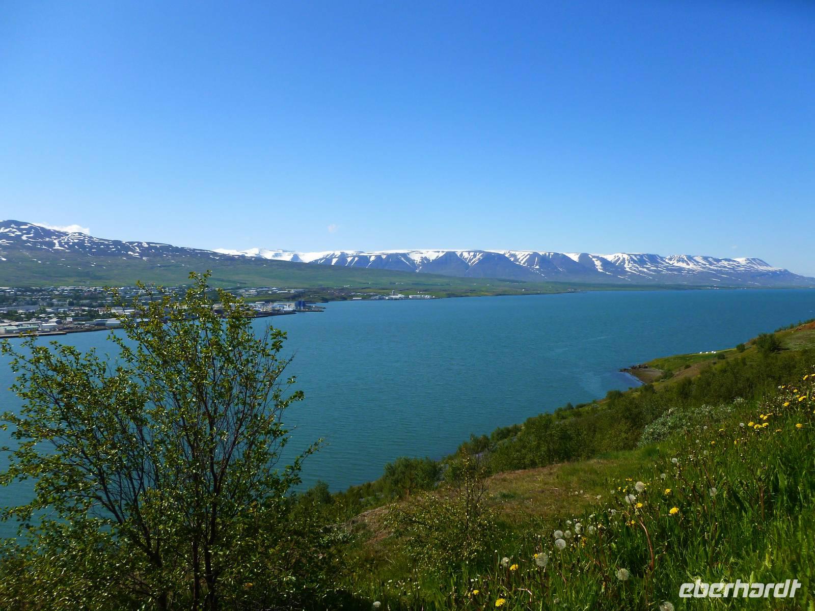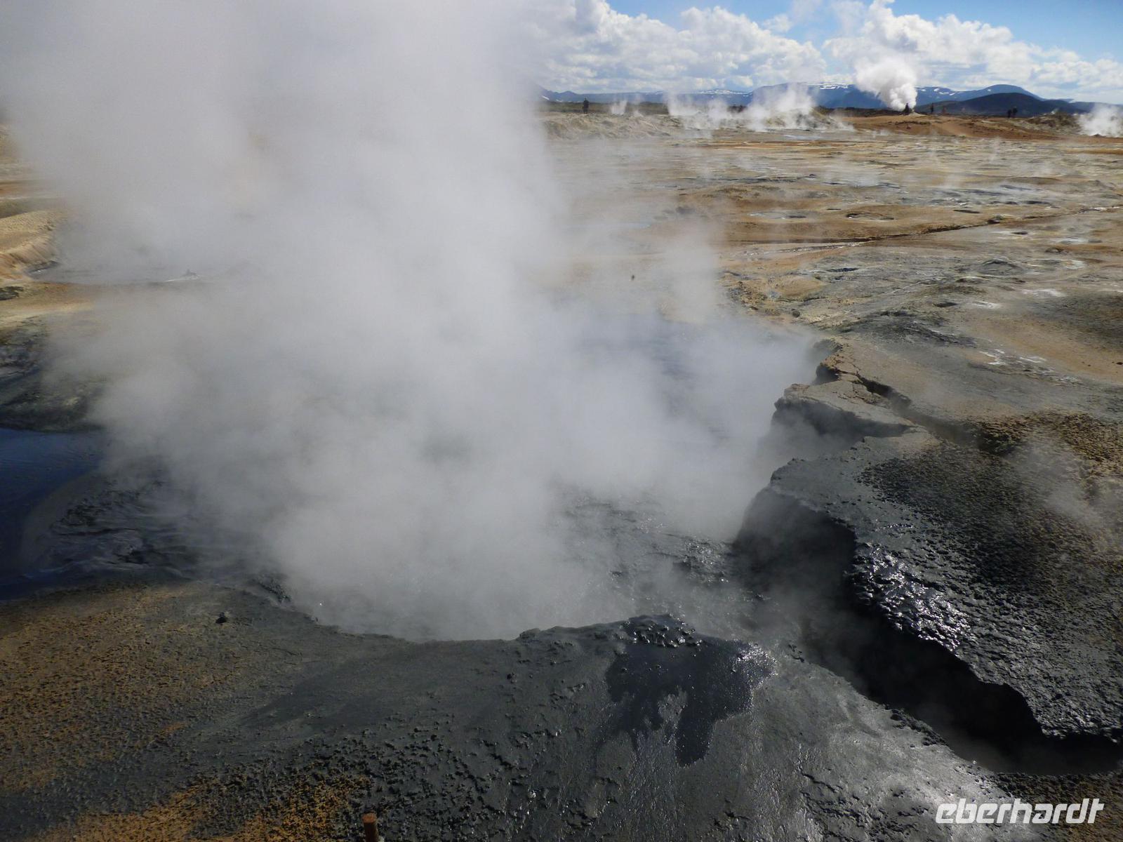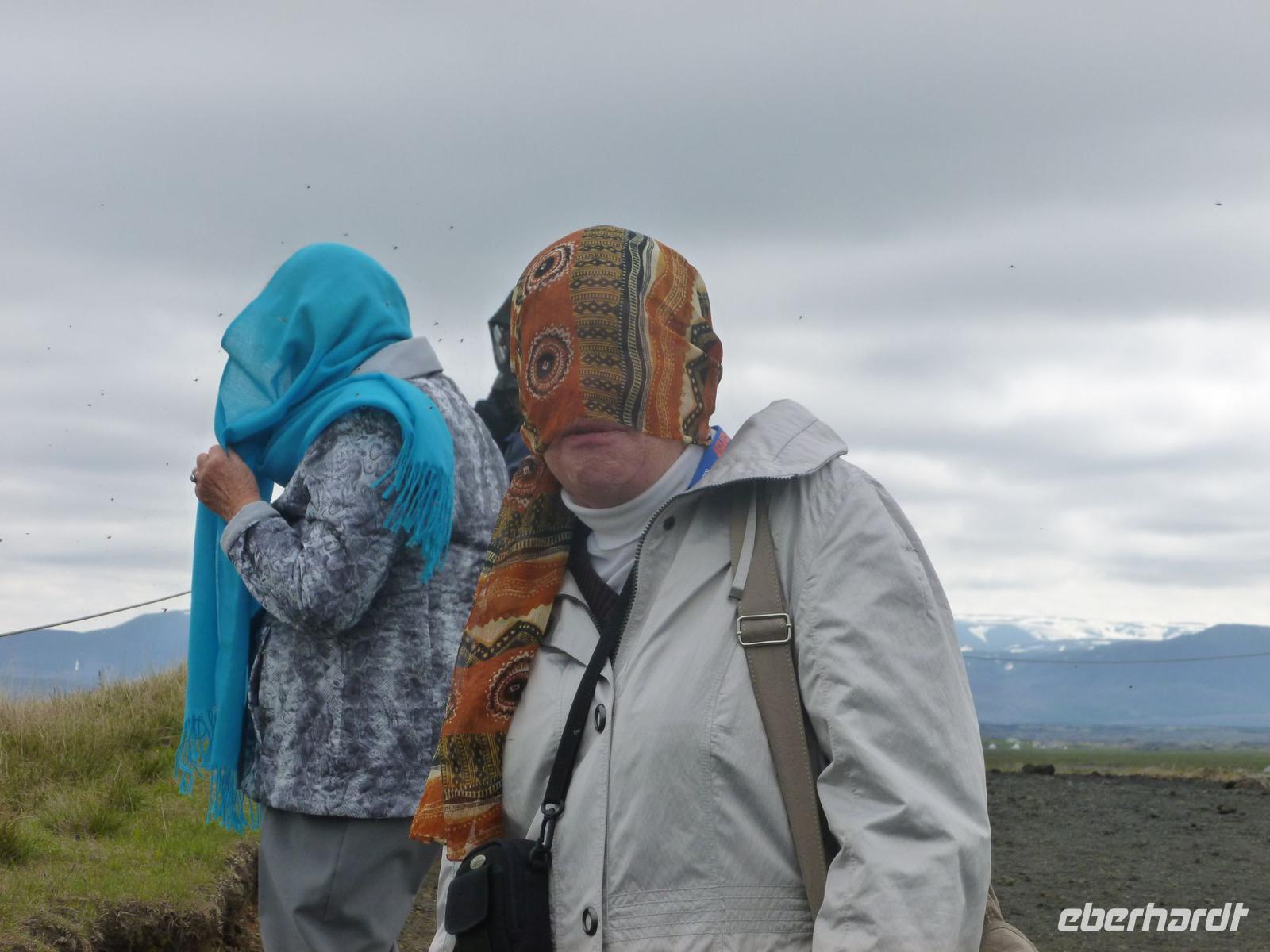 In der Nacht hatten wir die Uhren erneut um eine Stunde zurück gestellt und waren somit auf isländische Zeit eingestellt. 08:30 Uhr lief die AIDA im Hafen von Akureyri ein. Wieder super pünktlich trafen wir uns alle auf Deck 5 und gingen zusammen von Bord. An den vielen AIDA Bussen vorbei, fanden wir auch schnell unseren heutigen örtlichen Reiseleiter Walter. Walter ist gebürtiger Schweizer und lebt seit über 50 Jahren hier auf Island. Sein großes Wissen über dieses faszinierende Land und die Menschen erzählte er uns auf der Busfahrt und auf den Rundgängen. Mit dem Bus fuhren wir als erstes zum Godafoss, dem Götterwasserfall, der seinen Namen aus der Zeit der Christianisierung bekam. Nach einem kurzen Spaziergang am Flusslauf stiegen wir wieder in den Bus und fuhren nach Skútusdadir am Mývatn, dem Mückensee. Der Mückensee ist der viertgrößte See Islands und macht seinen Namen alle Ehre. Schon als wir aus dem Bus stiegen, fielen die Mücken über uns her. Auch wenn Sie nicht stechen, sind sie sehr lästig, denn sie setzen sich am liebsten ins Gesicht und die Ohren. Eingemummelt und verschleiert mit Tüchern spazierten wir circa 20 Minuten am Mückensee und sahen die faszinierenden Pseudokrater. Pseudokrater sind keine Vulkane. Sie entstanden, als heiße Lava über einen feuchten Untergrund, wie flache Seen geflossen ist. Durch die Hitze verdampfte das Wasser explosionsartig und sprengte dabei die Krater in die Landschaft. Weiter ging unsere Fahrt nach Dimmuborgir in den Lava-Irrgarten. Hier spazierten wir bei strahlendem Sonnenschein 30 Minuten durch die bizarren Lavaformationen. Danach stärkten wir uns zu Mittag mit drei verschiedenen Suppen, frischem Brot oder Brötchen. 13 Uhr fuhren wir mit dem Bus weiter nach Namaskard. Dabei fuhren wir über die Grenze zwischen der eurasischen und der amerikanischen Kontinentalplatte. Kurz nach der Passhöhe liegt am Fuße des Berges Námafjall das beeindruckende Solfatarenfeld Hverarönd. Überall blubbern und zischen die heißen Schlammtöpfe und ein Geruch von faulen Eiern liegt in der Luft. Wir spazierten 30 Minuten durch dieses Gebiet und bestaunten die gewaltige Kraft da unter der Erde. Von hier fuhren wir über die Ringstraße mit zwei weiteren Fotostopps zurück nach Akureyri. Kurz vor der Stadt genossen wir noch einen schönen Blick auf Akureyri, den Hafen und die mächtige AIDA, neben der die Häuser winzig wirkten. Bei wohligen 17 Grad, Sonnenschein, blauen Himmel und klarer Luft ließen wir den schönen Tag langsam ausklingen.