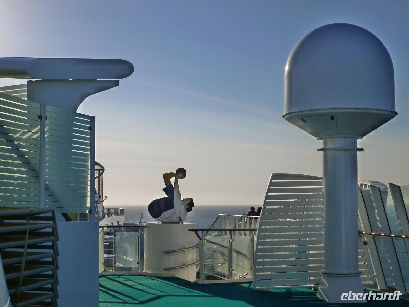Am letzten Abend fand das berühmte „Farewell-Dinner", dass Abschiedsessen statt. Die Küchencrew hatte die Speisen besonders anschaulich gestaltet. So waren richtige Kunstwerke, wie ein Vogelkäfig aus Zitronen oder ein Affe aus Melone dabei. Später fand auf dem Pooldeck die Abschiedsfeier mit Sekt, Show und Tanz statt.