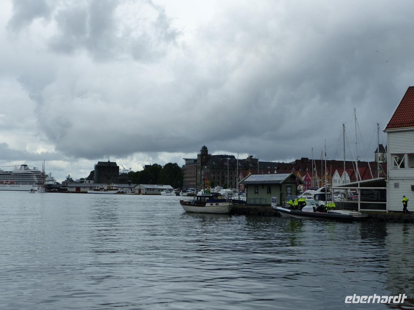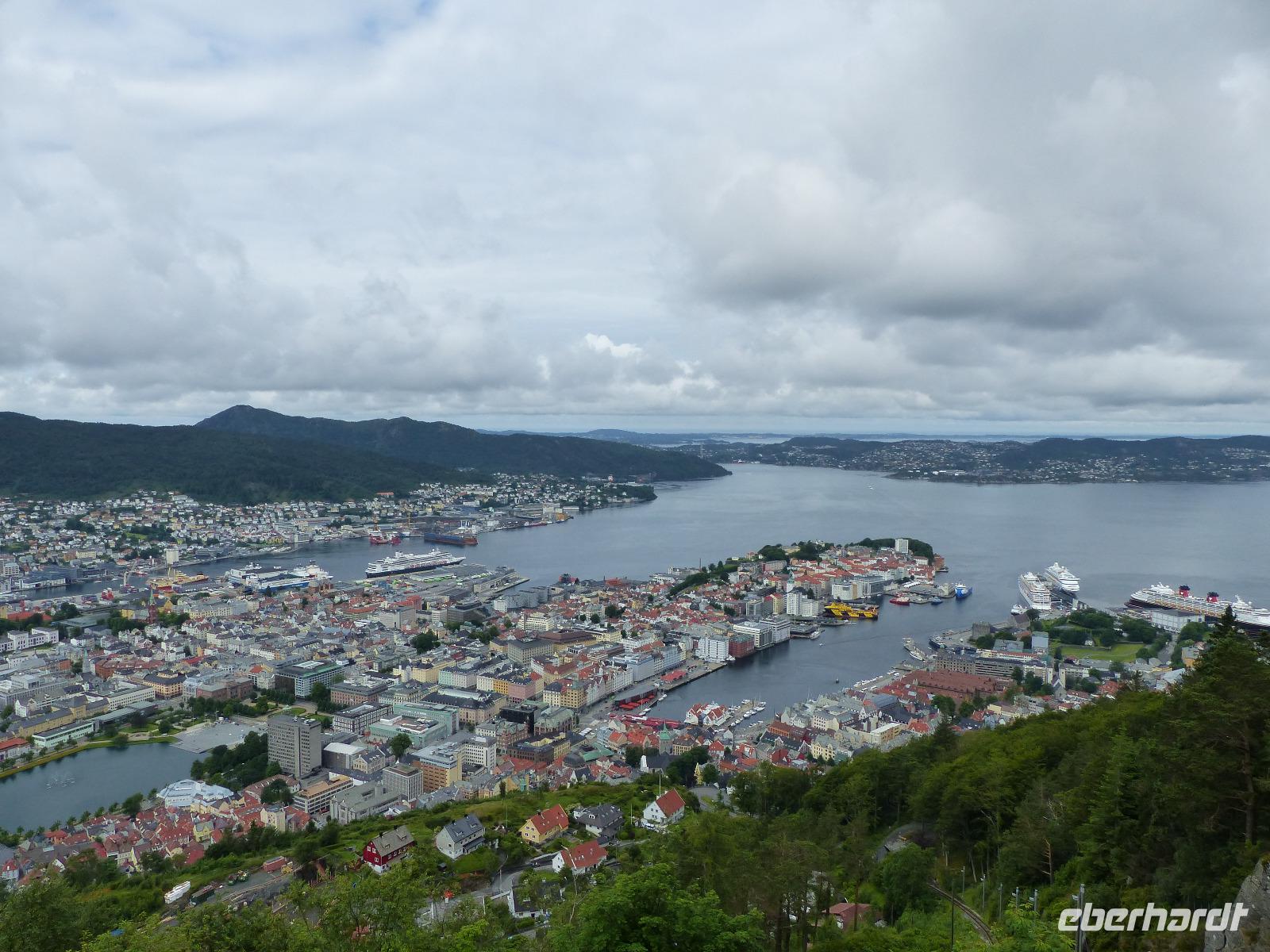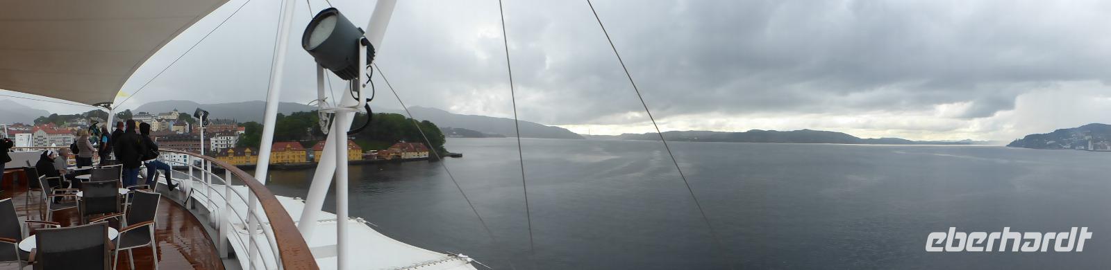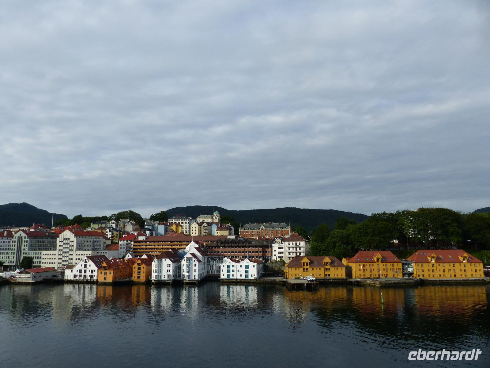 Nach einem ersten entspannten Tag an Bord, steht heute unser erster Landgang auf dem Programm. Am frühen Morgen haben wir Bergen, wohl eine der schönsten Metropolen des Landes, erreicht. Schon nach dem Frühstück gehen wir von Bord und treffen auf unsere örtliche Reiseleiterin Angela, welche uns für einen Halbtagesausflug durch diese wunderschöne Stadt nimmt. Um dem großen Besucheransturm etwas auszuweichen und vor allem das trockene Wetter auszunutzen, entscheiden wir uns für einen direkten Besuch des Floyen, dem Hausberg der Stadt. Eine Kabelbahn bringt uns hinauf und wieder hinunter, der atemberaubende Blick vom Aussichtpunkt lässt uns alle staunen. Im Anschluss geht es weiter zu Fuß durch die Stadt, sodass wir einen schönen Überblick erhalten. Entlang kleiner Gassen und dem Musikpavillion kommen wir direkt in den verkehrsberuhigten Bereich der Stadt und natürlich auch zum Fischmarkt. Zum Glück gibt es hier die neu errichtete Fischhalle, denn mit unserer Ankunft am Hafen setzt ein erster Schauer ein- es heißt unterstellen und einen trockenen Platz sichern. Nachdem der Regen etwas nachlässt setzen wir unseren Spaziergang fort und erreichen das Hanseatische Museum, wo wir eine gemeinsame Führung erleben und uns somit ein gutes Bild vom ehemaligen Leben der Hansekaufleute und Ihrer Bediensteten machen können. Bevor es dann zurück an Bord geht, steht natürlich noch der Besuch des Hanseviertels Tyske Brygge (deutsche Brücke) welches als bedeutendste historische Sehenswürdigkeit der Stadt gilt und zum UNESCO Welterbe erklärt wurde, auf dem Programm. Hier befand sich einst das Wohnviertel der deutschen Kaufleute, wo hanseatisches und nicht norwegisches Recht herrschte. Da es sich nun langsam einregnet, gehen wir gemeinsam zurück an Bord unserer AIDAvita. Wir verabschieden uns von Angela und lassen uns ein spätes Mittagessen schmecken. Am Abend ertönt erneut die Auslaufmusik, und wir setzen unsere Reise gen Norden gemeinsam fort.