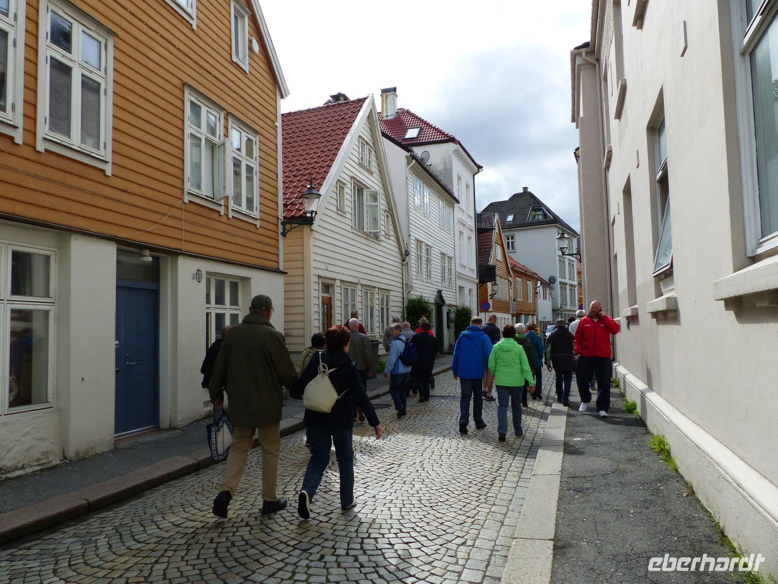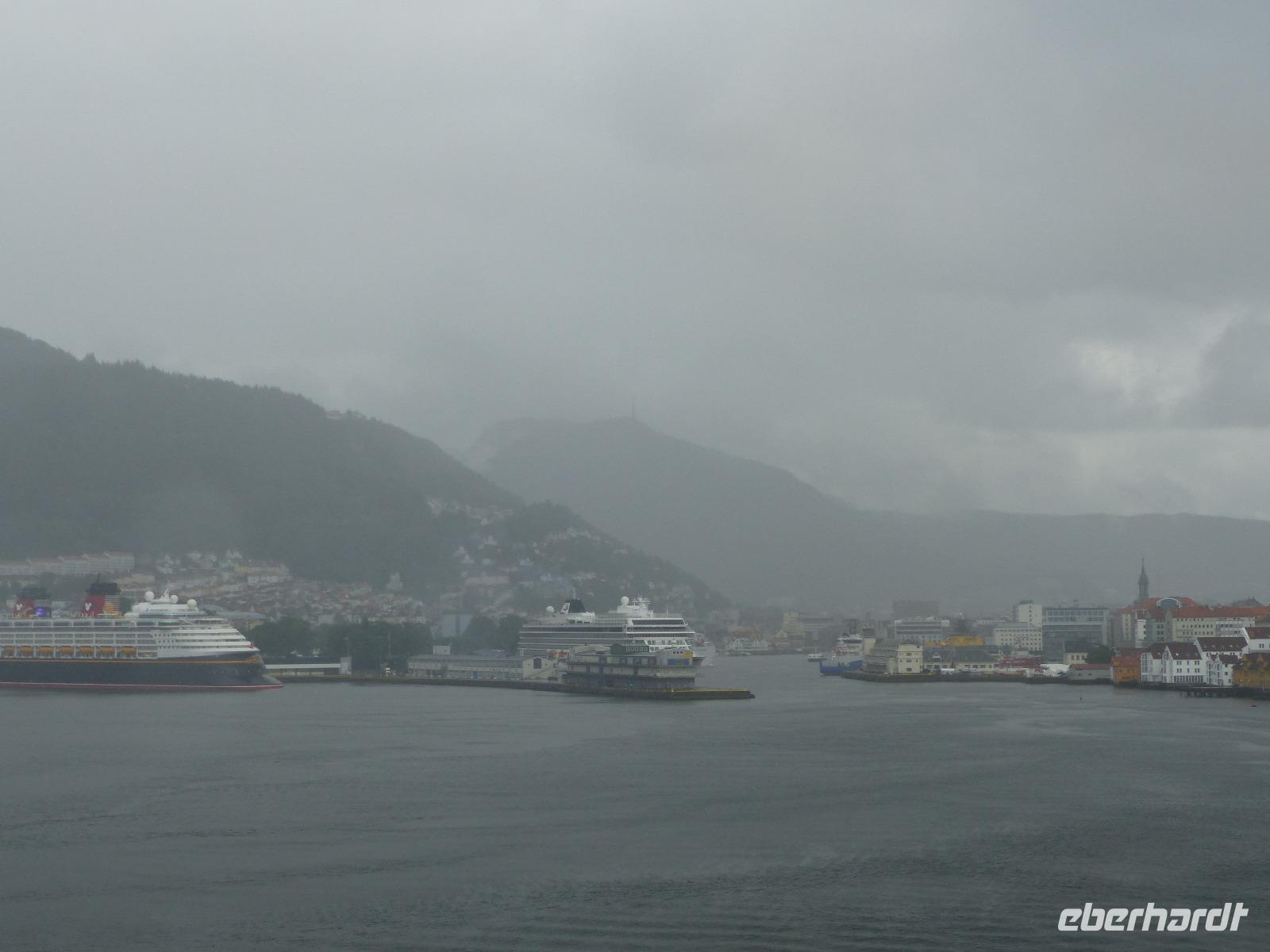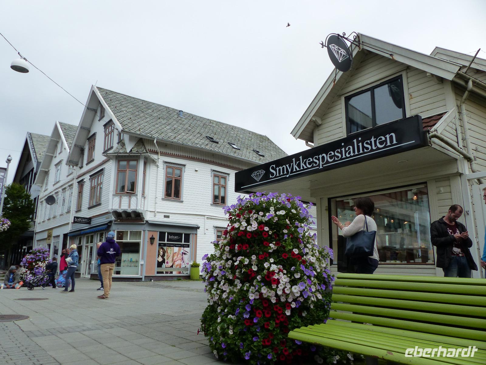 Nach einem ersten entspannten Tag an Bord, steht heute unser erster Landgang auf dem Programm. Am frühen Morgen haben wir Bergen, wohl eine der schönsten Metropolen des Landes, erreicht. Schon nach dem Frühstück gehen wir von Bord und treffen auf unsere örtliche Reiseleiterin Angela, welche uns für einen Halbtagesausflug durch diese wunderschöne Stadt nimmt. Um dem großen Besucheransturm etwas auszuweichen und vor allem das trockene Wetter auszunutzen, entscheiden wir uns für einen direkten Besuch des Floyen, dem Hausberg der Stadt. Eine Kabelbahn bringt uns hinauf und wieder hinunter, der atemberaubende Blick vom Aussichtpunkt lässt uns alle staunen. Im Anschluss geht es weiter zu Fuß durch die Stadt, sodass wir einen schönen Überblick erhalten. Entlang kleiner Gassen und dem Musikpavillion kommen wir direkt in den verkehrsberuhigten Bereich der Stadt und natürlich auch zum Fischmarkt. Zum Glück gibt es hier die neu errichtete Fischhalle, denn mit unserer Ankunft am Hafen setzt ein erster Schauer ein- es heißt unterstellen und einen trockenen Platz sichern. Nachdem der Regen etwas nachlässt setzen wir unseren Spaziergang fort und erreichen das Hanseatische Museum, wo wir eine gemeinsame Führung erleben und uns somit ein gutes Bild vom ehemaligen Leben der Hansekaufleute und Ihrer Bediensteten machen können. Bevor es dann zurück an Bord geht, steht natürlich noch der Besuch des Hanseviertels Tyske Brygge (deutsche Brücke) welches als bedeutendste historische Sehenswürdigkeit der Stadt gilt und zum UNESCO Welterbe erklärt wurde, auf dem Programm. Hier befand sich einst das Wohnviertel der deutschen Kaufleute, wo hanseatisches und nicht norwegisches Recht herrschte. Da es sich nun langsam einregnet, gehen wir gemeinsam zurück an Bord unserer AIDAvita. Wir verabschieden uns von Angela und lassen uns ein spätes Mittagessen schmecken. Am Abend ertönt erneut die Auslaufmusik, und wir setzen unsere Reise gen Norden gemeinsam fort.