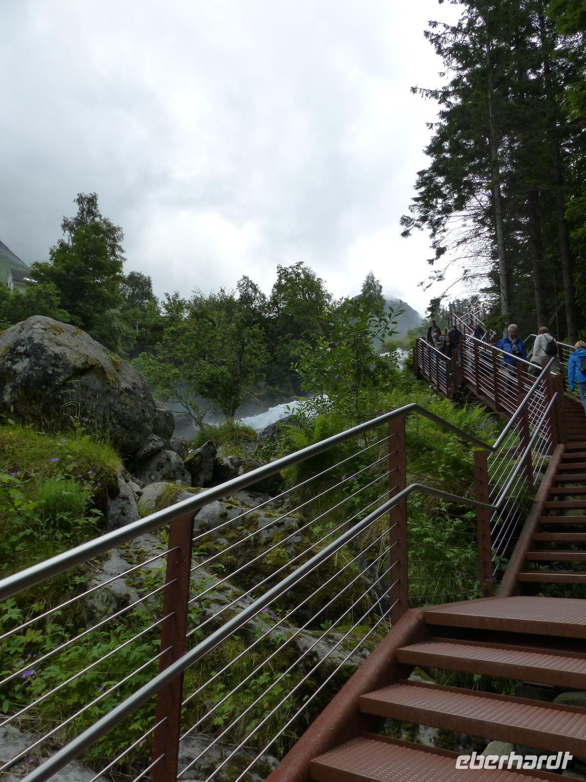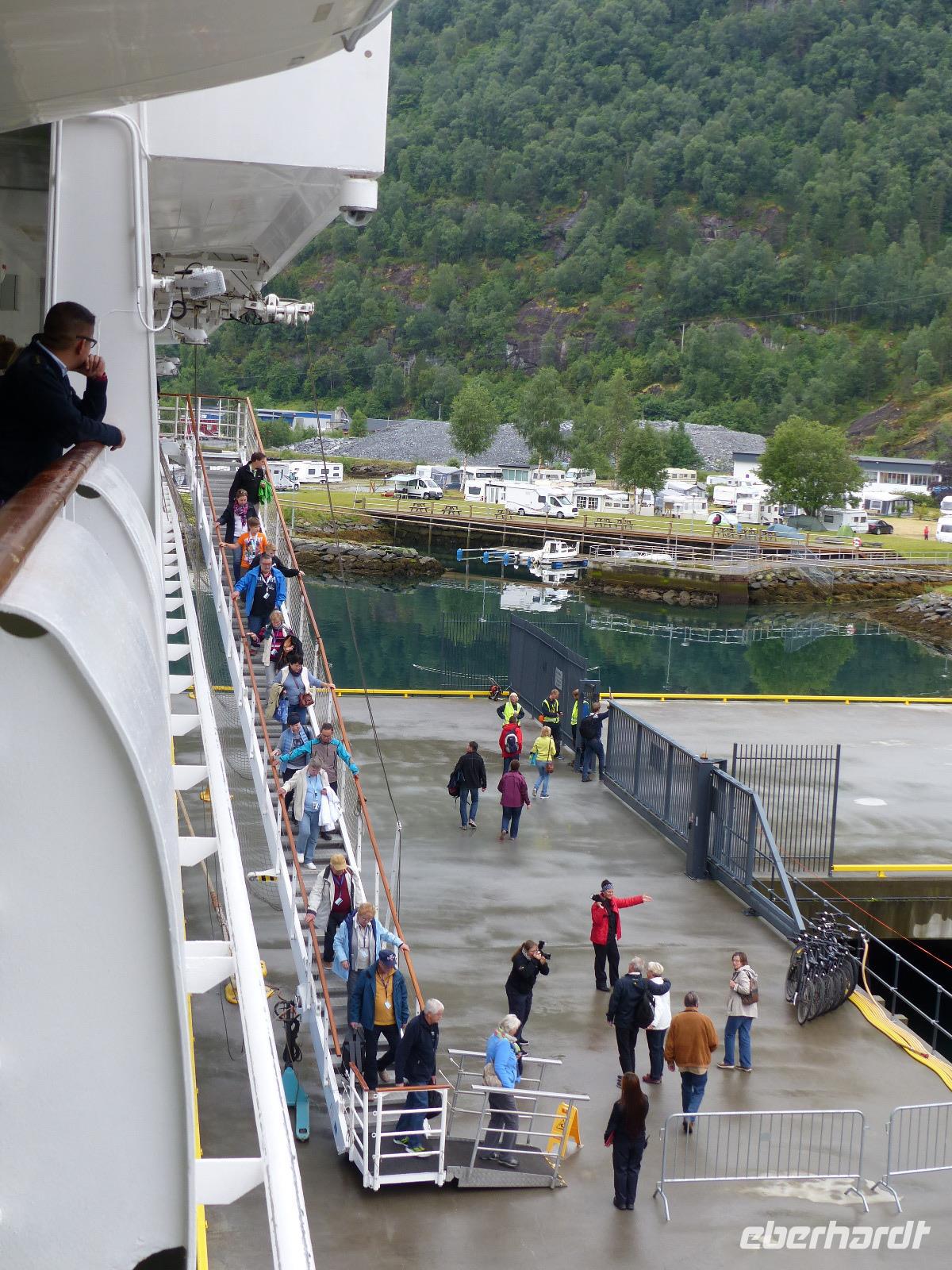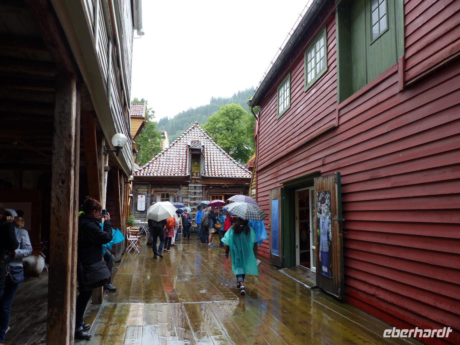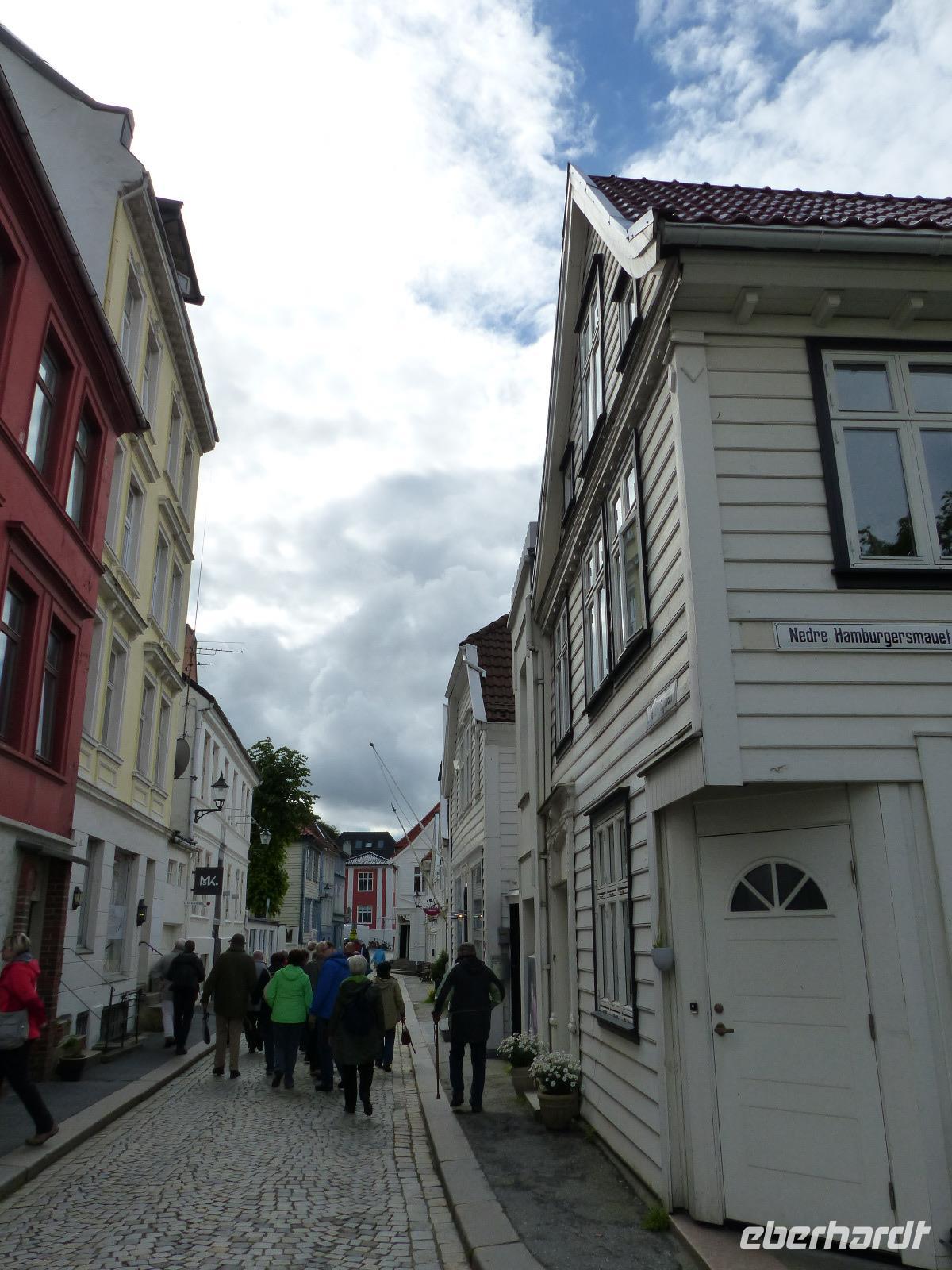 Nach einem ersten entspannten Tag an Bord, steht heute unser erster Landgang auf dem Programm. Am frühen Morgen haben wir Bergen, wohl eine der schönsten Metropolen des Landes, erreicht. Schon nach dem Frühstück gehen wir von Bord und treffen auf unsere örtliche Reiseleiterin Angela, welche uns für einen Halbtagesausflug durch diese wunderschöne Stadt nimmt. Um dem großen Besucheransturm etwas auszuweichen und vor allem das trockene Wetter auszunutzen, entscheiden wir uns für einen direkten Besuch des Floyen, dem Hausberg der Stadt. Eine Kabelbahn bringt uns hinauf und wieder hinunter, der atemberaubende Blick vom Aussichtpunkt lässt uns alle staunen. Im Anschluss geht es weiter zu Fuß durch die Stadt, sodass wir einen schönen Überblick erhalten. Entlang kleiner Gassen und dem Musikpavillion kommen wir direkt in den verkehrsberuhigten Bereich der Stadt und natürlich auch zum Fischmarkt. Zum Glück gibt es hier die neu errichtete Fischhalle, denn mit unserer Ankunft am Hafen setzt ein erster Schauer ein- es heißt unterstellen und einen trockenen Platz sichern. Nachdem der Regen etwas nachlässt setzen wir unseren Spaziergang fort und erreichen das Hanseatische Museum, wo wir eine gemeinsame Führung erleben und uns somit ein gutes Bild vom ehemaligen Leben der Hansekaufleute und Ihrer Bediensteten machen können. Bevor es dann zurück an Bord geht, steht natürlich noch der Besuch des Hanseviertels Tyske Brygge (deutsche Brücke) welches als bedeutendste historische Sehenswürdigkeit der Stadt gilt und zum UNESCO Welterbe erklärt wurde, auf dem Programm. Hier befand sich einst das Wohnviertel der deutschen Kaufleute, wo hanseatisches und nicht norwegisches Recht herrschte. Da es sich nun langsam einregnet, gehen wir gemeinsam zurück an Bord unserer AIDAvita. Wir verabschieden uns von Angela und lassen uns ein spätes Mittagessen schmecken. Am Abend ertönt erneut die Auslaufmusik, und wir setzen unsere Reise gen Norden gemeinsam fort.