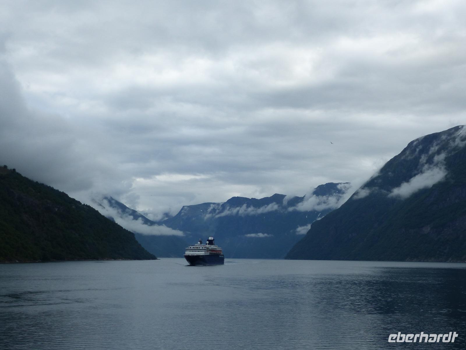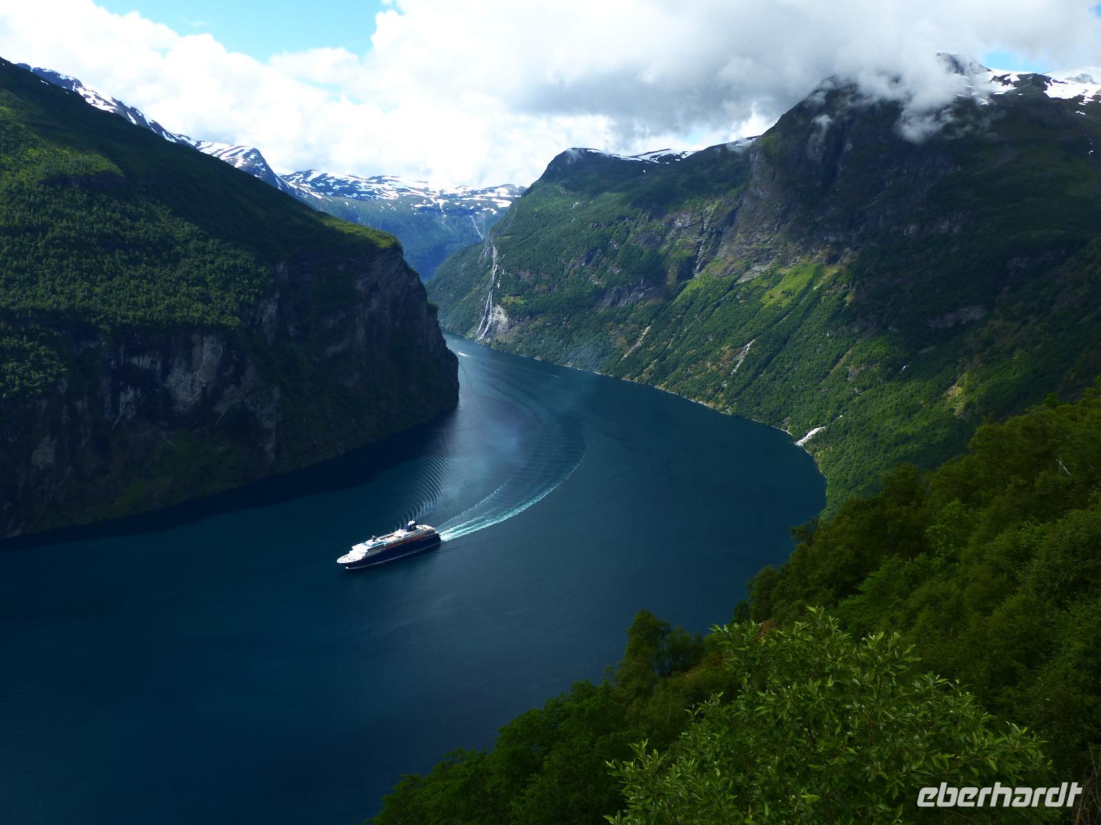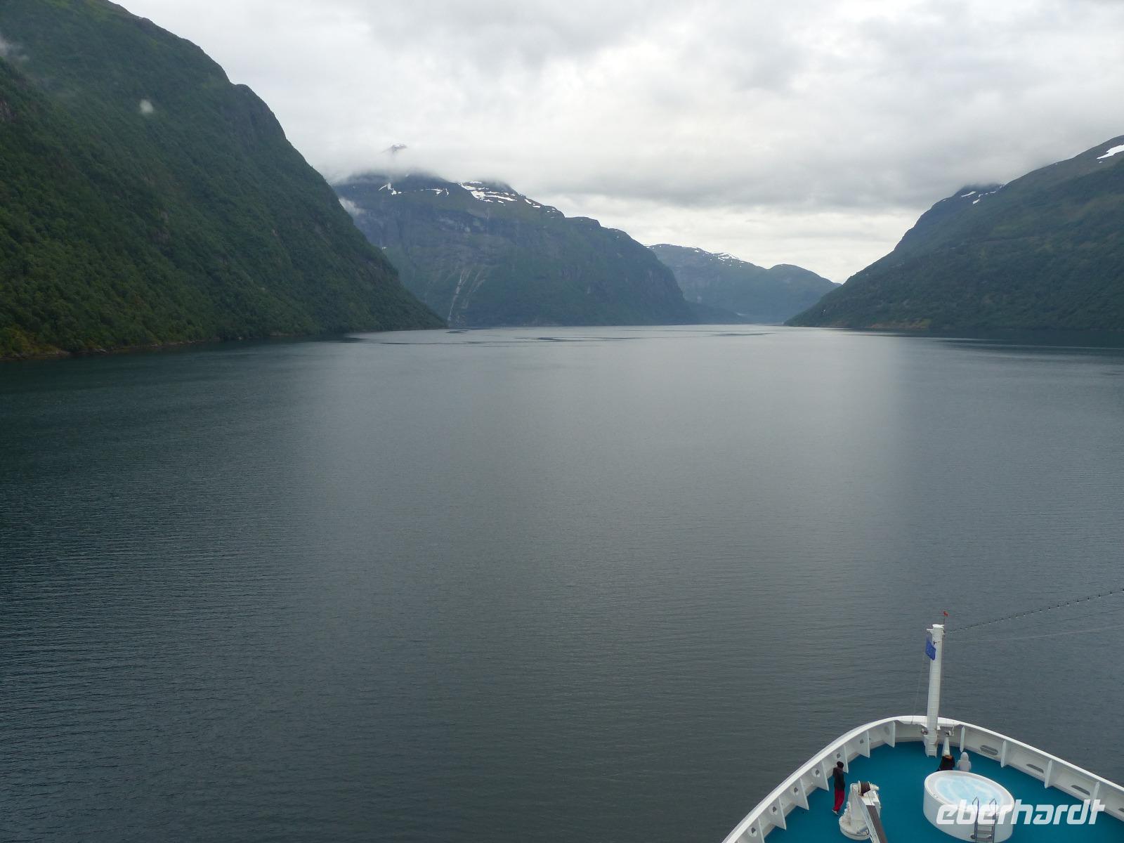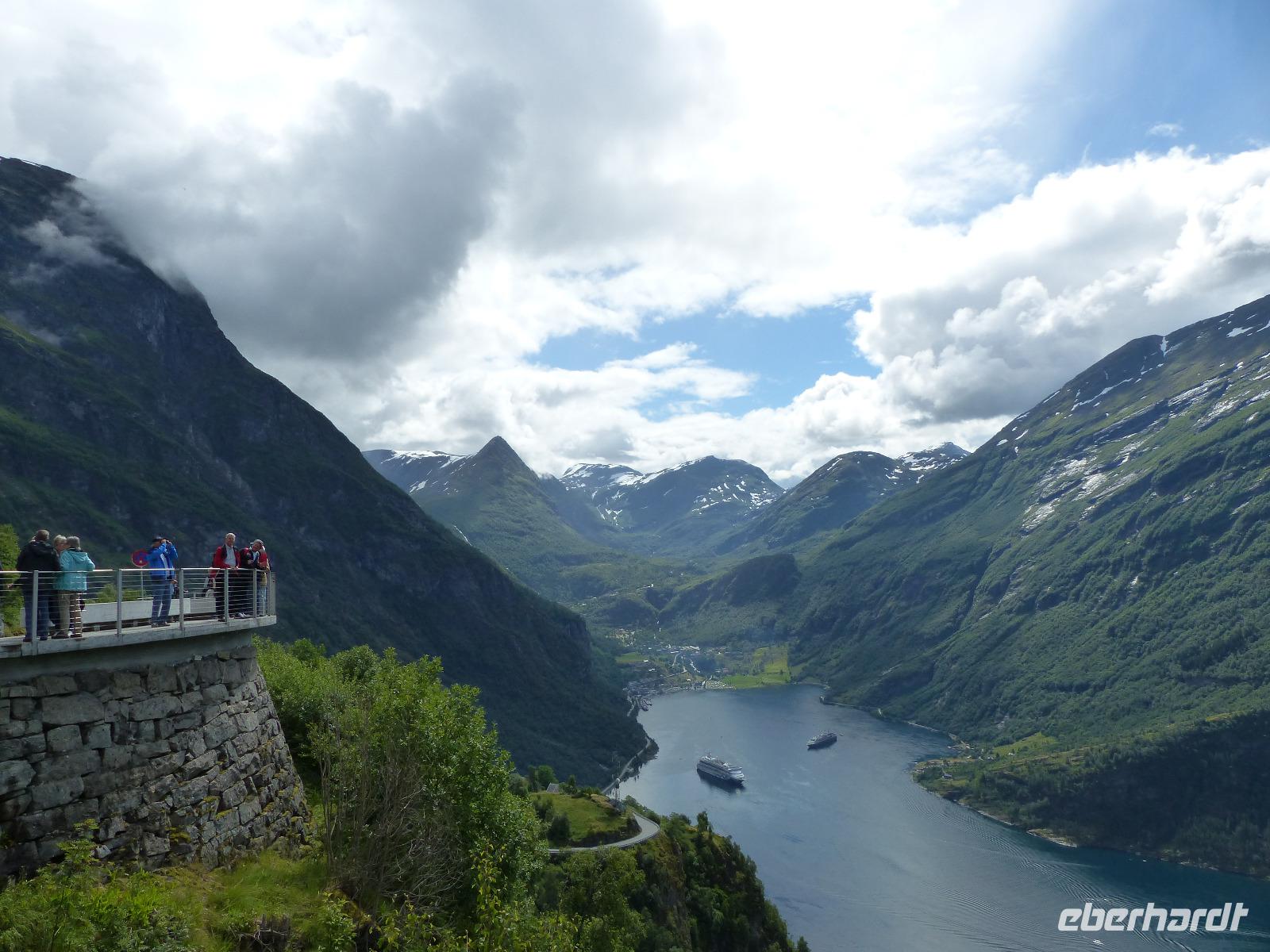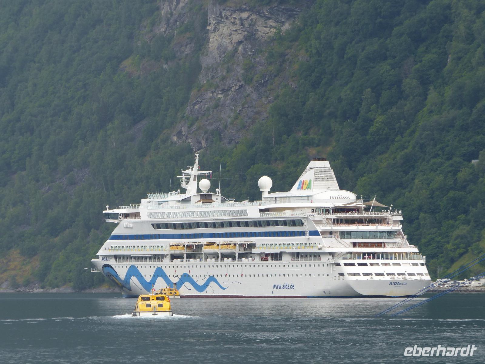 Früh am Morgen begeben wir uns in den wunderschönen Storfjord, welcher uns letztendlich zuerst in den Sunnylvsfjord und weiter in den Geirangerfjord führt, wo unsere AIDAvita direkt vor dem kleinen Örtchen Geiranger ankern wird. Einige Gäste sind schon früh auf den Beinen, einmal um diese tolle Fahrt entlang der schroffen Felsen zu bewundern oder aber auch um rechtzeitig zum Ganztagesausflug, welcher in Hellesylt beginnt, bereit zu sein. Nach einem kurzen Stopp genießen alle weiteren Gäste die Fahrt in den Geiranger Fjord, welcher seit 2005 auch als Weltnaturerbe die World Heritage List der UNESCO schmückt. Das Schiff scheint sich fast durch die steil abfallenden Felswände, welche hunderte von Metern aus dem Wasser ragen, hindurchzuzwängen. Kurz vor der gleichnamigen Stadt Geiranger passieren wir den Wasserfall Syv Söstre, auch Wasserfall der sieben Schwestern genannt, welcher einige Gäste an Deck lockt um eines der vielen unvergesslichen Fotos zu knipsen. Dann heißt es für fast alle Gäste: Bitte einsteigen- denn es geht mit Tenderbooten an Land- die AIDAvita liegt auf Reede. In Geiranger gibt es nun die Möglichkeit einen Halbtagesausflug entlang der Panorama-Passstraße Adlerkehren und zum Dalsnibba, einem Gipfel in 1500m Höhe, welcher einen einmaligen Blick auf den Fjord ermöglicht und somit Europas höchste Fjord-Aussicht von einer Straße aus darstellt, zu unternehmen. Selbstverständlich kann man aber auch an einer der aktiveren Ausflüge, wie einer Kanufahrt, teilnehmen oder einen individuellen Bummel im 260 Seelendorf Geiranger unternehmen. Ein Spaziergang zum Wasserfall und dem hiesigen Fjordmuseum sind zum Beispiel ebenso lohnenswert. Egal wie man sich entscheidet- ein wunderschöner Tag bei diesem besonders reizvollen Panorama ist garantiert!