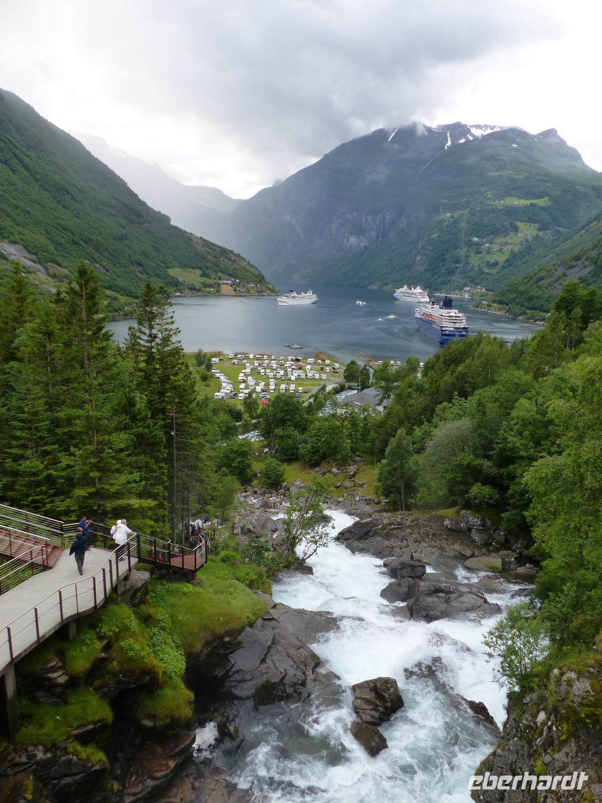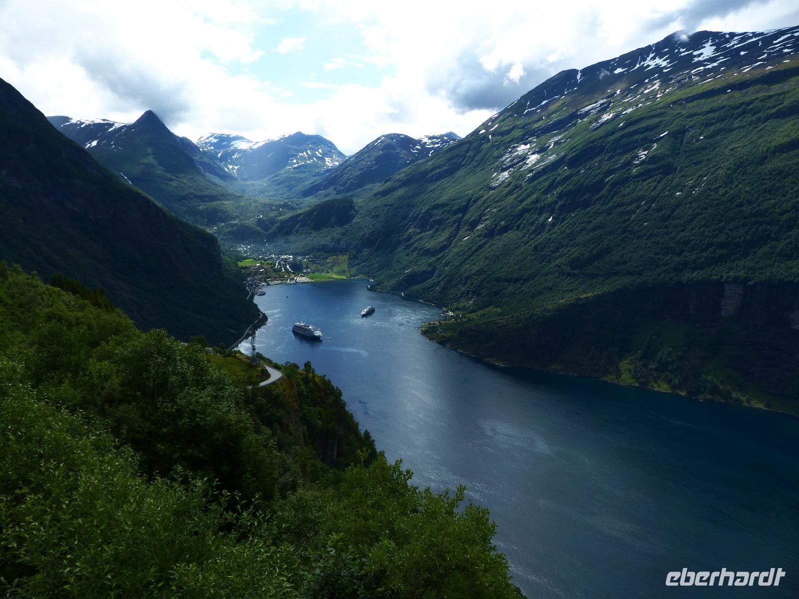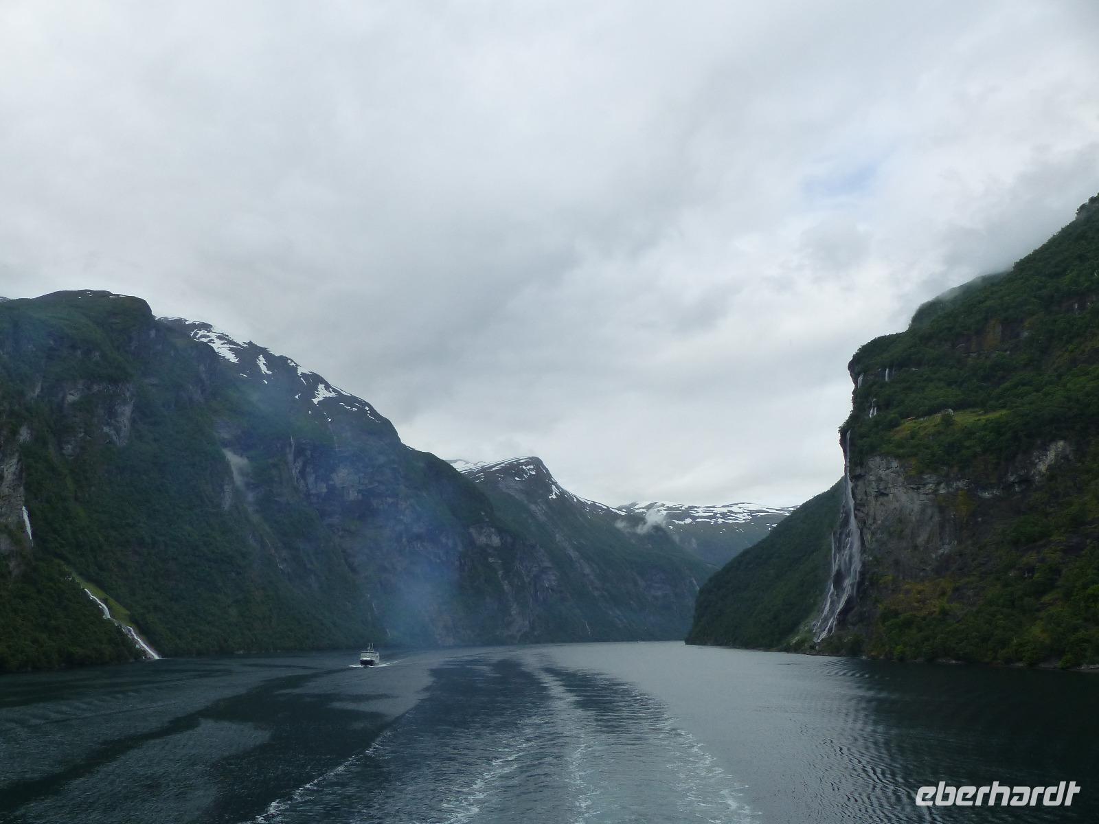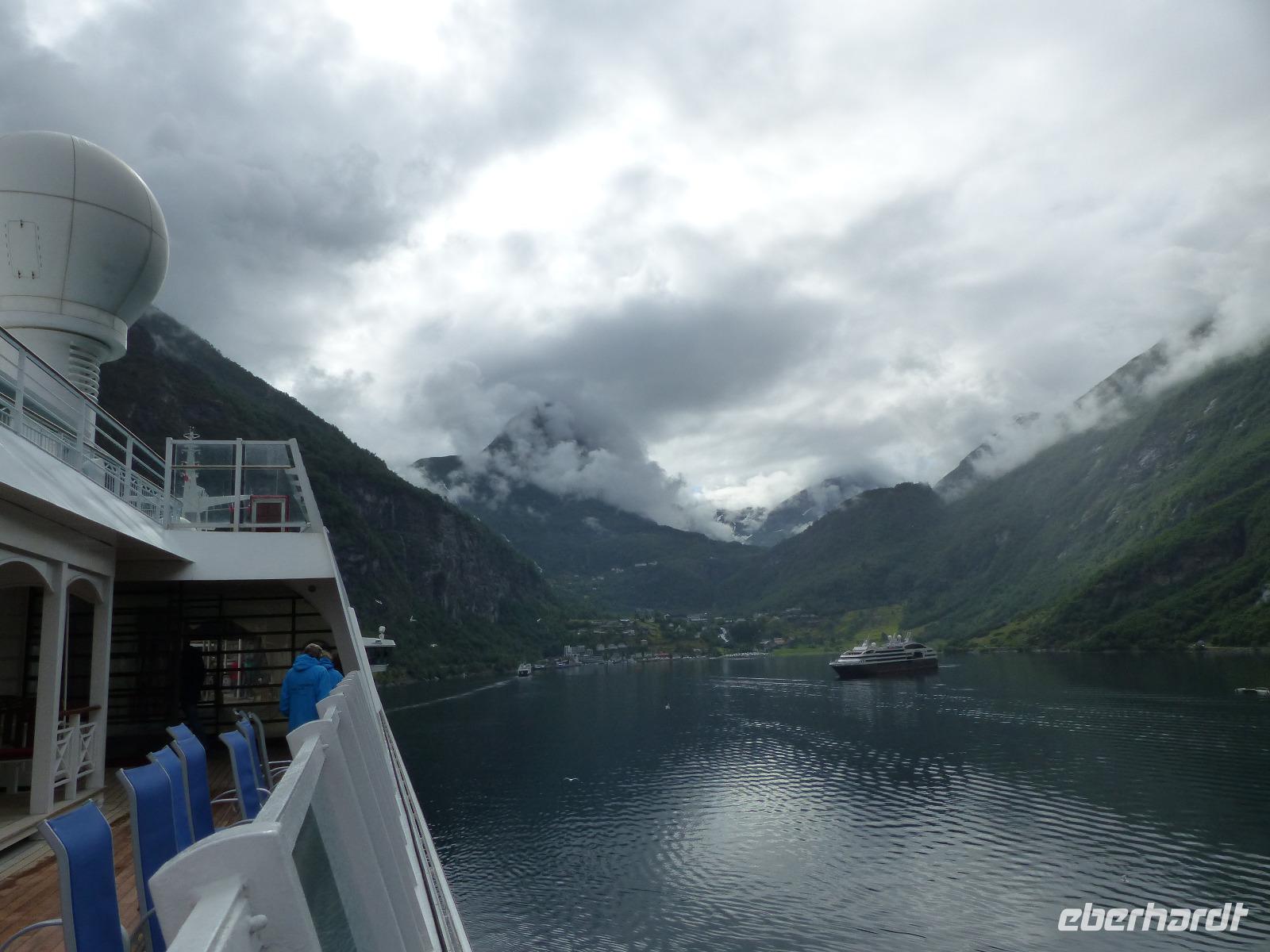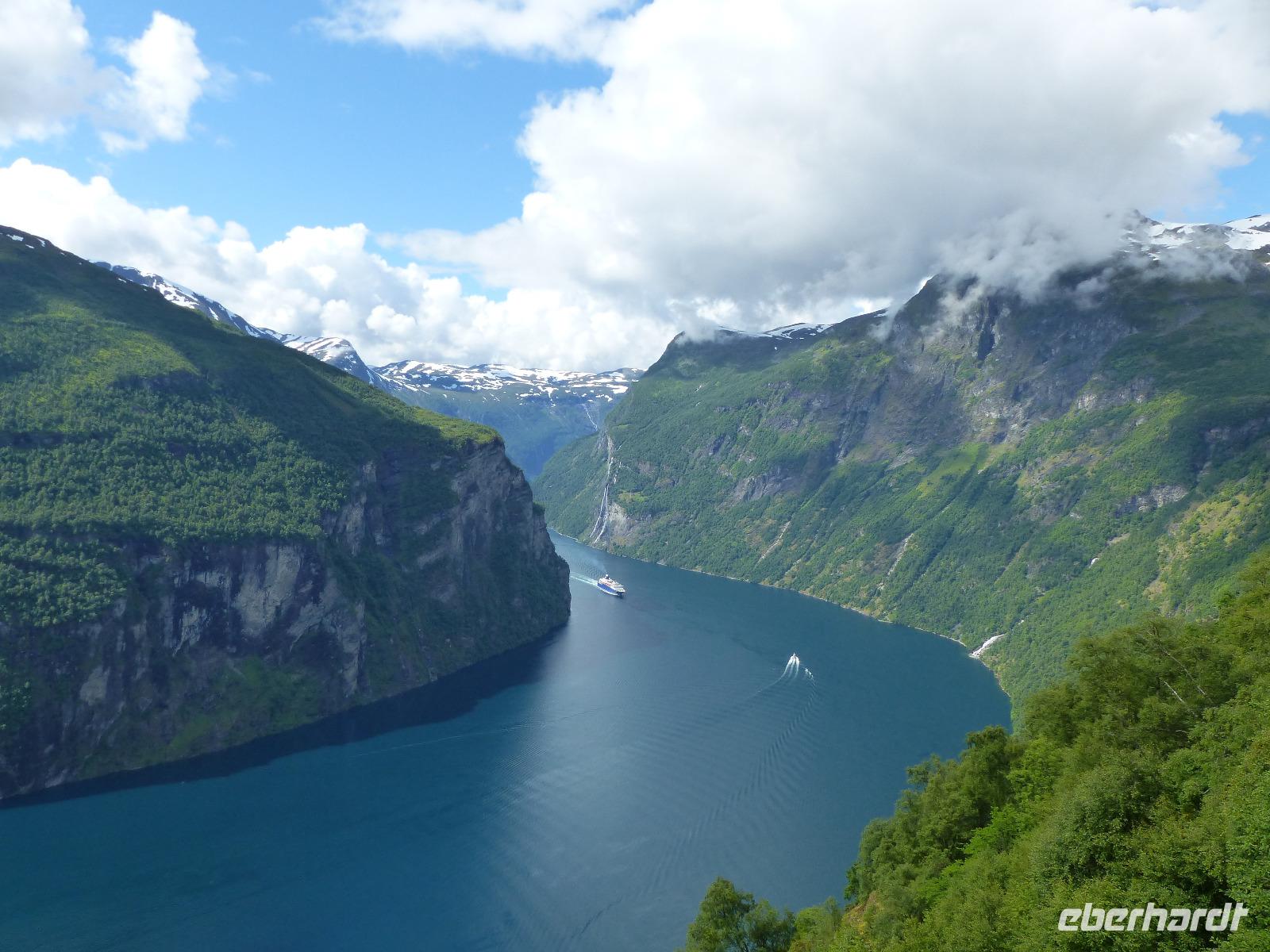 Früh am Morgen begeben wir uns in den wunderschönen Storfjord, welcher uns letztendlich zuerst in den Sunnylvsfjord und weiter in den Geirangerfjord führt, wo unsere AIDAvita direkt vor dem kleinen Örtchen Geiranger ankern wird. Einige Gäste sind schon früh auf den Beinen, einmal um diese tolle Fahrt entlang der schroffen Felsen zu bewundern oder aber auch um rechtzeitig zum Ganztagesausflug, welcher in Hellesylt beginnt, bereit zu sein. Nach einem kurzen Stopp genießen alle weiteren Gäste die Fahrt in den Geiranger Fjord, welcher seit 2005 auch als Weltnaturerbe die World Heritage List der UNESCO schmückt. Das Schiff scheint sich fast durch die steil abfallenden Felswände, welche hunderte von Metern aus dem Wasser ragen, hindurchzuzwängen. Kurz vor der gleichnamigen Stadt Geiranger passieren wir den Wasserfall Syv Söstre, auch Wasserfall der sieben Schwestern genannt, welcher einige Gäste an Deck lockt um eines der vielen unvergesslichen Fotos zu knipsen. Dann heißt es für fast alle Gäste: Bitte einsteigen- denn es geht mit Tenderbooten an Land- die AIDAvita liegt auf Reede. In Geiranger gibt es nun die Möglichkeit einen Halbtagesausflug entlang der Panorama-Passstraße Adlerkehren und zum Dalsnibba, einem Gipfel in 1500m Höhe, welcher einen einmaligen Blick auf den Fjord ermöglicht und somit Europas höchste Fjord-Aussicht von einer Straße aus darstellt, zu unternehmen. Selbstverständlich kann man aber auch an einer der aktiveren Ausflüge, wie einer Kanufahrt, teilnehmen oder einen individuellen Bummel im 260 Seelendorf Geiranger unternehmen. Ein Spaziergang zum Wasserfall und dem hiesigen Fjordmuseum sind zum Beispiel ebenso lohnenswert. Egal wie man sich entscheidet- ein wunderschöner Tag bei diesem besonders reizvollen Panorama ist garantiert!