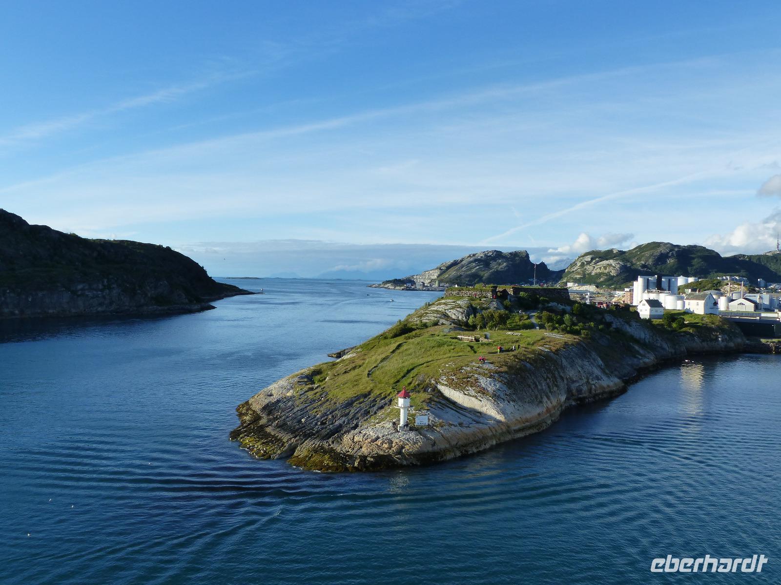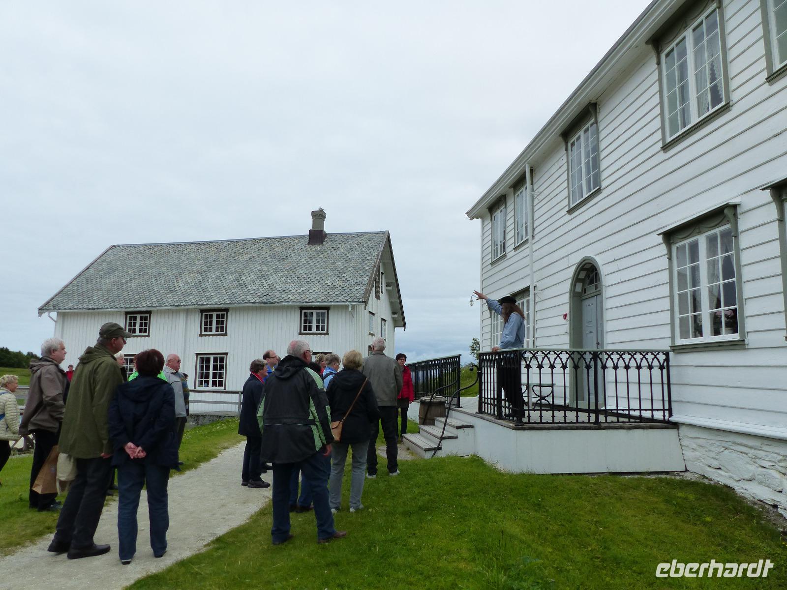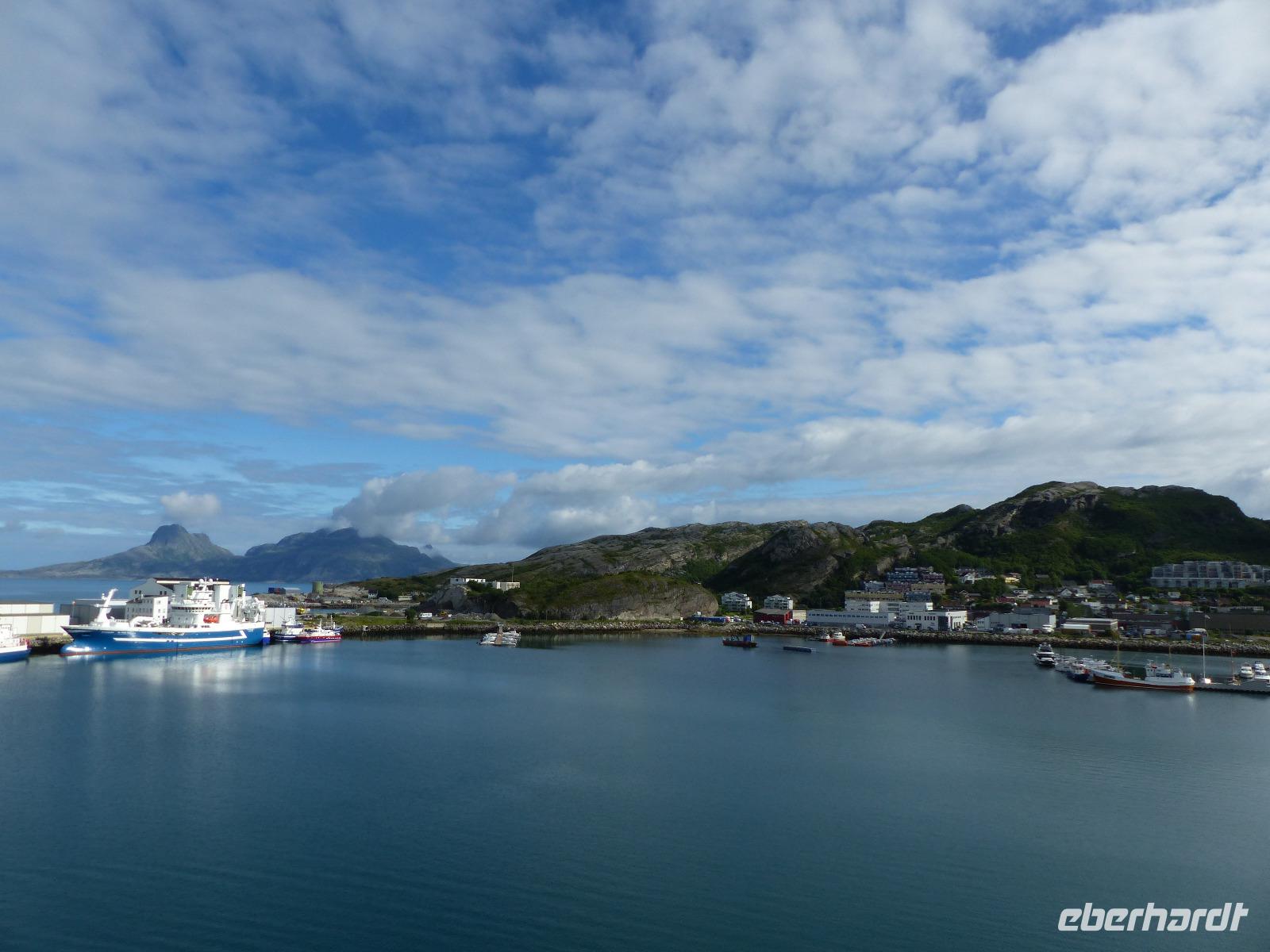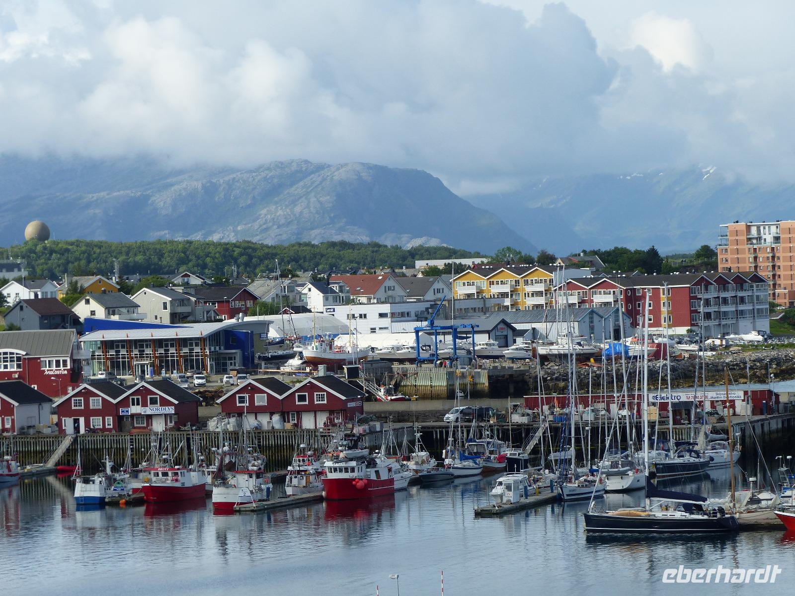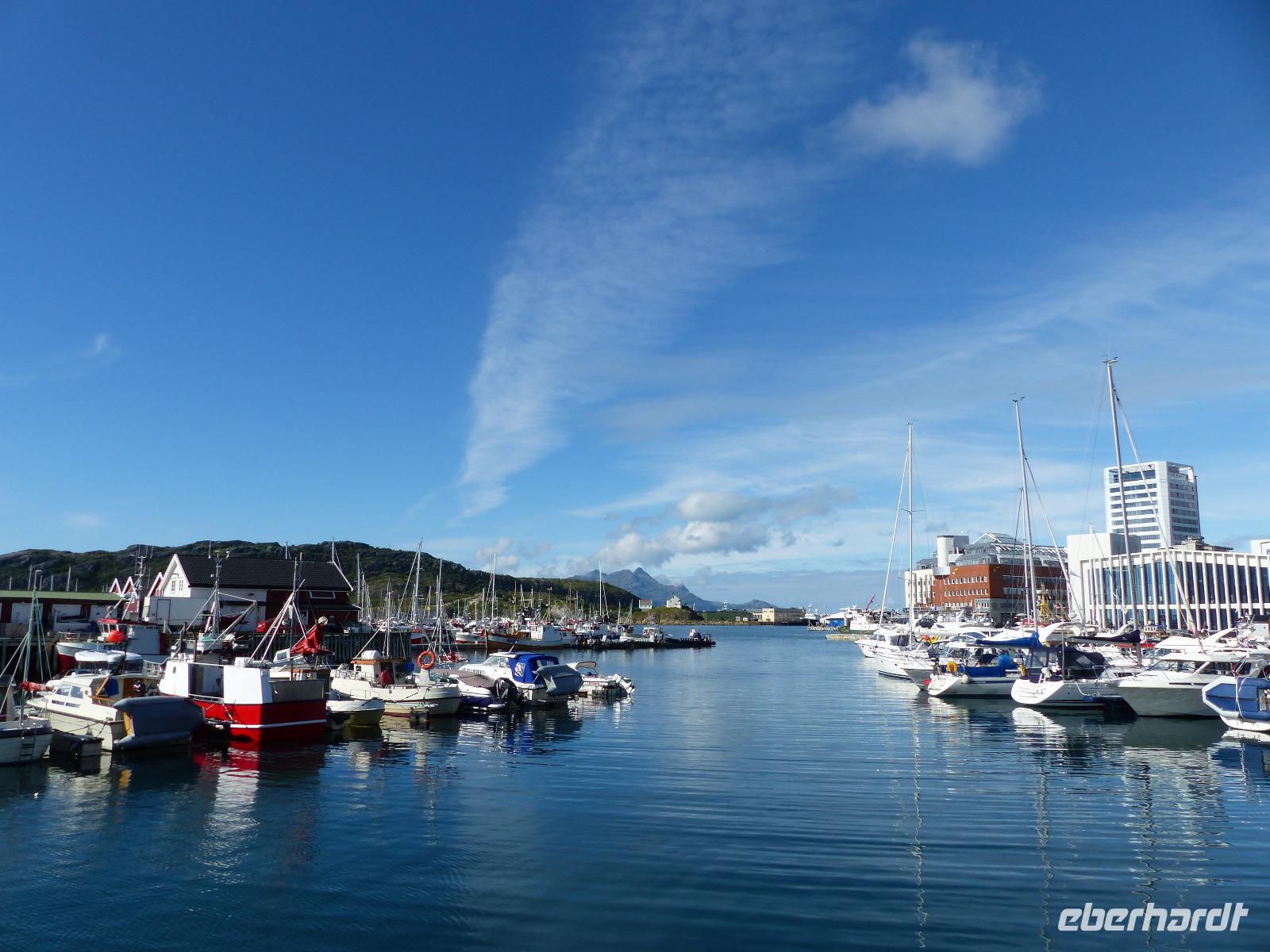 Nach einer wunderschönen Einfahrt in den Fjord und letztendlich mit dem Anlegen des Schiffes in Bodö, der Hauptstadt von Nordland, begrüßt uns der Tag bereits mit etwas Sonnenschein. Am Vormittag verlassen wir gemeinsam das Schiff, denn ein Eberhardt-Inklusivausflug steht auf dem Programm. Wir steigen in unseren Rundreisebus und werden herzlich von Juden, unserer örtlichen Reiseleiterin begrüßt und beginnen sogleich mit einer kleinen Orientierungsfahrt durch die rund 45.000 Einwohner zählende Stadt. Aufgrund des Angriffs der deutschen Wehrmacht im Jahre 1940, erwartet uns in der Innenstadt nicht allzu viel Idylle, sondern eher ein in Stein- und Betongehülltes Stadtbild. Doch auf dem Weg nach Kjerringgöy, dem ehemals reichsten Handelsplatz des hohen Nordens, zeigt sich uns eine wunderschöne Natur. Die sich immer mehr zeigende Sonne lässt die Landschaft in all Ihren Farben leuchten. Auch fahren wir bei diesem Ausflug nicht nur mit dem Bus, sondern auch eine 10 minütige Fährüberfahrt steht auf dem Programm - so schön, dass ein Gast der Gruppe die Chance für eine extra Fahrt nutzt ;). Gegen Mittag kommen wir dann am alten Handelsposten Kjerringöy an und nehmen nach einer kurzen Videopräsentation eine leckere Fischsuppe ein. Im Anschluss werden wir mit auf eine Zeitreise durch die nordnorwegische Kulturgeschichte genommen- unser kleiner Rundgang auf dem Gelände beginnt und wir lauschen aufmerksam den interessanten Erzählungen. Gegen 14 Uhr treten wir unsere Rückfahrt nach Bodö an, und begeben uns auf dem selben Weg zurück in die Stadt. Doch bevor es bei herrlichem Sonnenschein zurück aufs Schiff geht, besuchen wir den 150m hohen Ronvikfjell, einen Aussichtpunkt von dem wir nicht nur auf die Stadt, sondern auch die vorgelagerte Inselwelt bis hin zu den Lofoten erblicken können. Die hier in größerer Zahl vorkommenden Weißschwanz-Seeadler können wir allerdings nicht entdecken. Den späten Nachmittag gestaltet jeder für sich selbst- bequem bei Kaffee und Kuchen an Bord oder auch bei einem Spaziergang zum Segelhafen von Bodö.