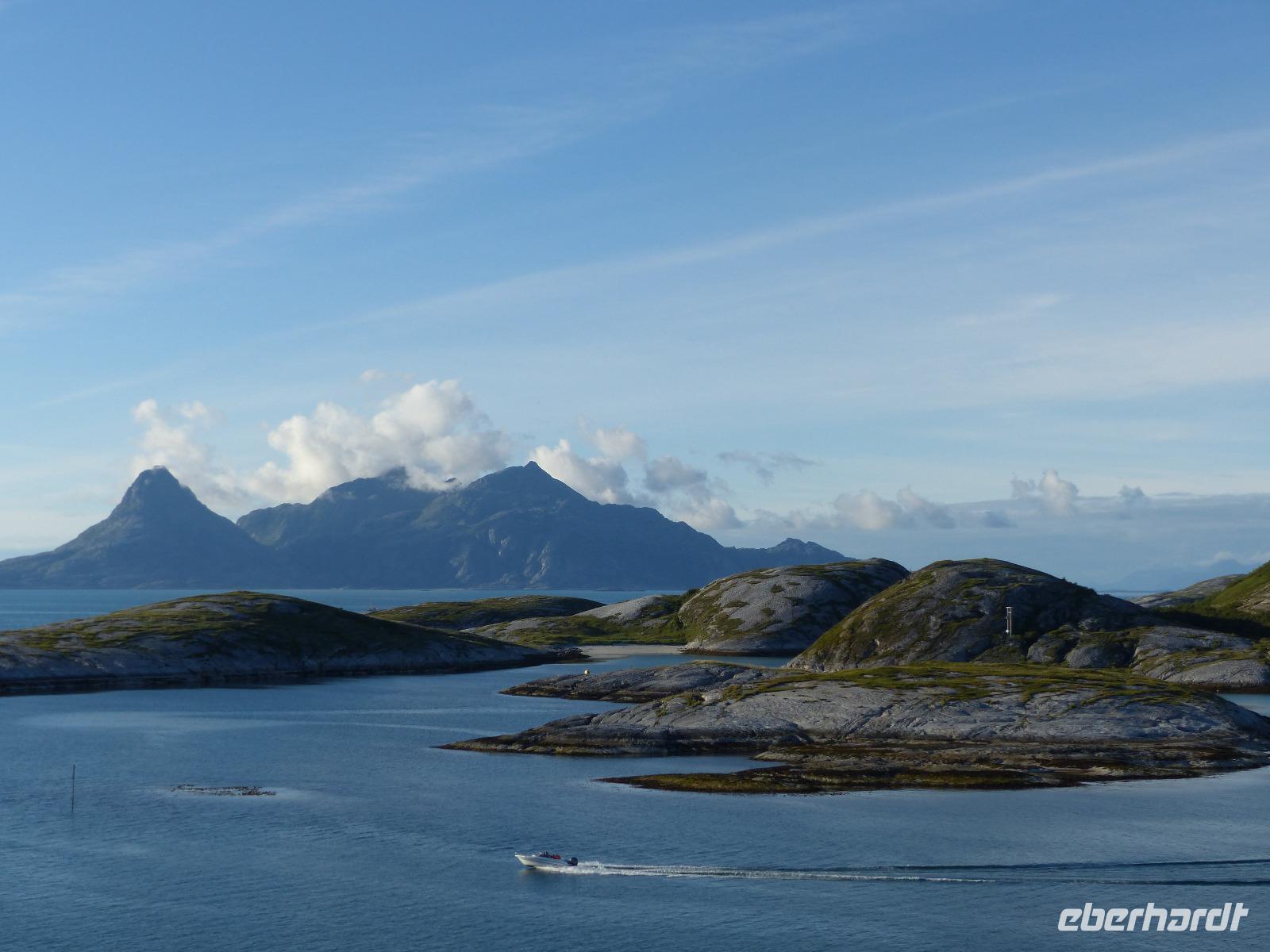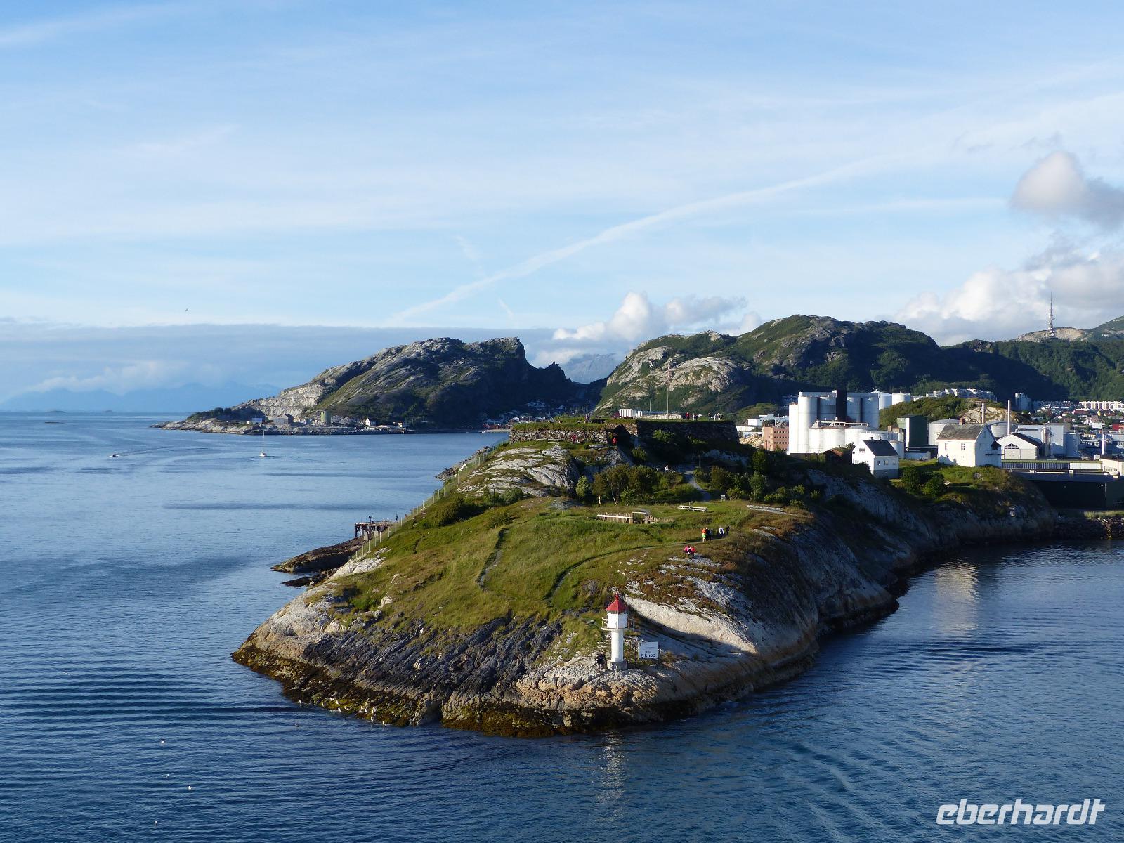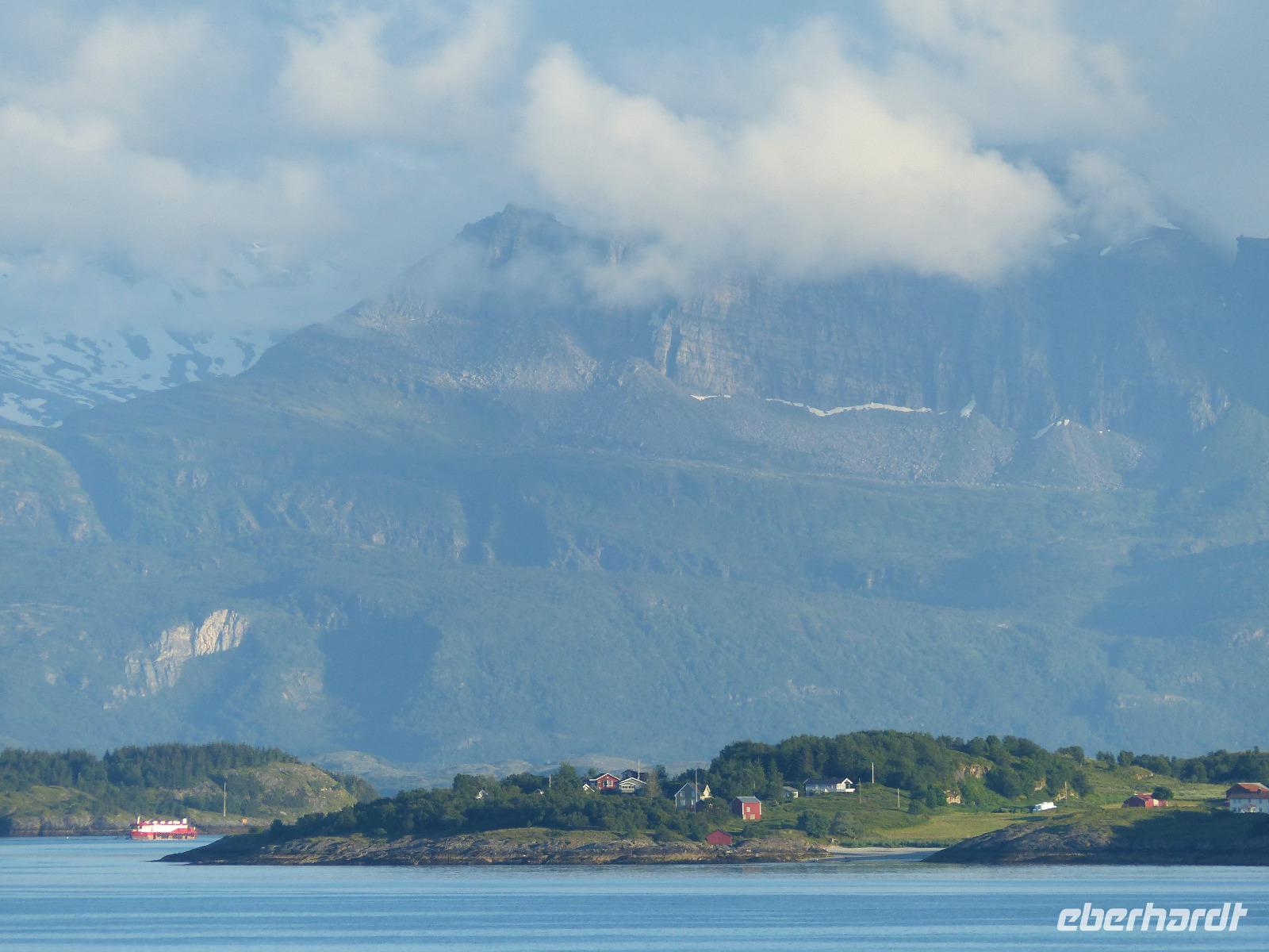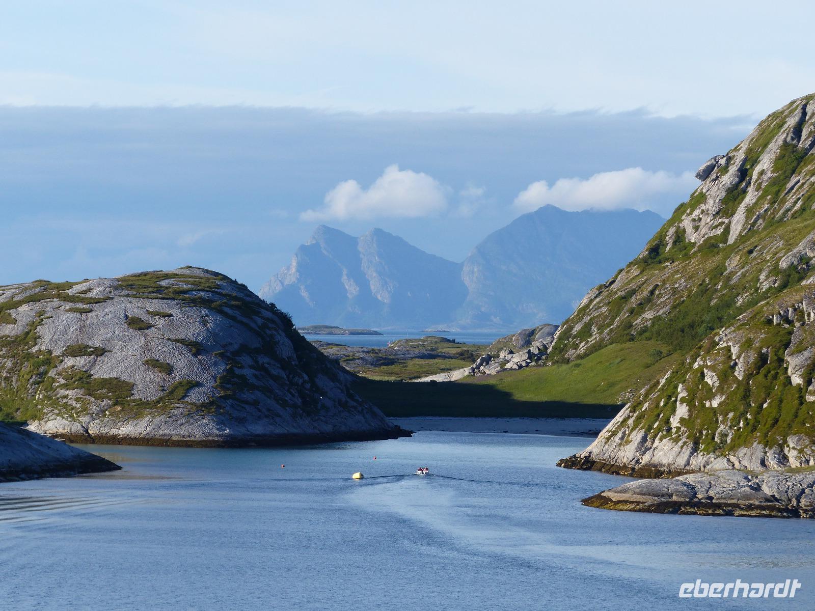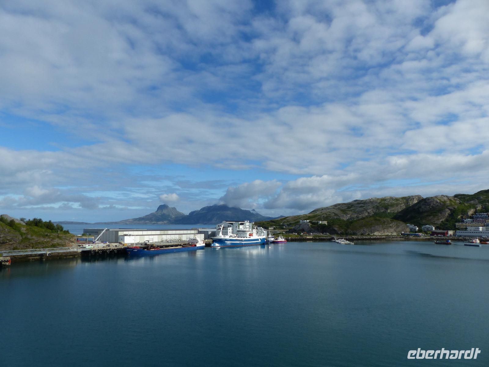 Nach einer wunderschönen Einfahrt in den Fjord und letztendlich mit dem Anlegen des Schiffes in Bodö, der Hauptstadt von Nordland, begrüßt uns der Tag bereits mit etwas Sonnenschein. Am Vormittag verlassen wir gemeinsam das Schiff, denn ein Eberhardt-Inklusivausflug steht auf dem Programm. Wir steigen in unseren Rundreisebus und werden herzlich von Juden, unserer örtlichen Reiseleiterin begrüßt und beginnen sogleich mit einer kleinen Orientierungsfahrt durch die rund 45.000 Einwohner zählende Stadt. Aufgrund des Angriffs der deutschen Wehrmacht im Jahre 1940, erwartet uns in der Innenstadt nicht allzu viel Idylle, sondern eher ein in Stein- und Betongehülltes Stadtbild. Doch auf dem Weg nach Kjerringgöy, dem ehemals reichsten Handelsplatz des hohen Nordens, zeigt sich uns eine wunderschöne Natur. Die sich immer mehr zeigende Sonne lässt die Landschaft in all Ihren Farben leuchten. Auch fahren wir bei diesem Ausflug nicht nur mit dem Bus, sondern auch eine 10 minütige Fährüberfahrt steht auf dem Programm - so schön, dass ein Gast der Gruppe die Chance für eine extra Fahrt nutzt ;). Gegen Mittag kommen wir dann am alten Handelsposten Kjerringöy an und nehmen nach einer kurzen Videopräsentation eine leckere Fischsuppe ein. Im Anschluss werden wir mit auf eine Zeitreise durch die nordnorwegische Kulturgeschichte genommen- unser kleiner Rundgang auf dem Gelände beginnt und wir lauschen aufmerksam den interessanten Erzählungen. Gegen 14 Uhr treten wir unsere Rückfahrt nach Bodö an, und begeben uns auf dem selben Weg zurück in die Stadt. Doch bevor es bei herrlichem Sonnenschein zurück aufs Schiff geht, besuchen wir den 150m hohen Ronvikfjell, einen Aussichtpunkt von dem wir nicht nur auf die Stadt, sondern auch die vorgelagerte Inselwelt bis hin zu den Lofoten erblicken können. Die hier in größerer Zahl vorkommenden Weißschwanz-Seeadler können wir allerdings nicht entdecken. Den späten Nachmittag gestaltet jeder für sich selbst- bequem bei Kaffee und Kuchen an Bord oder auch bei einem Spaziergang zum Segelhafen von Bodö.