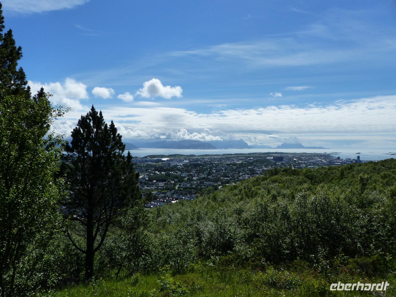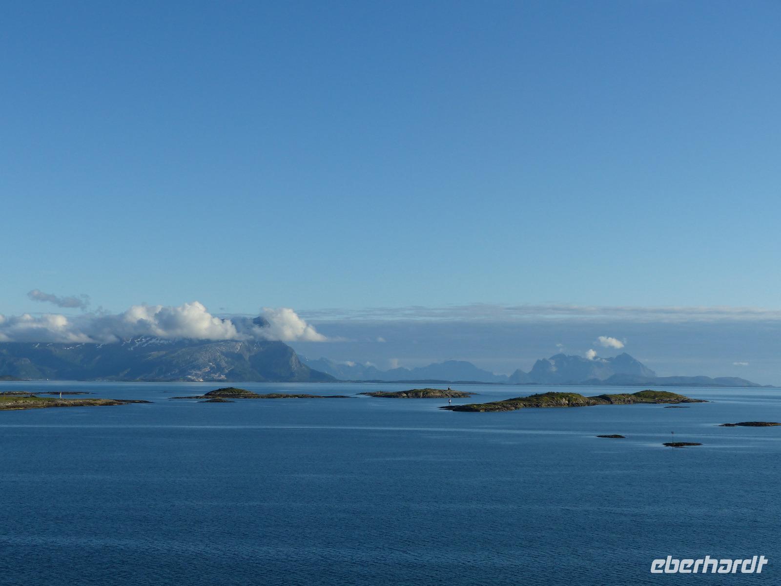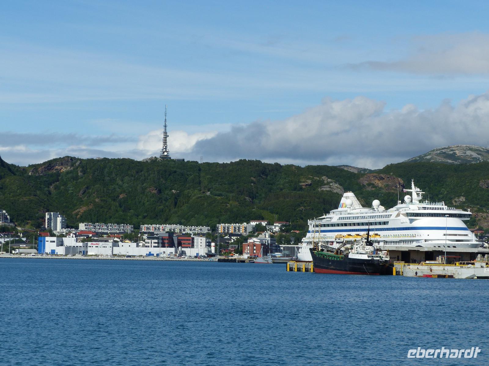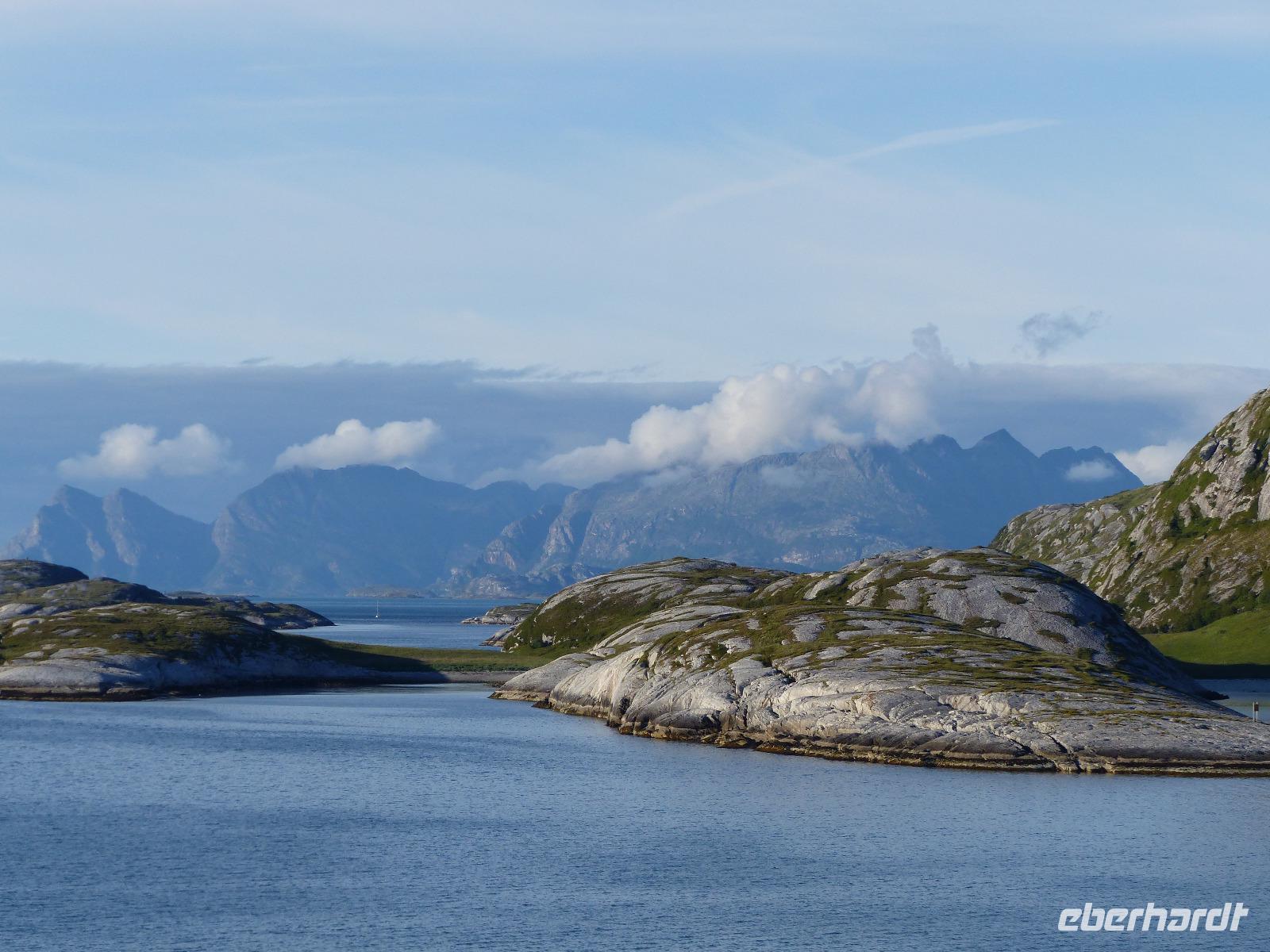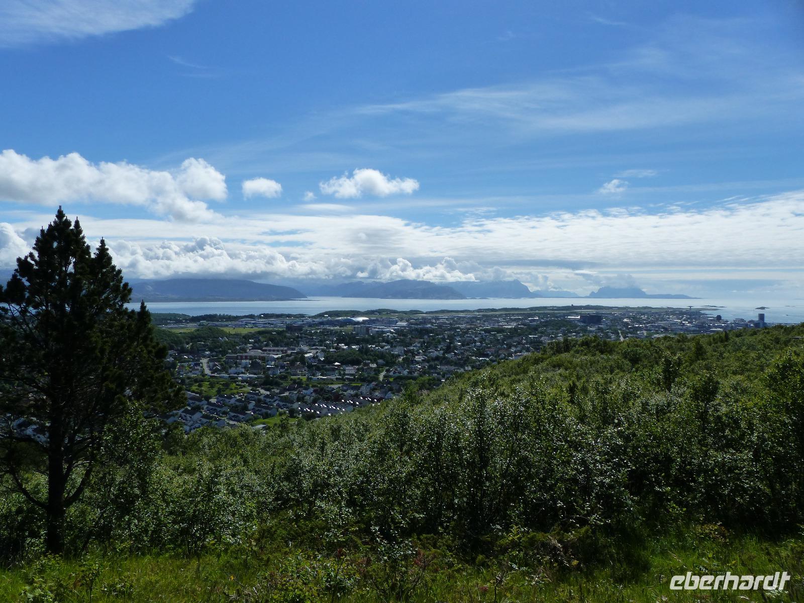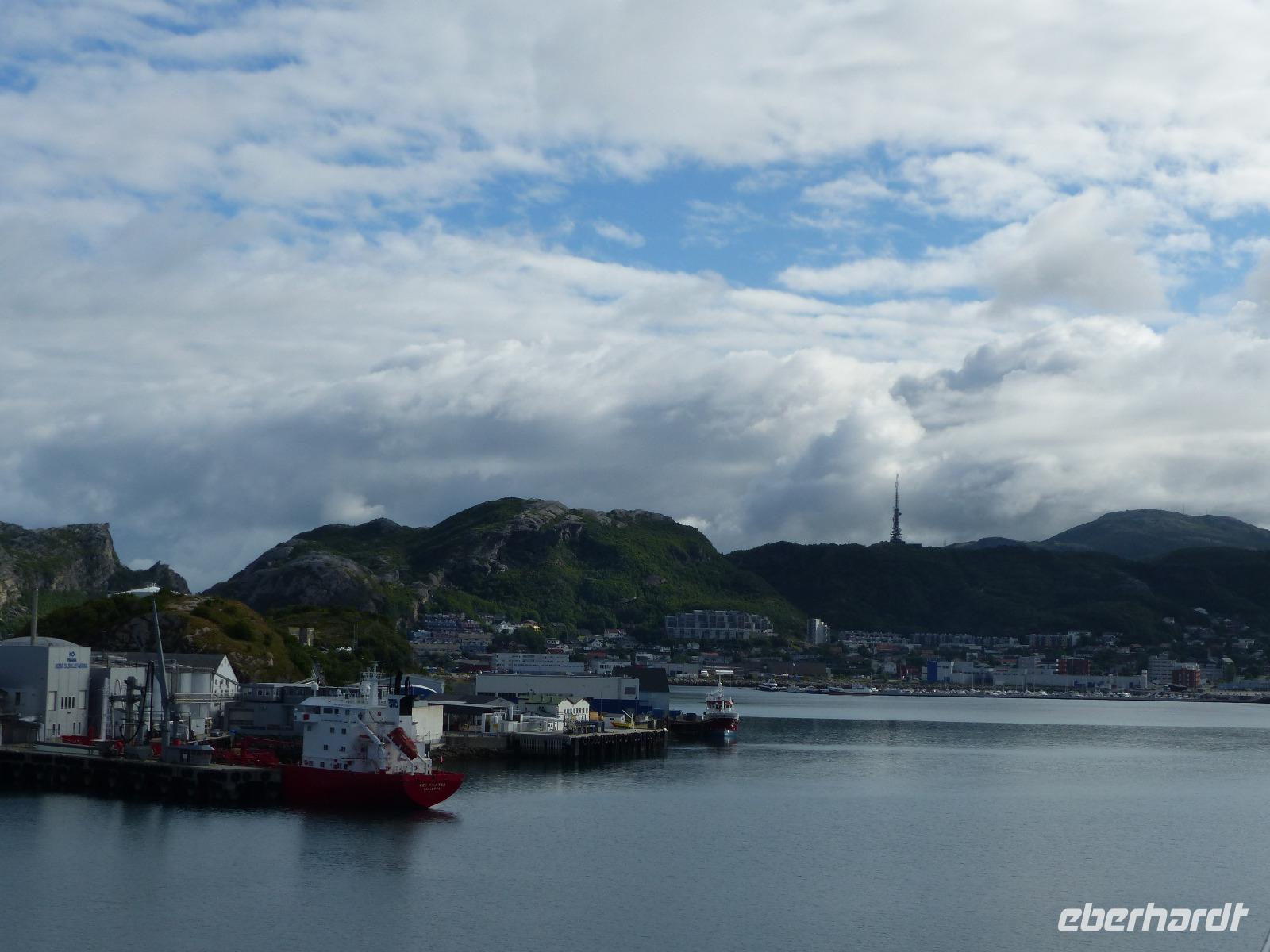 Nach einer wunderschönen Einfahrt in den Fjord und letztendlich mit dem Anlegen des Schiffes in Bodö, der Hauptstadt von Nordland, begrüßt uns der Tag bereits mit etwas Sonnenschein. Am Vormittag verlassen wir gemeinsam das Schiff, denn ein Eberhardt-Inklusivausflug steht auf dem Programm. Wir steigen in unseren Rundreisebus und werden herzlich von Juden, unserer örtlichen Reiseleiterin begrüßt und beginnen sogleich mit einer kleinen Orientierungsfahrt durch die rund 45.000 Einwohner zählende Stadt. Aufgrund des Angriffs der deutschen Wehrmacht im Jahre 1940, erwartet uns in der Innenstadt nicht allzu viel Idylle, sondern eher ein in Stein- und Betongehülltes Stadtbild. Doch auf dem Weg nach Kjerringgöy, dem ehemals reichsten Handelsplatz des hohen Nordens, zeigt sich uns eine wunderschöne Natur. Die sich immer mehr zeigende Sonne lässt die Landschaft in all Ihren Farben leuchten. Auch fahren wir bei diesem Ausflug nicht nur mit dem Bus, sondern auch eine 10 minütige Fährüberfahrt steht auf dem Programm - so schön, dass ein Gast der Gruppe die Chance für eine extra Fahrt nutzt ;). Gegen Mittag kommen wir dann am alten Handelsposten Kjerringöy an und nehmen nach einer kurzen Videopräsentation eine leckere Fischsuppe ein. Im Anschluss werden wir mit auf eine Zeitreise durch die nordnorwegische Kulturgeschichte genommen- unser kleiner Rundgang auf dem Gelände beginnt und wir lauschen aufmerksam den interessanten Erzählungen. Gegen 14 Uhr treten wir unsere Rückfahrt nach Bodö an, und begeben uns auf dem selben Weg zurück in die Stadt. Doch bevor es bei herrlichem Sonnenschein zurück aufs Schiff geht, besuchen wir den 150m hohen Ronvikfjell, einen Aussichtpunkt von dem wir nicht nur auf die Stadt, sondern auch die vorgelagerte Inselwelt bis hin zu den Lofoten erblicken können. Die hier in größerer Zahl vorkommenden Weißschwanz-Seeadler können wir allerdings nicht entdecken. Den späten Nachmittag gestaltet jeder für sich selbst- bequem bei Kaffee und Kuchen an Bord oder auch bei einem Spaziergang zum Segelhafen von Bodö.