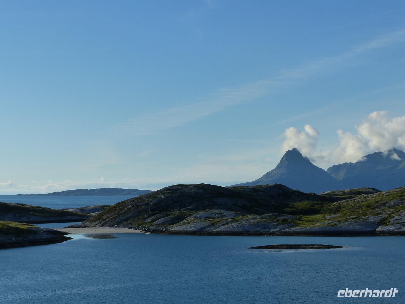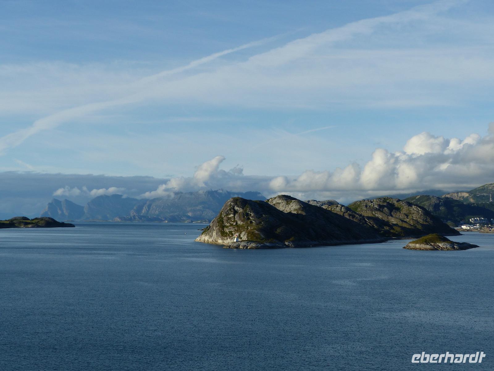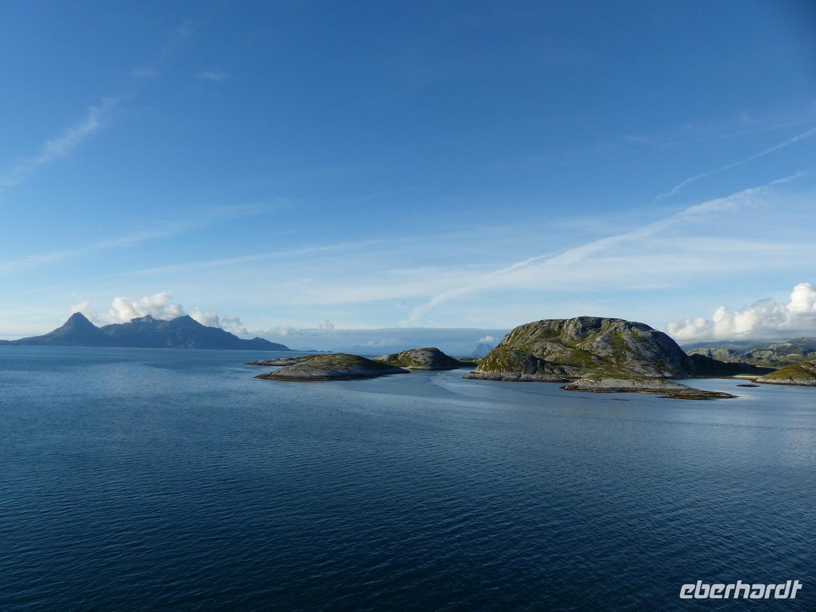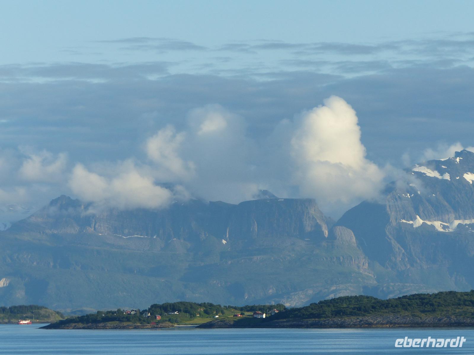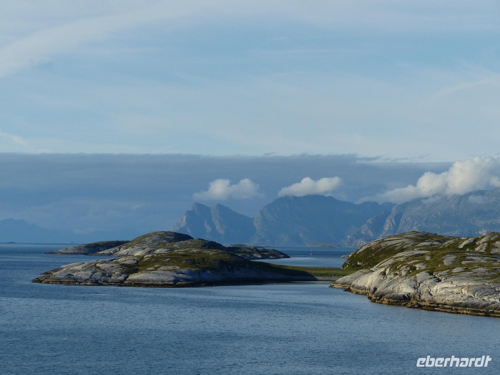 Nach einer wunderschönen Einfahrt in den Fjord und letztendlich mit dem Anlegen des Schiffes in Bodö, der Hauptstadt von Nordland, begrüßt uns der Tag bereits mit etwas Sonnenschein. Am Vormittag verlassen wir gemeinsam das Schiff, denn ein Eberhardt-Inklusivausflug steht auf dem Programm. Wir steigen in unseren Rundreisebus und werden herzlich von Juden, unserer örtlichen Reiseleiterin begrüßt und beginnen sogleich mit einer kleinen Orientierungsfahrt durch die rund 45.000 Einwohner zählende Stadt. Aufgrund des Angriffs der deutschen Wehrmacht im Jahre 1940, erwartet uns in der Innenstadt nicht allzu viel Idylle, sondern eher ein in Stein- und Betongehülltes Stadtbild. Doch auf dem Weg nach Kjerringgöy, dem ehemals reichsten Handelsplatz des hohen Nordens, zeigt sich uns eine wunderschöne Natur. Die sich immer mehr zeigende Sonne lässt die Landschaft in all Ihren Farben leuchten. Auch fahren wir bei diesem Ausflug nicht nur mit dem Bus, sondern auch eine 10 minütige Fährüberfahrt steht auf dem Programm - so schön, dass ein Gast der Gruppe die Chance für eine extra Fahrt nutzt ;). Gegen Mittag kommen wir dann am alten Handelsposten Kjerringöy an und nehmen nach einer kurzen Videopräsentation eine leckere Fischsuppe ein. Im Anschluss werden wir mit auf eine Zeitreise durch die nordnorwegische Kulturgeschichte genommen- unser kleiner Rundgang auf dem Gelände beginnt und wir lauschen aufmerksam den interessanten Erzählungen. Gegen 14 Uhr treten wir unsere Rückfahrt nach Bodö an, und begeben uns auf dem selben Weg zurück in die Stadt. Doch bevor es bei herrlichem Sonnenschein zurück aufs Schiff geht, besuchen wir den 150m hohen Ronvikfjell, einen Aussichtpunkt von dem wir nicht nur auf die Stadt, sondern auch die vorgelagerte Inselwelt bis hin zu den Lofoten erblicken können. Die hier in größerer Zahl vorkommenden Weißschwanz-Seeadler können wir allerdings nicht entdecken. Den späten Nachmittag gestaltet jeder für sich selbst- bequem bei Kaffee und Kuchen an Bord oder auch bei einem Spaziergang zum Segelhafen von Bodö.
