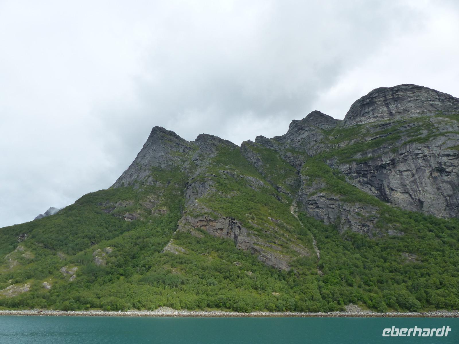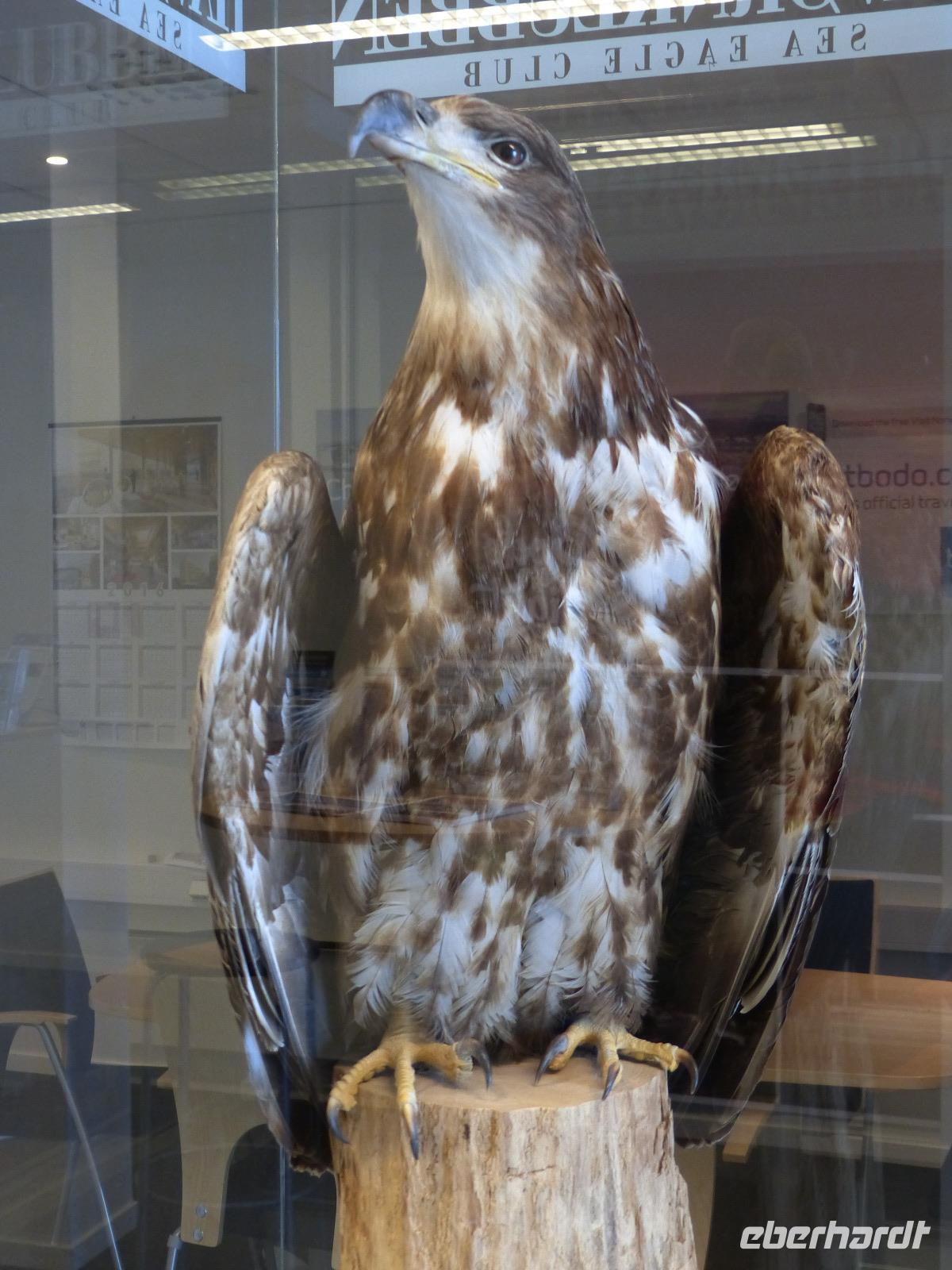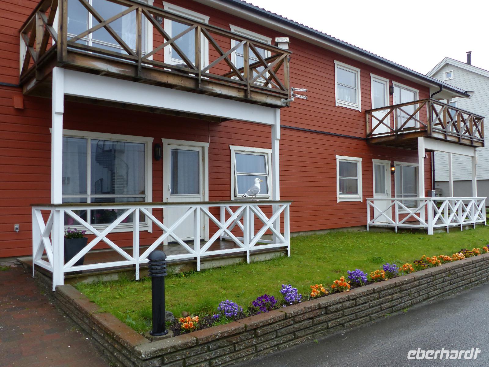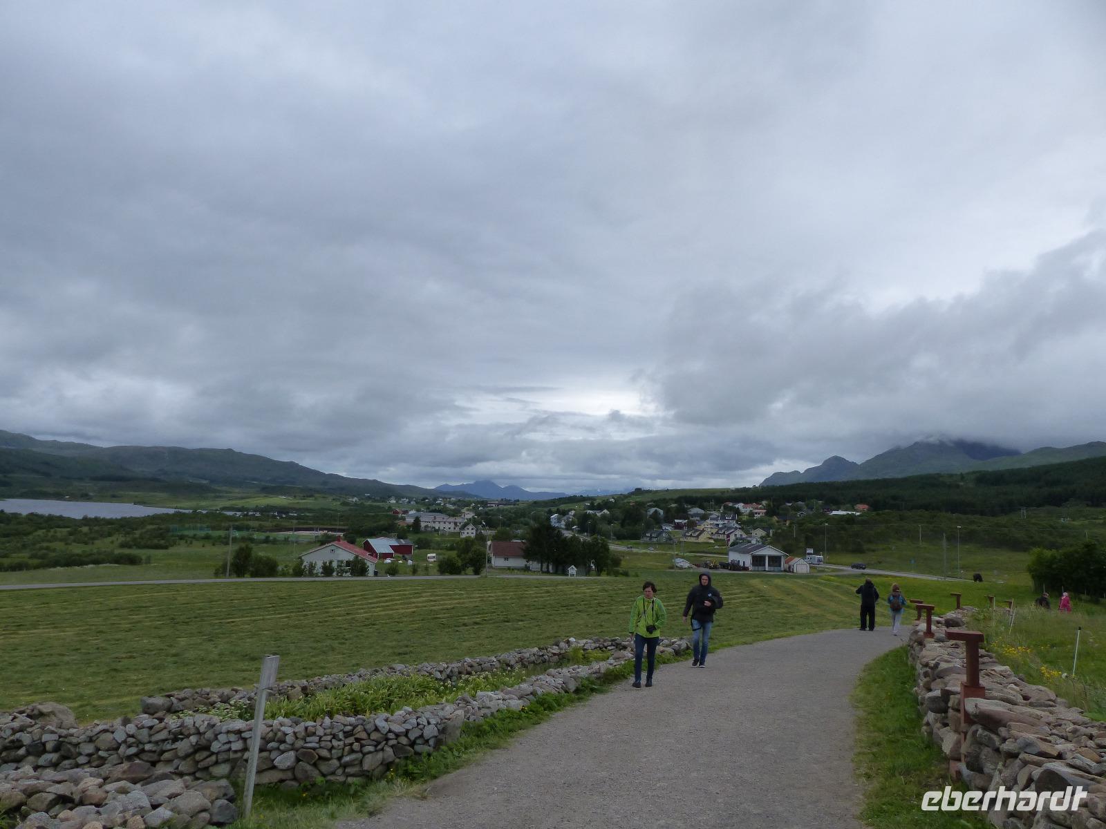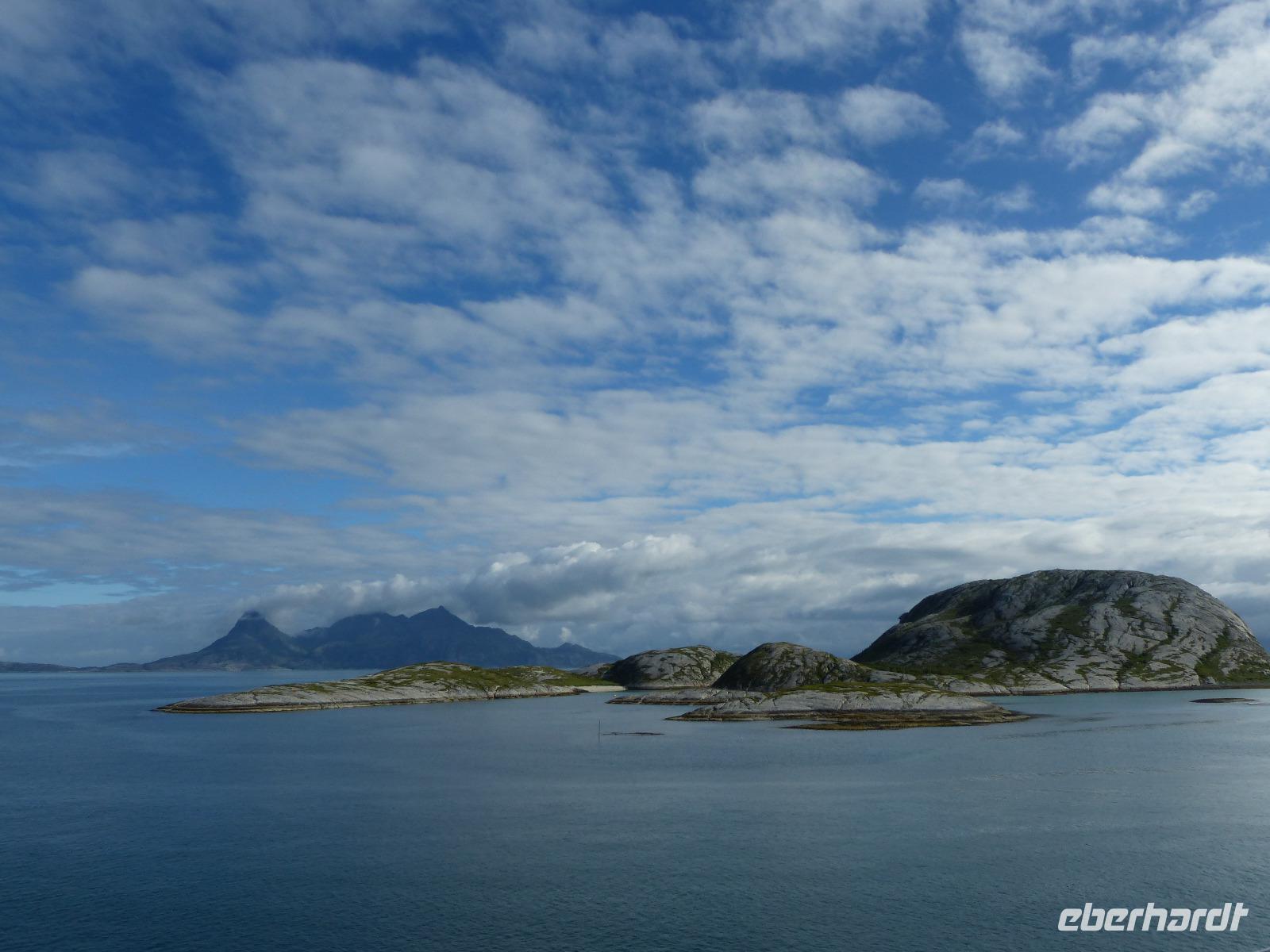 Nach einer wunderschönen Einfahrt in den Fjord und letztendlich mit dem Anlegen des Schiffes in Bodö, der Hauptstadt von Nordland, begrüßt uns der Tag bereits mit etwas Sonnenschein. Am Vormittag verlassen wir gemeinsam das Schiff, denn ein Eberhardt-Inklusivausflug steht auf dem Programm. Wir steigen in unseren Rundreisebus und werden herzlich von Juden, unserer örtlichen Reiseleiterin begrüßt und beginnen sogleich mit einer kleinen Orientierungsfahrt durch die rund 45.000 Einwohner zählende Stadt. Aufgrund des Angriffs der deutschen Wehrmacht im Jahre 1940, erwartet uns in der Innenstadt nicht allzu viel Idylle, sondern eher ein in Stein- und Betongehülltes Stadtbild. Doch auf dem Weg nach Kjerringgöy, dem ehemals reichsten Handelsplatz des hohen Nordens, zeigt sich uns eine wunderschöne Natur. Die sich immer mehr zeigende Sonne lässt die Landschaft in all Ihren Farben leuchten. Auch fahren wir bei diesem Ausflug nicht nur mit dem Bus, sondern auch eine 10 minütige Fährüberfahrt steht auf dem Programm - so schön, dass ein Gast der Gruppe die Chance für eine extra Fahrt nutzt ;). Gegen Mittag kommen wir dann am alten Handelsposten Kjerringöy an und nehmen nach einer kurzen Videopräsentation eine leckere Fischsuppe ein. Im Anschluss werden wir mit auf eine Zeitreise durch die nordnorwegische Kulturgeschichte genommen- unser kleiner Rundgang auf dem Gelände beginnt und wir lauschen aufmerksam den interessanten Erzählungen. Gegen 14 Uhr treten wir unsere Rückfahrt nach Bodö an, und begeben uns auf dem selben Weg zurück in die Stadt. Doch bevor es bei herrlichem Sonnenschein zurück aufs Schiff geht, besuchen wir den 150m hohen Ronvikfjell, einen Aussichtpunkt von dem wir nicht nur auf die Stadt, sondern auch die vorgelagerte Inselwelt bis hin zu den Lofoten erblicken können. Die hier in größerer Zahl vorkommenden Weißschwanz-Seeadler können wir allerdings nicht entdecken. Den späten Nachmittag gestaltet jeder für sich selbst- bequem bei Kaffee und Kuchen an Bord oder auch bei einem Spaziergang zum Segelhafen von Bodö.