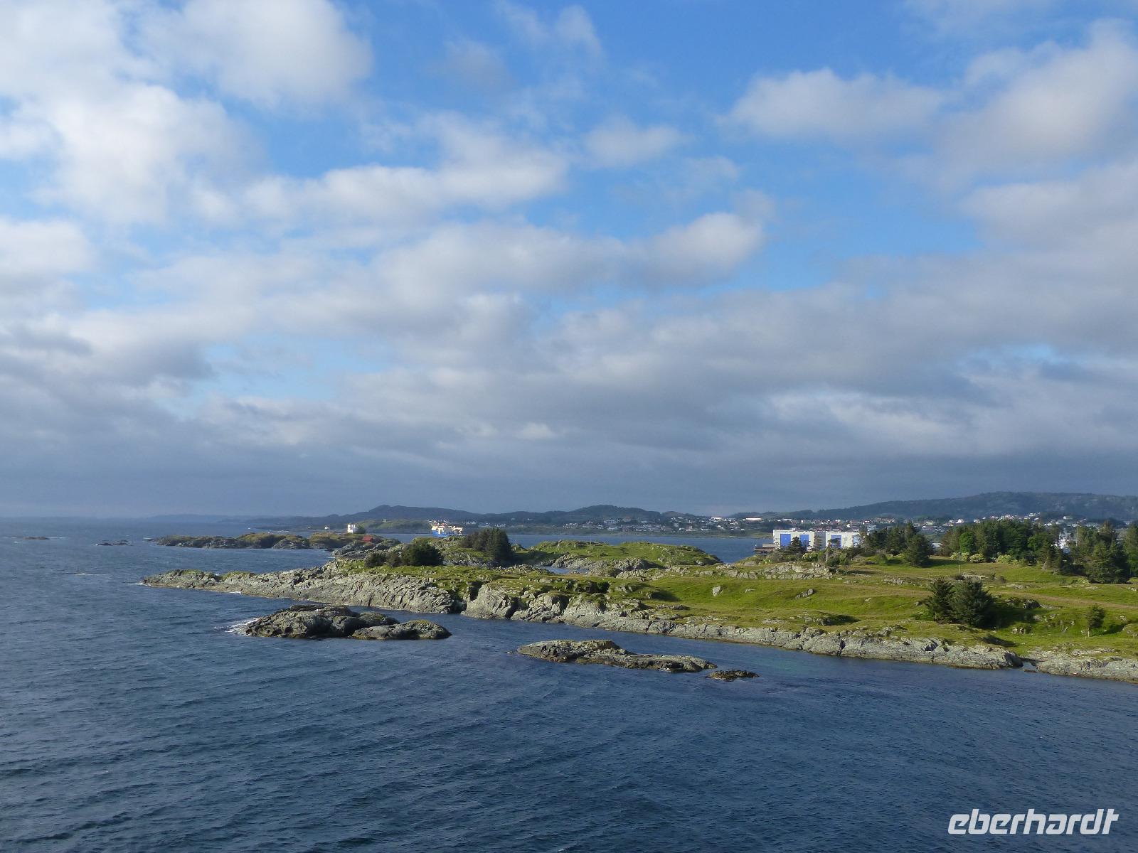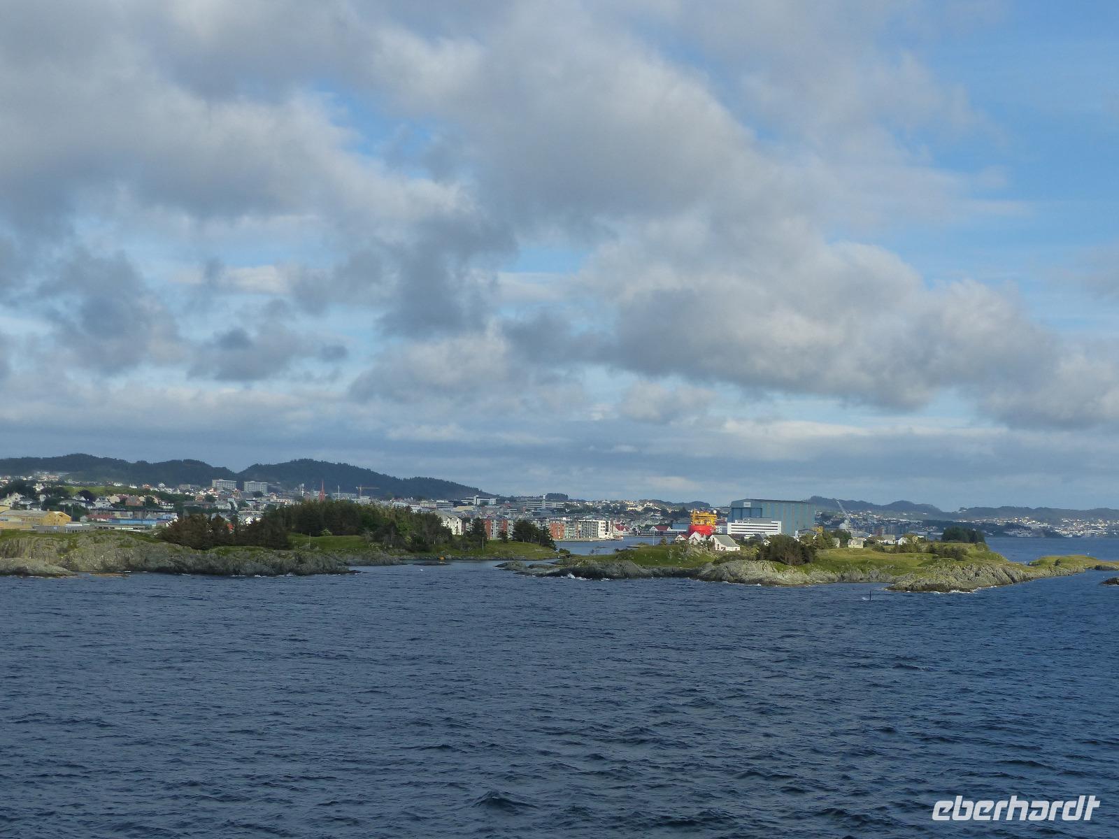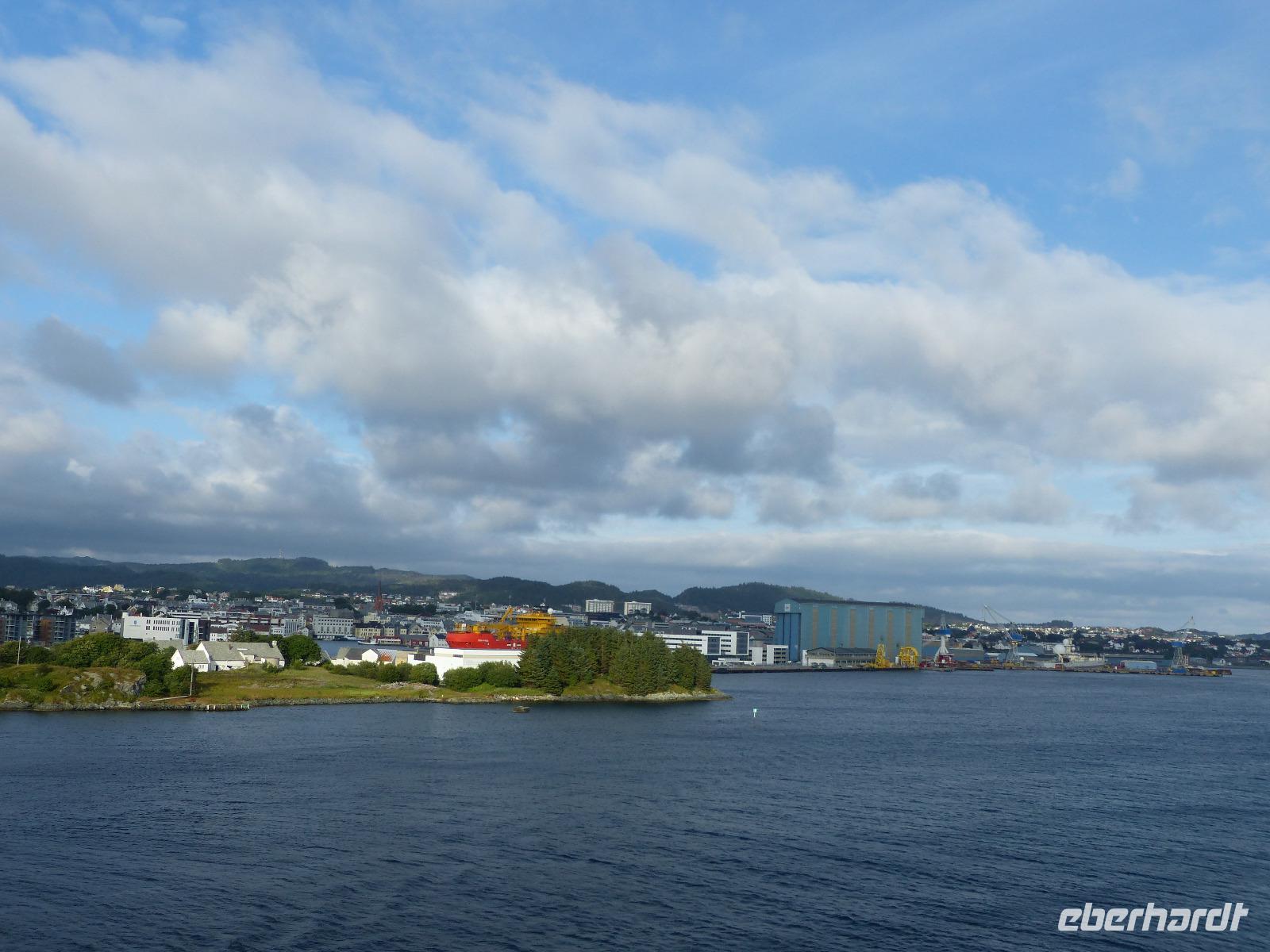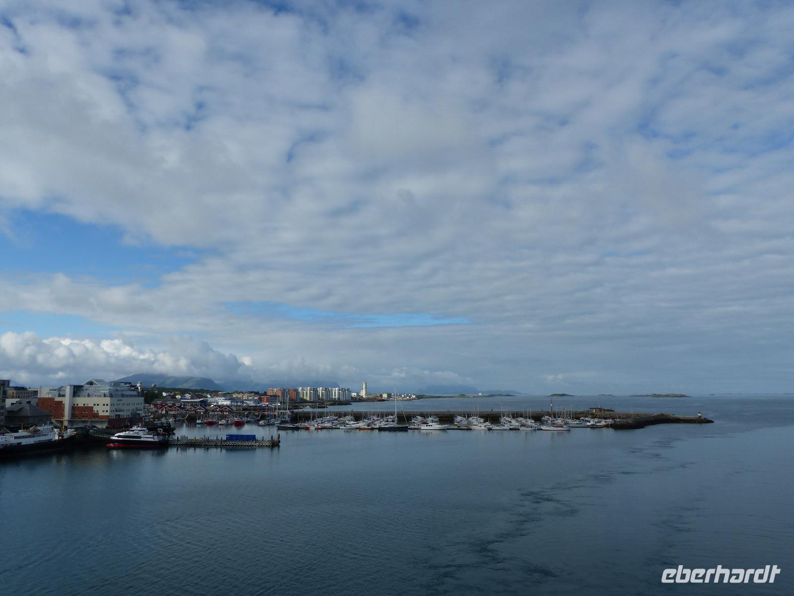 Nach zwei Tagen auf hoher See, heißt es heute Morgen: Land in Sicht! An der Südwestküste Norwegens und zwischen Bergen und Stavanger gelegen, besuchen wir heute die Hafenstadt Haugesund. Sie gilt als Geburtsstätte Norwegens und ist heute für ihr reiches kulturelles Angebot bekannt. Je nach eigenem Tagesprogramm, gestaltet sich der Ablauf für jeden aus der Gruppe etwas anders. Einige haben sich für ein eindrucksvolles Naturschauspiel, dem mit einer Fallhöhe von 612m und zu den höchsten Wasserfällen der Erde zählenden Langfoss Wasserfall entschieden. Andere wiederum besuchen bei einem Halbtagesausflug den charmanten Ort Skudeneshavn, welcher sich im südlichen Teil der Insel Karmoy befindet und durch seinen bis heute erhaltenen, alten Stadtkern besticht. Aber auch die Möglichkeit einer individuellen Freizeitgestaltung oder ein gemeinsamer Spaziergang in der Gruppe durch Haugesund besteht. So verlassen wir zum Beispiel das Schiff zu Fuß und begeben uns ins Zentrum der Stadt- das rosane Rathaus, die längste Fußgängerzone Norwegens und die im neugotischen Stil erbaute Kirche stehen auf dem Programm. Von hier kann man den Transfer mit dem Shuttlebus zurück zum Schiff nutzen oder auch noch einen weiteren Spaziergang zum Haraldshaugen, dem 1872 und somit zur Tausendjahrfeier der Vereinigung Norwegens zu einem Königreich errichteten Nationalmonument unternehmen. Am Abend sind wir dann allesamt wieder zurück an Bord und genießen bei herrlichem Wetter die Ausfahrt aus Haugesund. Ein baldiger Abschied von Norwegen steht bald bevor.