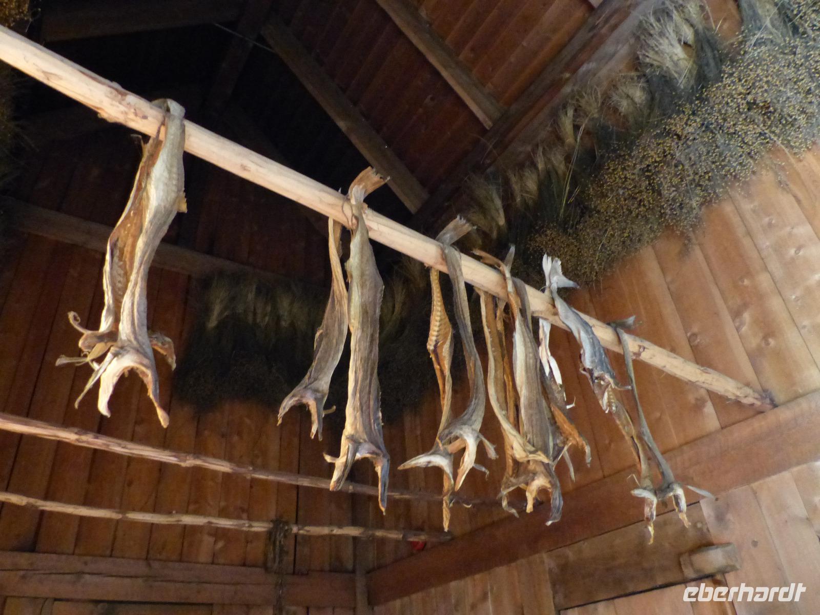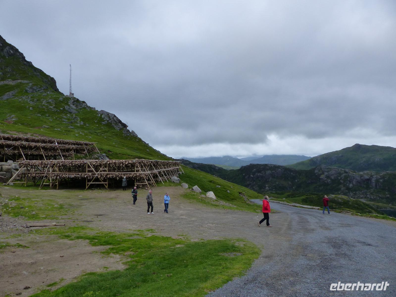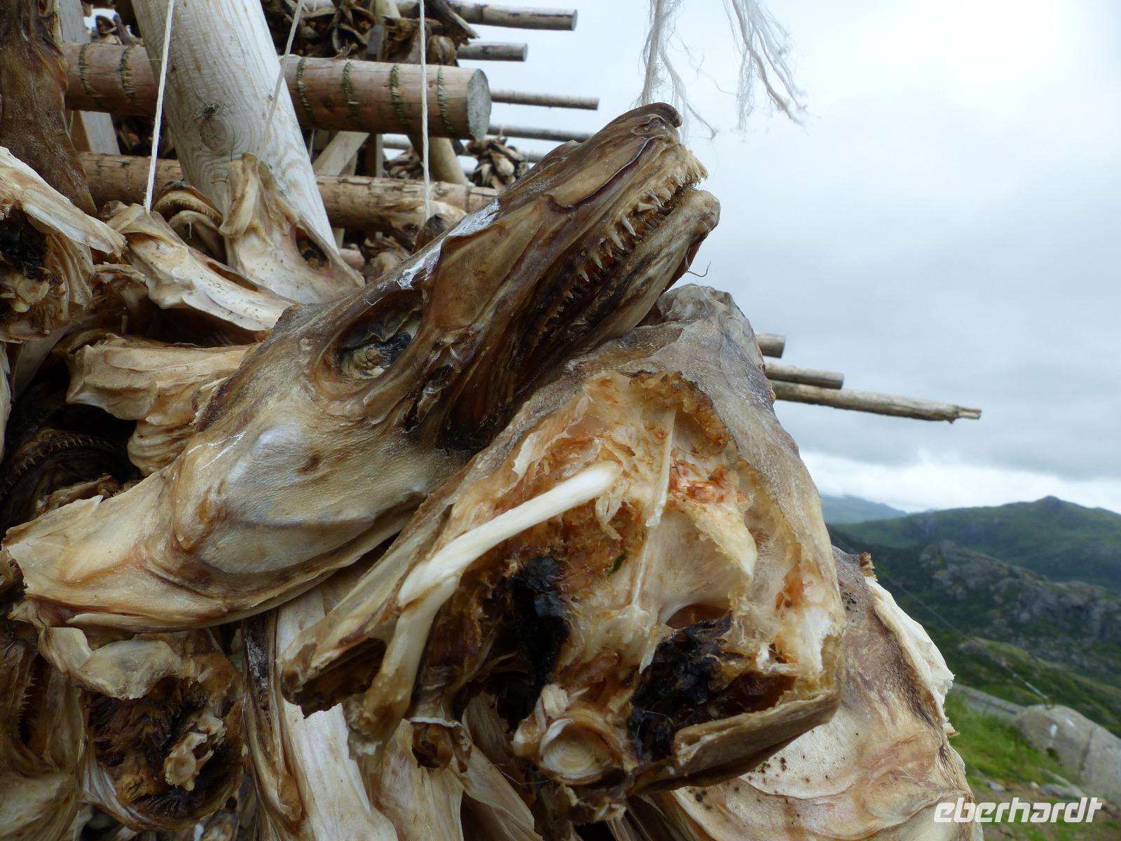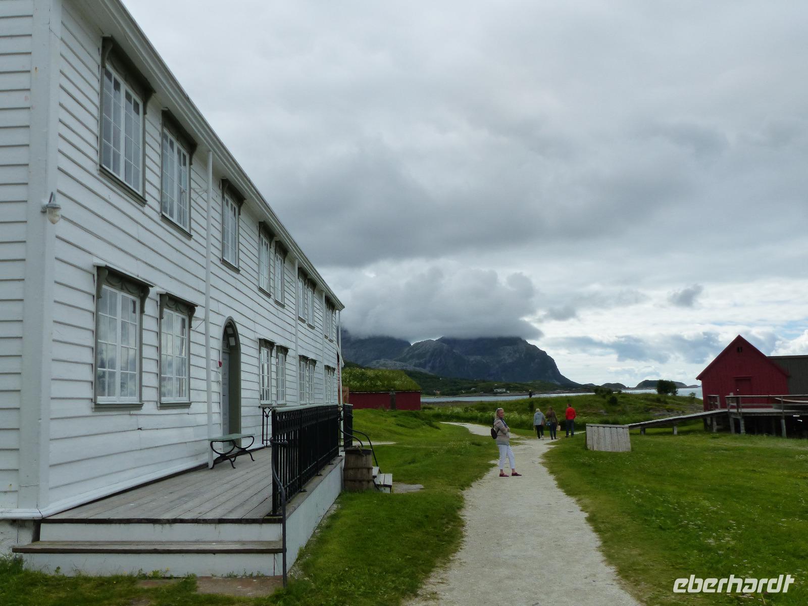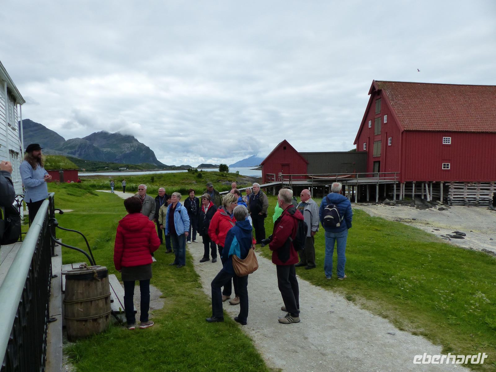 Nach einer kurzen Fahrt über Nacht, erreichen wir am Morgen die bereits von Bodö aus greifbar gewesene Inselgruppe der Lofoten- wahrscheinlich eines der landschaftlichen Höhepunkte unserer Reise! Die Lofoten bieten eine wirklich einzigartige Natur - grüne Wiesen, weiße Sandstrände wie in der Karibik, kristallklares Wasser und wie in unserem Fall mystisch wirkende, im Nebel verhangene, schroffe Felsformationen. Nach dem Frühstück werden wir von unserem örtlichen Reiseleiter Damiano herzlich begrüßt und beginnen unseren Tagesausflug sogleich mit einem Besuch eines typischen Fischerdorfes. Gleich bei unserer Ankunft lässt sich dies aufgrund des Geruches auch nicht mehr verleugnen. Wir lauschen gespannt den Erzählungen über den Fischfang unserem Reiseleiter, denn Damiano versteht es, uns auf sympathische Art und Weise Informationen über diese Region zu vermitteln. Weiter führt uns die Fahrt nach Flagstadoy, eine Insel südwestlich von Vestvagöya und nur durch den 1,8km langen Nappstraumtunnel erreichbar. Hier haben wir einen kurzen Stopp an der hiesigen, im Jahre 1783 erbauten Kirche und einem wunderschönen Strand, welcher direkt am offenen Meer gelegen ist. Passend zur Mittagszeit erreichen wir wenig später das Wikingermuseum Lofotr bei Borg. Wir beginnen unseren Rundgang mit einem einführenden Film und einer sehenswerten Ausstellung, wo wir zunächst jeder individuell mit einem Audioguide ausgestattet, Informationen abrufen können. Nach einer anschließenden traditionellen Wikingermalzeit im Langhaus und den Erzählungen unserer Gästeführerin, haben wir im Anschluss noch ausreichend Zeit die gesamte Anlage individuell zu erkunden. Weiter führt uns unsere Reise zu einem Aussichtpunkt abseits der typischen Touristenrouten, von wo wir einmal einen wunderschönen Blick genießen und zum anderen zahlreiche Köpfe des Stockfisches beim Trocknen sehen und fotografieren können. Da diese normalerweise nur bis Mitte Juni zum Trocknen hängen, haben wir hierbei besonderes Glück. Bei einem anschließenden Besuch einer der wohl schönsten und bekanntesten Strände und einem Stopp mit Aussicht auf unsere in Leknes am Hafen liegende AIDA, kehren wir am späten Nachmittag zurück an Bord. Der erst kürzlich eingesetzte Nieselregen macht uns immerhin den Abschied nicht zu schwer.