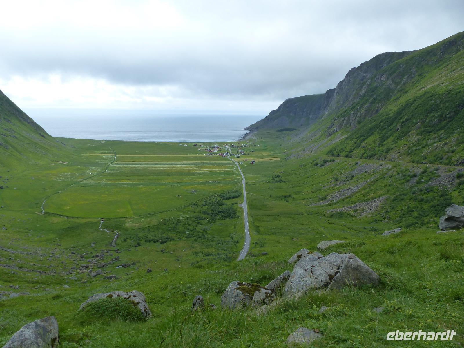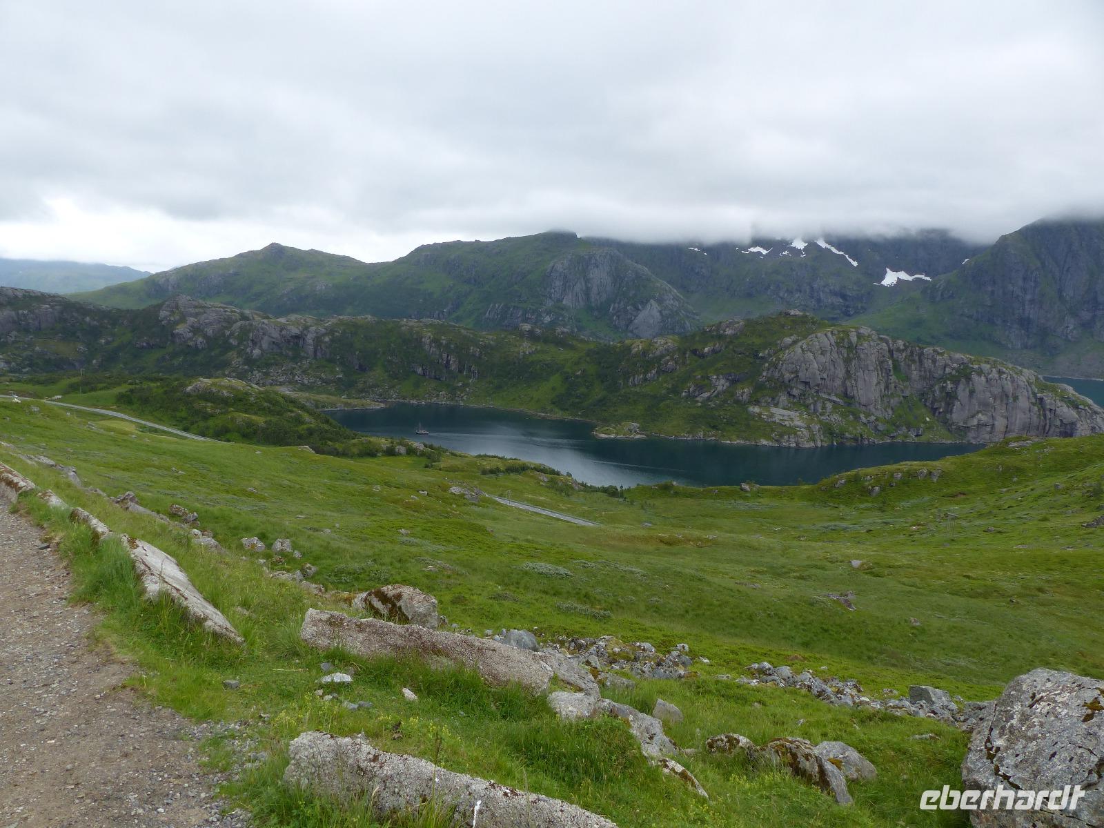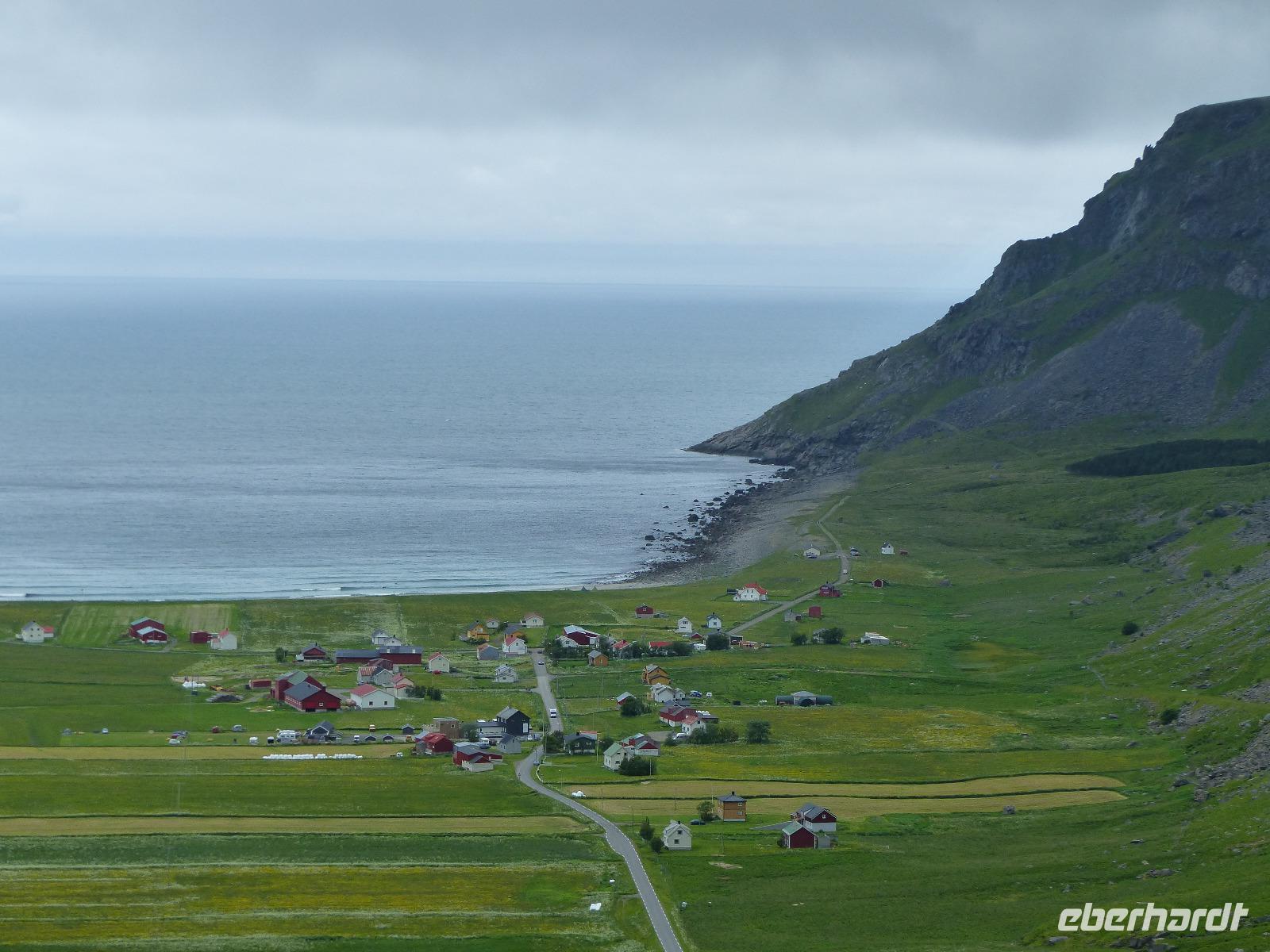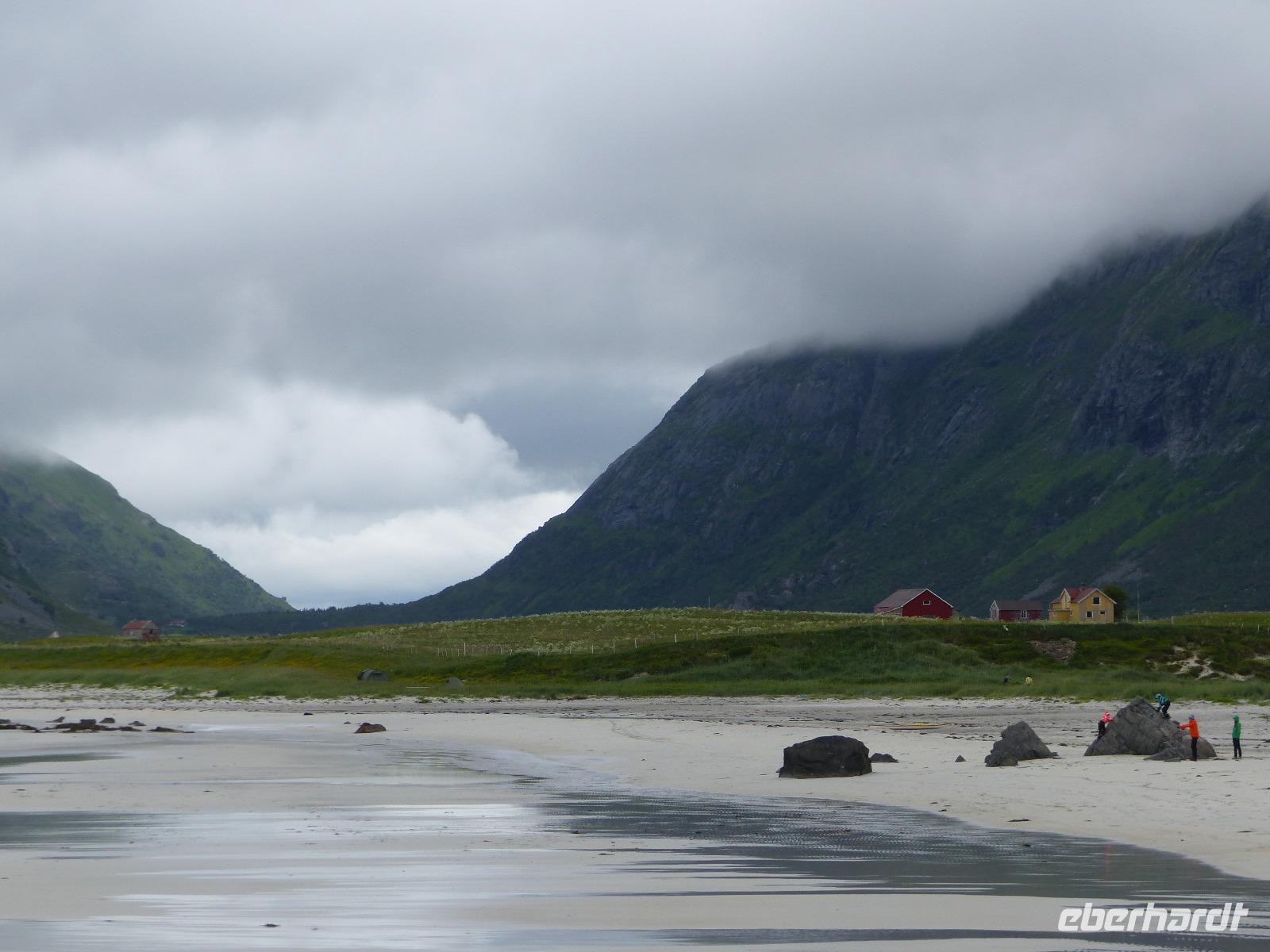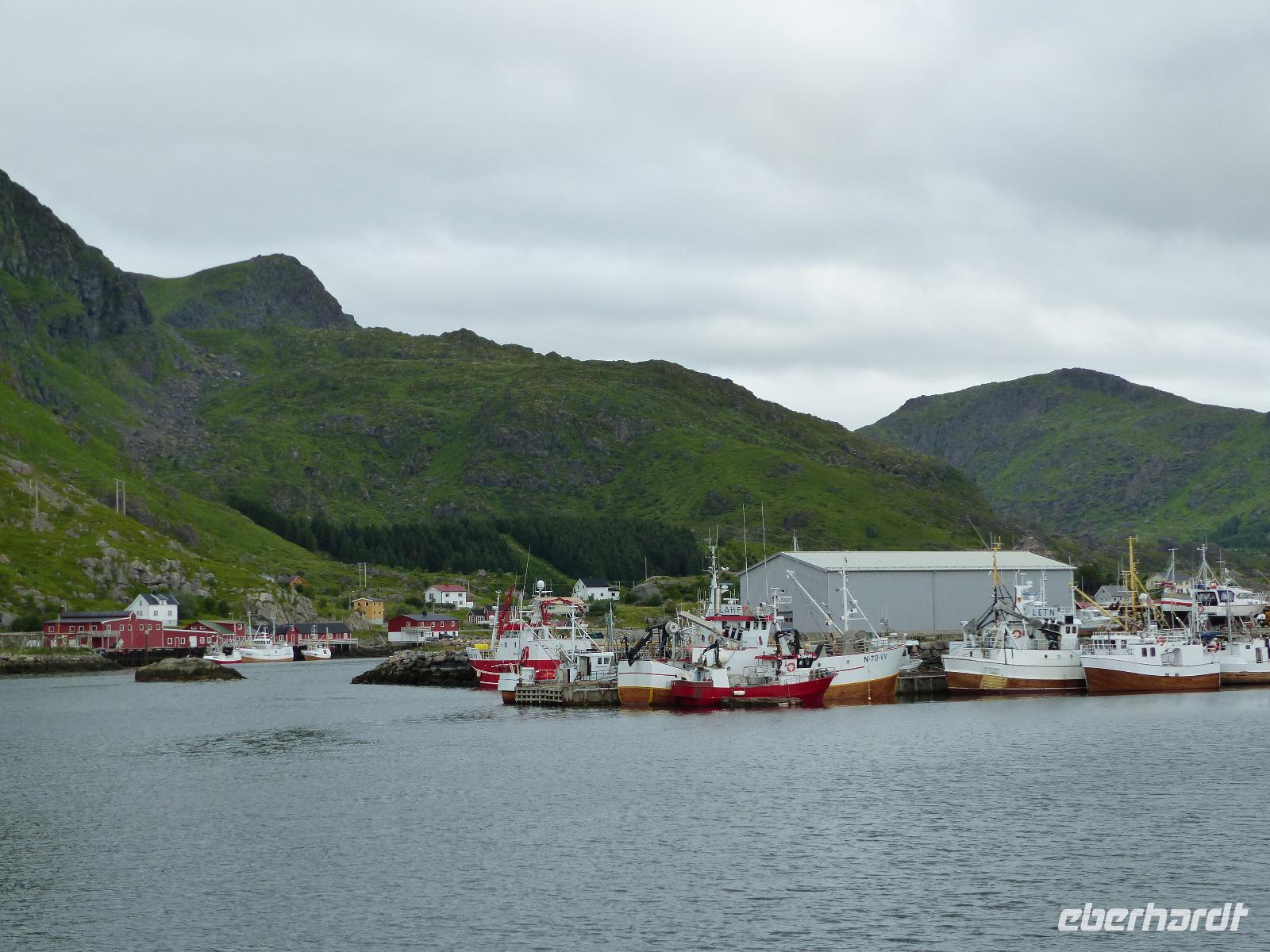 Nach einer kurzen Fahrt über Nacht, erreichen wir am Morgen die bereits von Bodö aus greifbar gewesene Inselgruppe der Lofoten- wahrscheinlich eines der landschaftlichen Höhepunkte unserer Reise! Die Lofoten bieten eine wirklich einzigartige Natur - grüne Wiesen, weiße Sandstrände wie in der Karibik, kristallklares Wasser und wie in unserem Fall mystisch wirkende, im Nebel verhangene, schroffe Felsformationen. Nach dem Frühstück werden wir von unserem örtlichen Reiseleiter Damiano herzlich begrüßt und beginnen unseren Tagesausflug sogleich mit einem Besuch eines typischen Fischerdorfes. Gleich bei unserer Ankunft lässt sich dies aufgrund des Geruches auch nicht mehr verleugnen. Wir lauschen gespannt den Erzählungen über den Fischfang unserem Reiseleiter, denn Damiano versteht es, uns auf sympathische Art und Weise Informationen über diese Region zu vermitteln. Weiter führt uns die Fahrt nach Flagstadoy, eine Insel südwestlich von Vestvagöya und nur durch den 1,8km langen Nappstraumtunnel erreichbar. Hier haben wir einen kurzen Stopp an der hiesigen, im Jahre 1783 erbauten Kirche und einem wunderschönen Strand, welcher direkt am offenen Meer gelegen ist. Passend zur Mittagszeit erreichen wir wenig später das Wikingermuseum Lofotr bei Borg. Wir beginnen unseren Rundgang mit einem einführenden Film und einer sehenswerten Ausstellung, wo wir zunächst jeder individuell mit einem Audioguide ausgestattet, Informationen abrufen können. Nach einer anschließenden traditionellen Wikingermalzeit im Langhaus und den Erzählungen unserer Gästeführerin, haben wir im Anschluss noch ausreichend Zeit die gesamte Anlage individuell zu erkunden. Weiter führt uns unsere Reise zu einem Aussichtpunkt abseits der typischen Touristenrouten, von wo wir einmal einen wunderschönen Blick genießen und zum anderen zahlreiche Köpfe des Stockfisches beim Trocknen sehen und fotografieren können. Da diese normalerweise nur bis Mitte Juni zum Trocknen hängen, haben wir hierbei besonderes Glück. Bei einem anschließenden Besuch einer der wohl schönsten und bekanntesten Strände und einem Stopp mit Aussicht auf unsere in Leknes am Hafen liegende AIDA, kehren wir am späten Nachmittag zurück an Bord. Der erst kürzlich eingesetzte Nieselregen macht uns immerhin den Abschied nicht zu schwer.