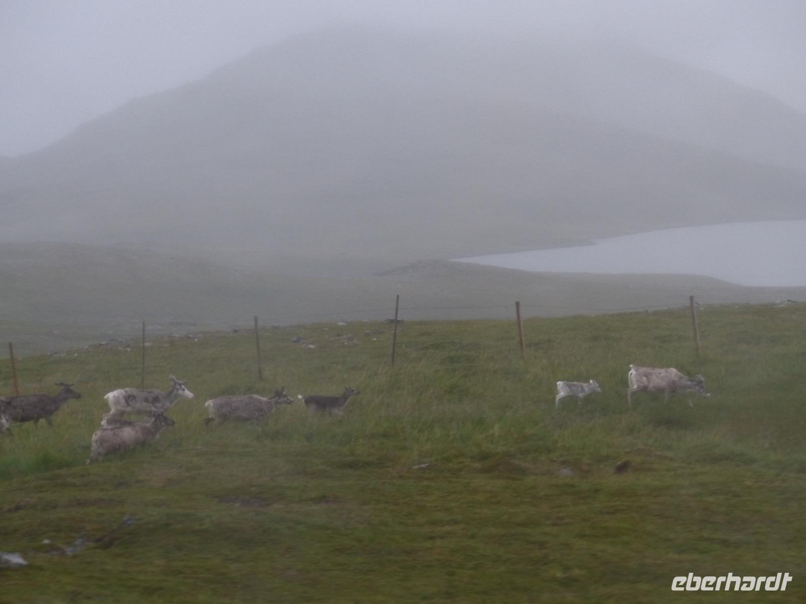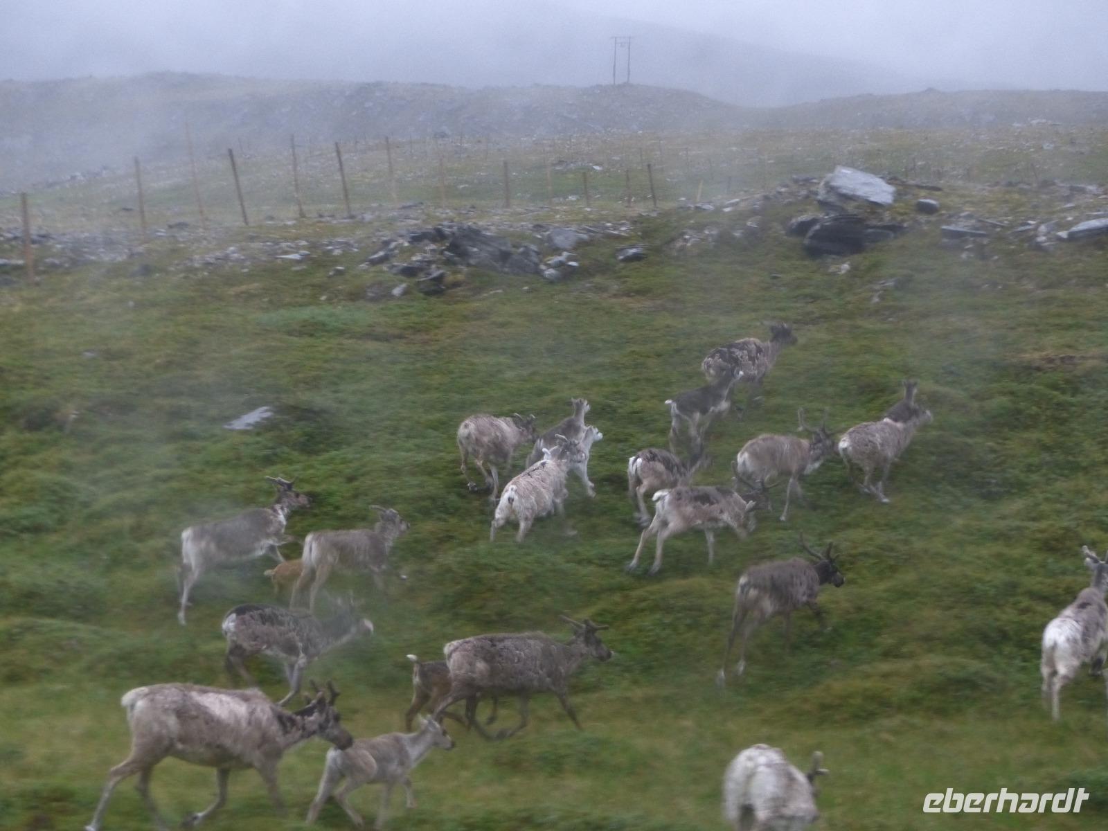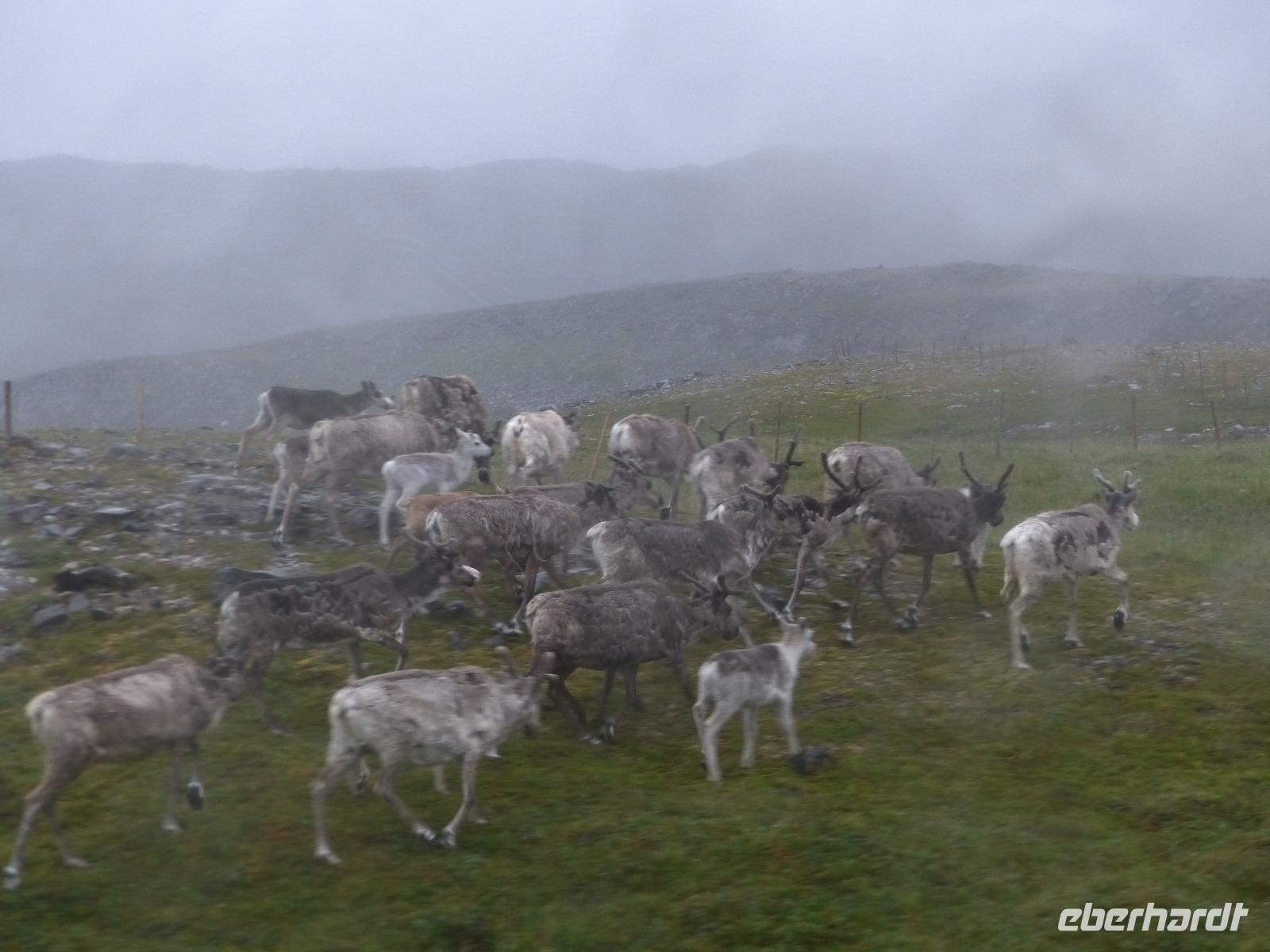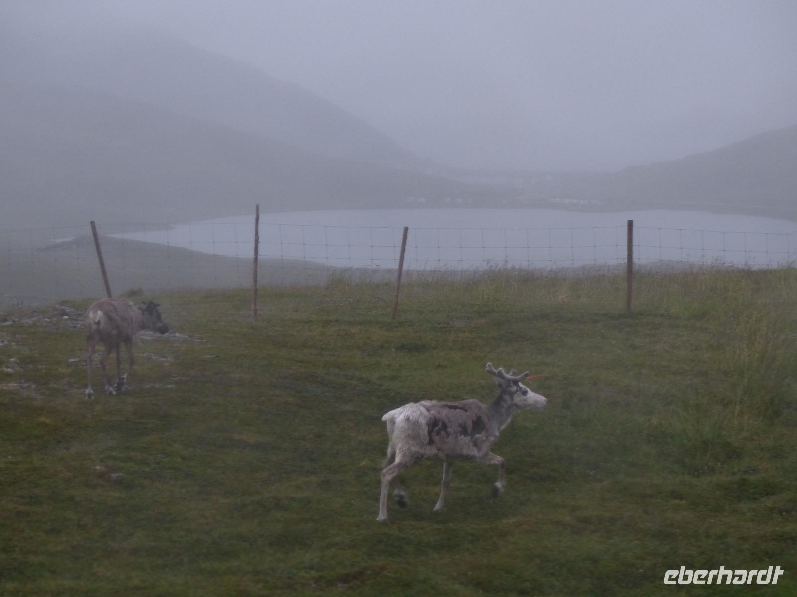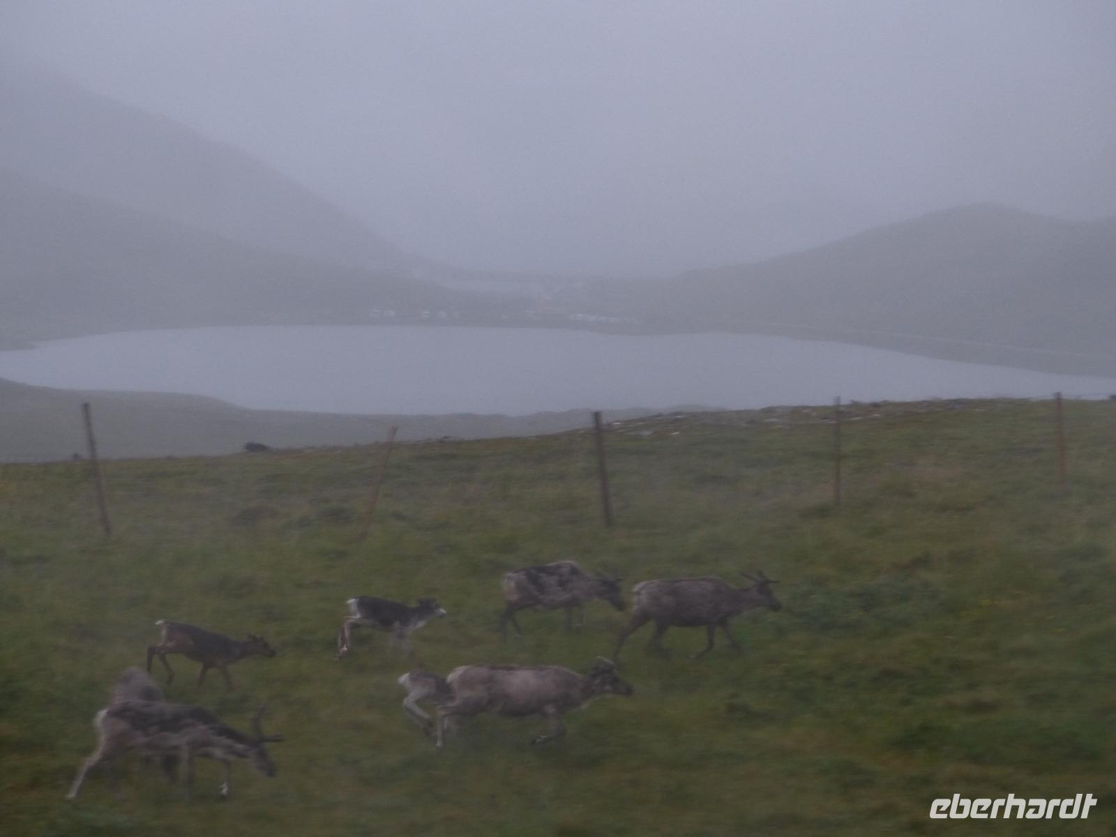 Der heutige Tag steht ganz im Zeichen von Ruhe und Entspannung, denn am Abend oder vielmehr in der Nacht erwartet uns eines der Höhepunkte der Reise - das sagenumworbene Nordkap. Es gibt kaum einen Gast an Bord, welcher sich nicht für diesen Ausflug um Mitternacht entschieden hat. So heißt es für unsere gesamte Gruppe kurz vor zwölf Uhr - bitte einsteigen. Per Bus geht es vorerst eine dreiviertel Stunde bis zum wohl nördlichsten Punkt Europas, glaubt man zumindest den Erzählungen ;). Leider von Nebel und Nieselregen bekleidet, kommen wir gegen ein Uhr zur berühmten Weltkugel. Auch wenn es sich hierbei nur um ein Stahlgerüst handelt, so ist es dennoch ein besonderer Augenblick an diesem Fleckchen Erde zu stehen. Um einen noch besseren Eindruck von dieser Gegend zu erhalten, bietet die Nordkaphalle allerhand Besonderes für seine Besucher- so gibt es zum Beispiel einen 15 minütigen Film, welcher einen guten Einblick in das Leben der hier lebenden Menschen verschafft und ein Postamt die Möglichkeit bietet, Ansichtskarten mit einem besonderen Nordkapstempel an die Liebsten daheim zu versenden. Auch wenn uns die Mitternachtssonne nicht direkt anlacht, so ist es selbst mit Wolken nachts um drei Uhr noch taghell und wir können auf dem Rückweg zum Schiff, einige hier über den Sommer lebende Rentiere der Samen beobachten. Mit einem Schluck Glühwein zum Aufwärmen, werden wir zurück am Bord der AIDA begrüßt und genießen diesmal eine erholsame Nacht im Hafen von Honningsvag.