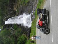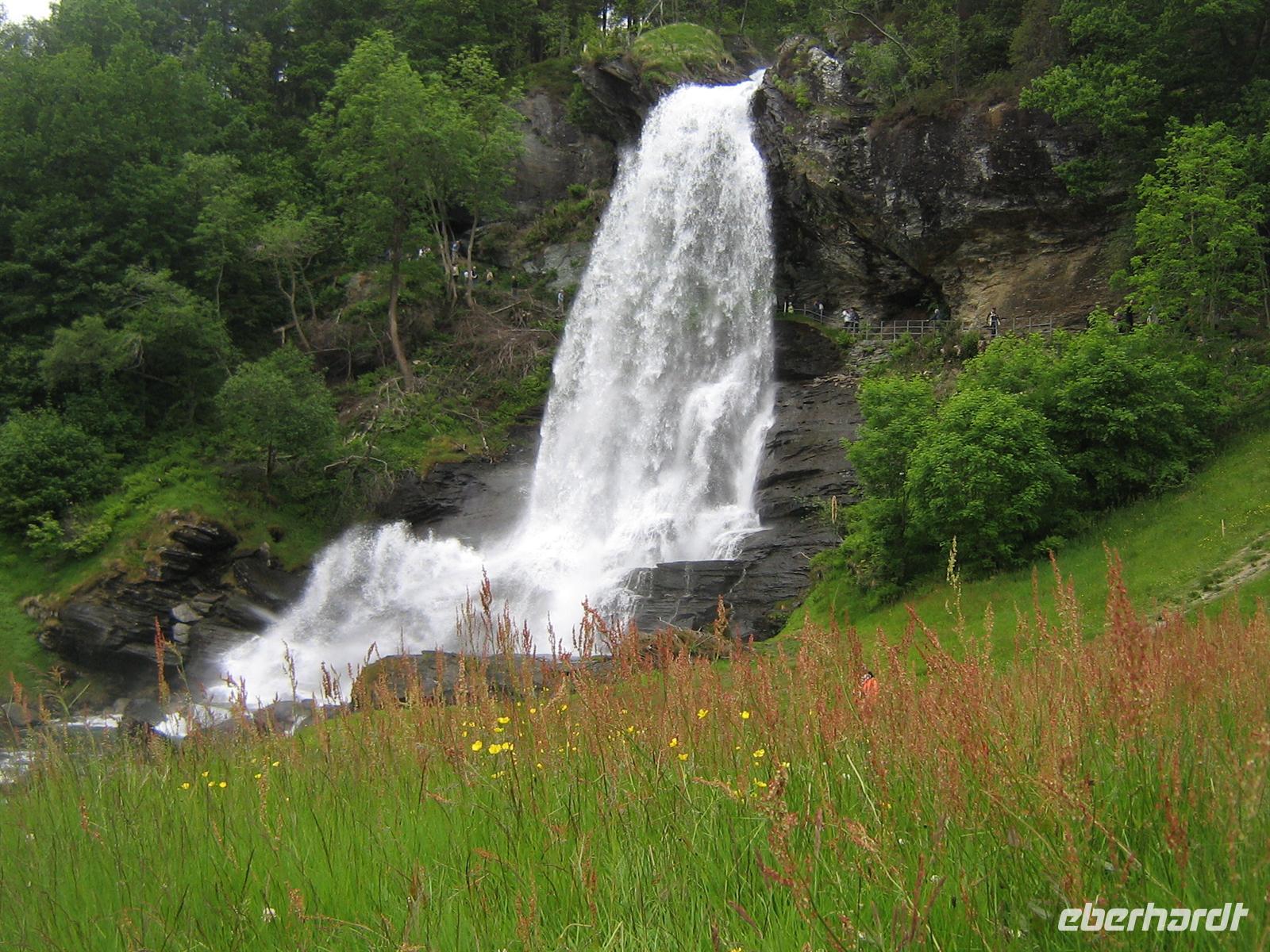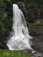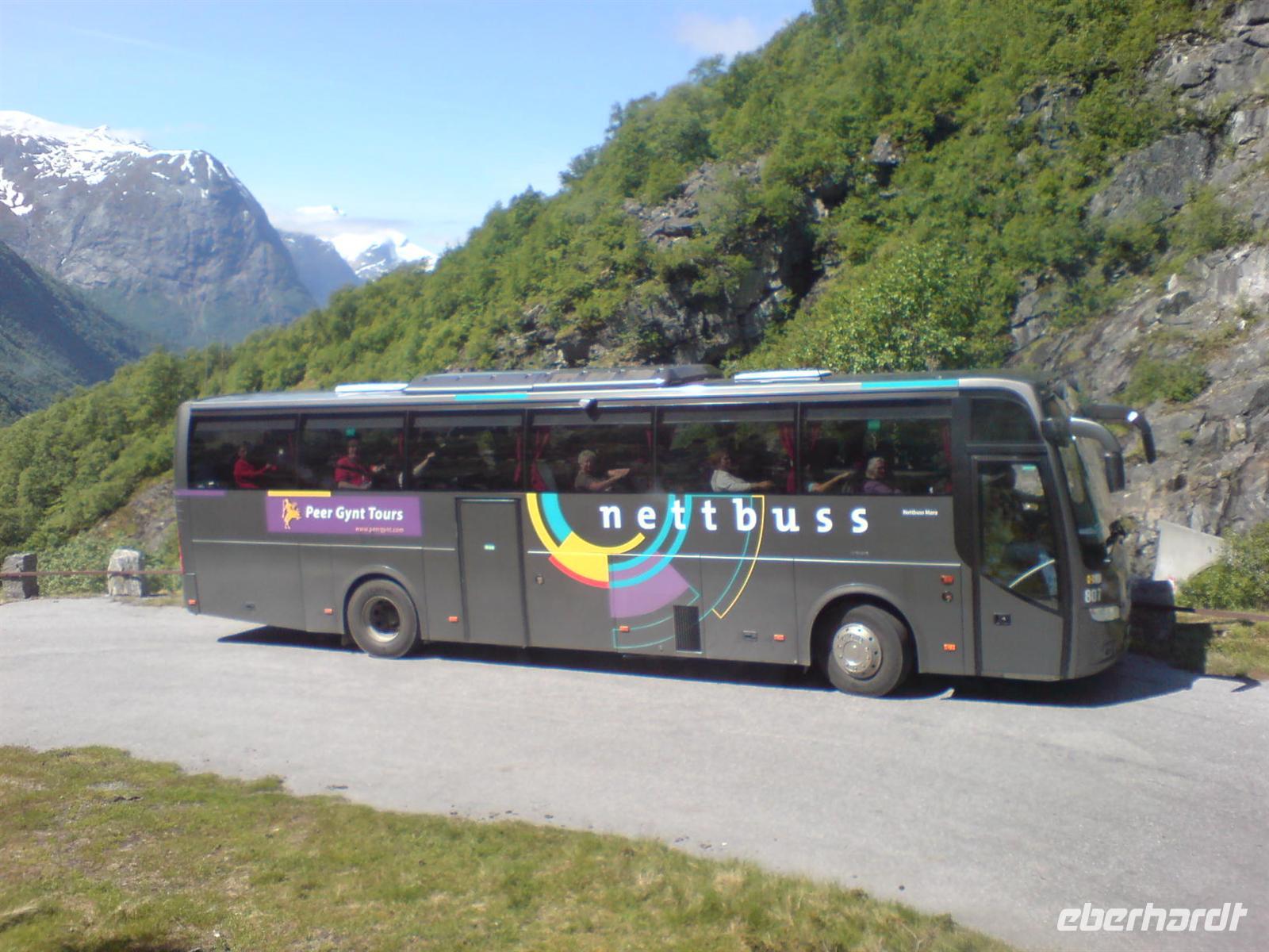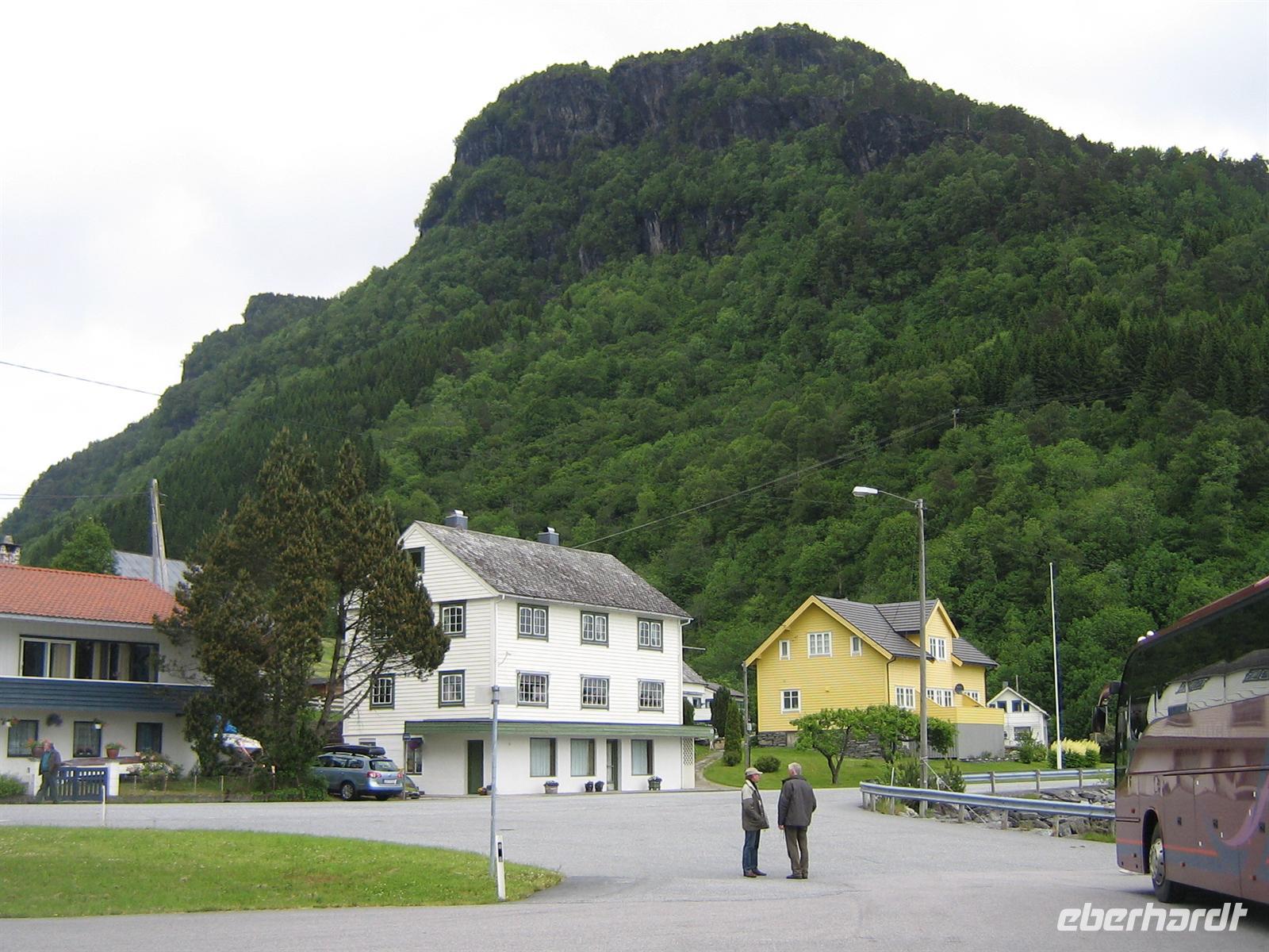 Auch heute trifft wohl wieder der Spruch zu: „Wenn Engel reisen - 63 an der Zahl. ...“ Hellesylt empfing uns mit Morgensonne. Alle freuten sich auf unseren gemeinsamen Eberhardt-Ausflug. Mit den Tendern der AIDA wurden wir an Land gebracht. Das liebliche Dörfchen Hellesylt liegt direkt am Eingang zum Geirangerfjjord. In zwei eigenen Bussen starteten wir zunächst über den alten Postweg nach Stryn. Unsere Guides, Maria und Heike, begleiteten uns mit interessanten Geschichten aus ihrer norwegischen Heimat. Vorbei an vielen Watten (bedeutet Wasser oder See) in den Tälern und über das bergige Land führte unser Weg in das kleine Städtchen Stryn. Auf einem kurzen Spaziergang erfuhren wir auch, dass Stryn Stadtrecht erhielt, obwohl es eigentlich eher ein Dorf ist. Warum? Es gibt hier ein Vinmonopol, das heißt ein staatlich kontrolliertes Geschäft für Bier und Schnaps. In Norwegen, wo man es mit dem Alkohol sehr ernst nimmt, bekommt jeder Ort und sei er noch so klein, das Stadtrecht, wenn er ein Vinmonopol besitzt. Vorbei an Husmannsplätzen (große Höfe), bewaldeten Gebieten und kleinen Ortschaften bestaunten wir die einzigartige Bergwelt. Hier leben ja auch die Trolle, so jedenfalls die alten Sagen der Norweger. Wir sollten aber aufpassen, wenn uns doch einmal welche begegnen, so müssen diese unbedingt drei Finger und einen Daumen haben. Sonst sind es keine echten norwegischen Trolle.