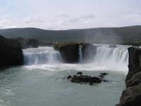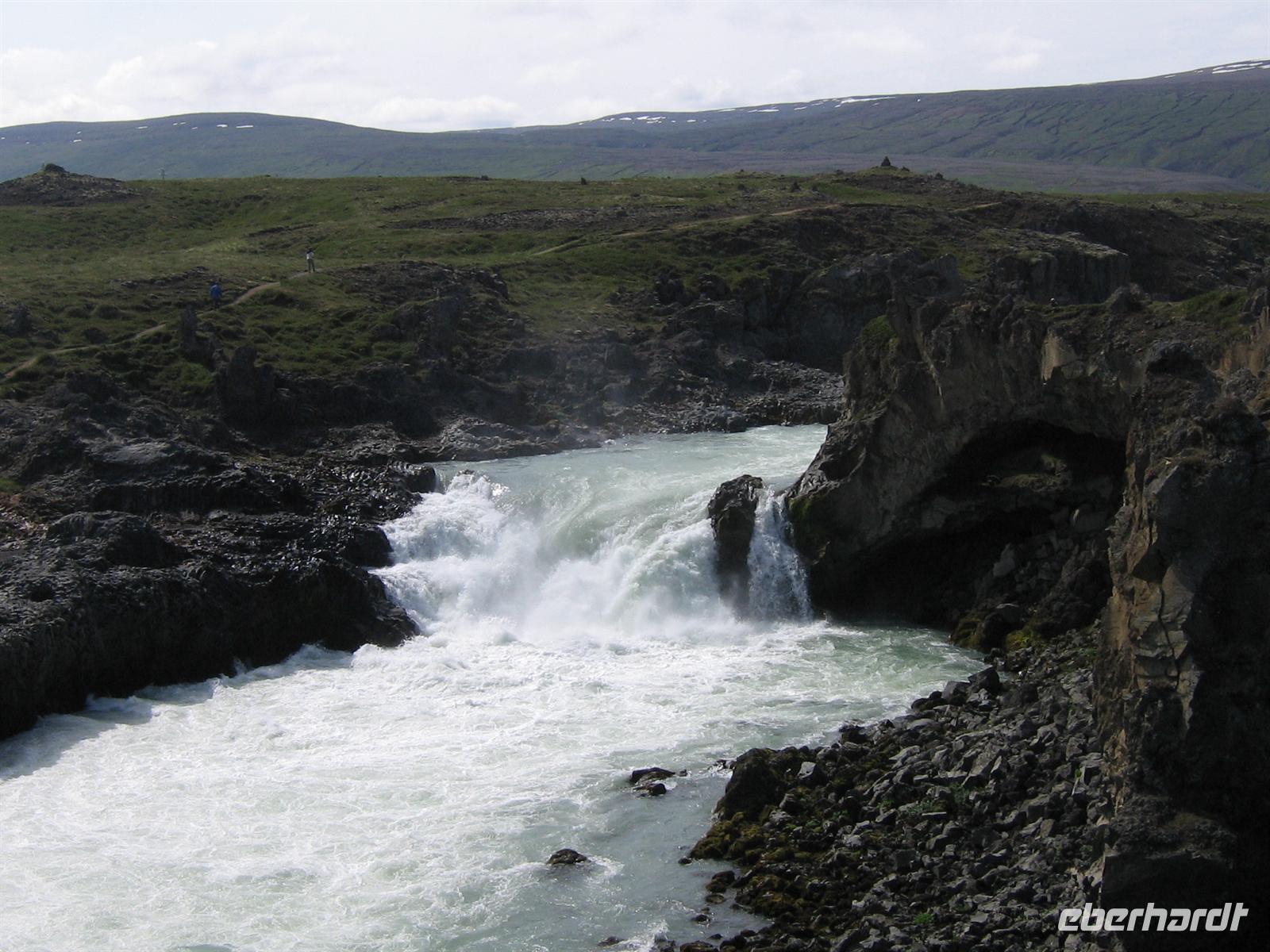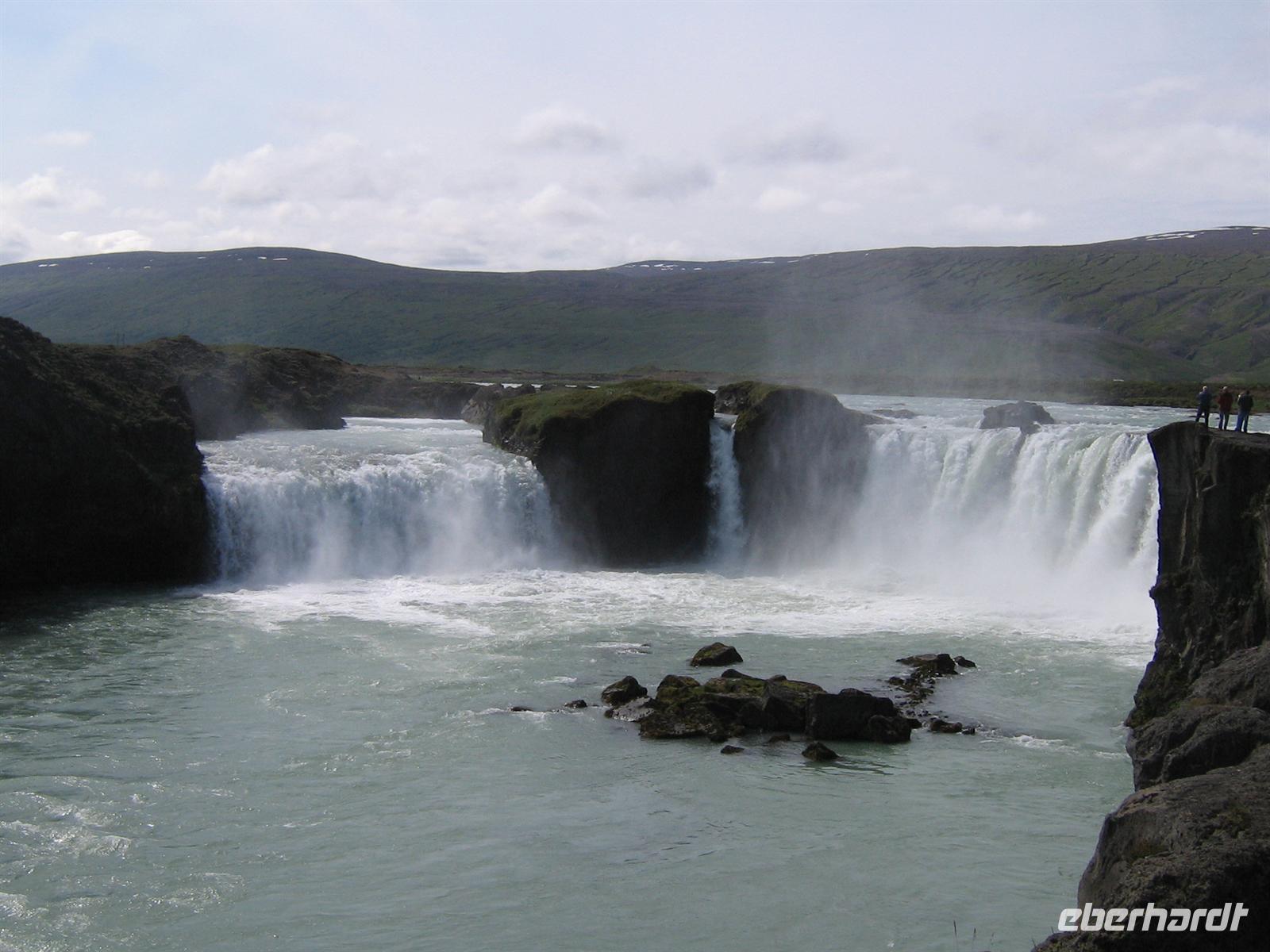 Unser letztes Ziel des Tages war der Godafoss-Götterfall. Warum er diesen Namen trägt? Zur Zeit der Christianisierung warfen die Bürger ihre alten Götterstatuen diesen Wasserfall hinab. Mit seinen bescheidenen zwölf Metern Höhe ist er einer der schönsten Islands.