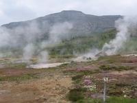 Nach der Besichtigung fahren wir weiter ins Landesinnere, unser nächstes Ziel sind die berühmten Geysire Islands. Immer wieder säumen die blaue Alaskalupine und die kleinen weißen Blumen, der Silberwurz - die Nationalblume Islands, den Wegrand. Im Hochland blicken wir auf Lavafelder - hier nahe Reykjavik Lava, die ca. 1000 Jahre alt ist. Unser Guide spricht mit einem Schmunzeln von „nagelneuer Lava“...