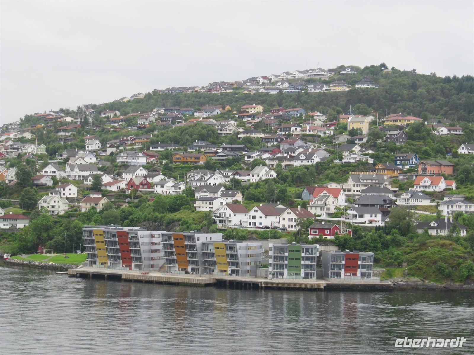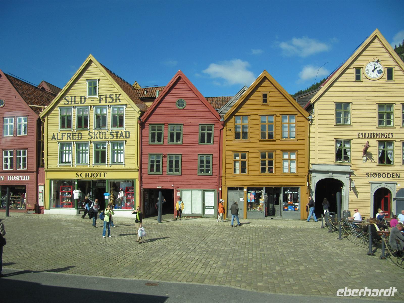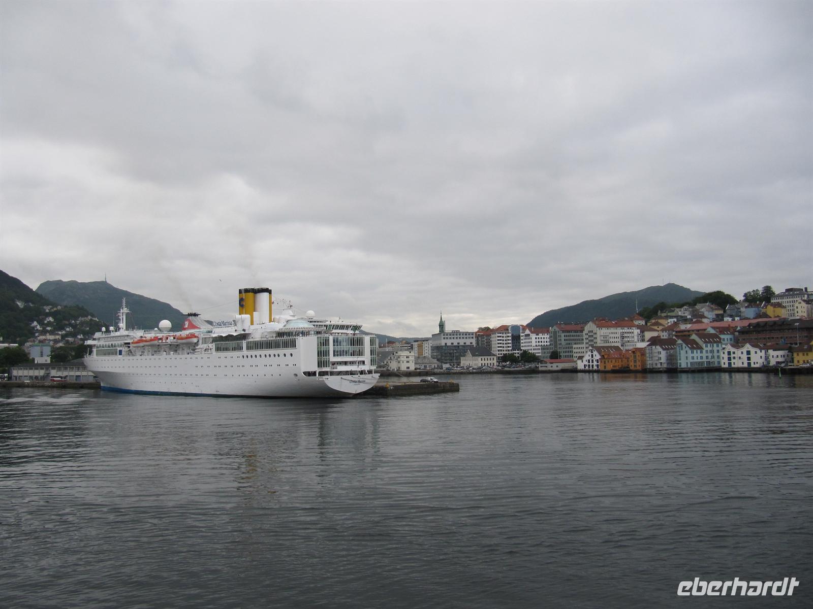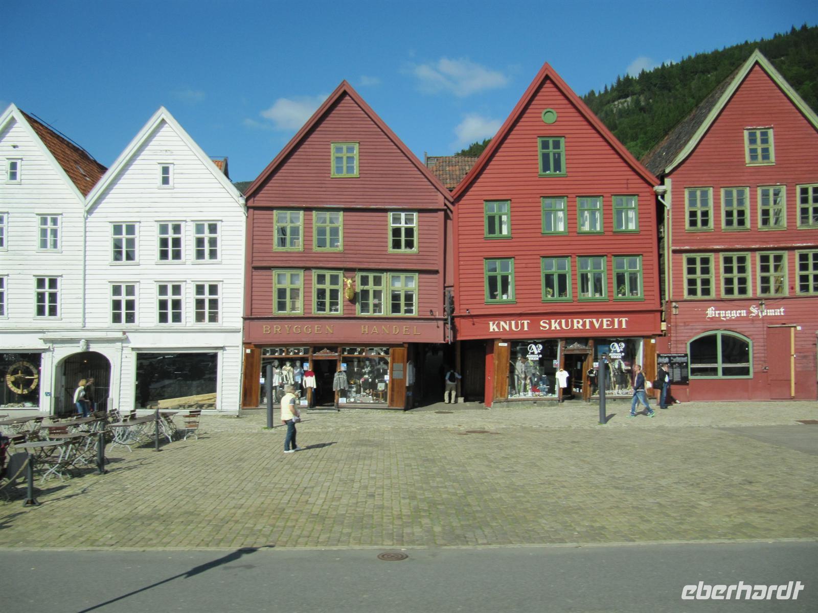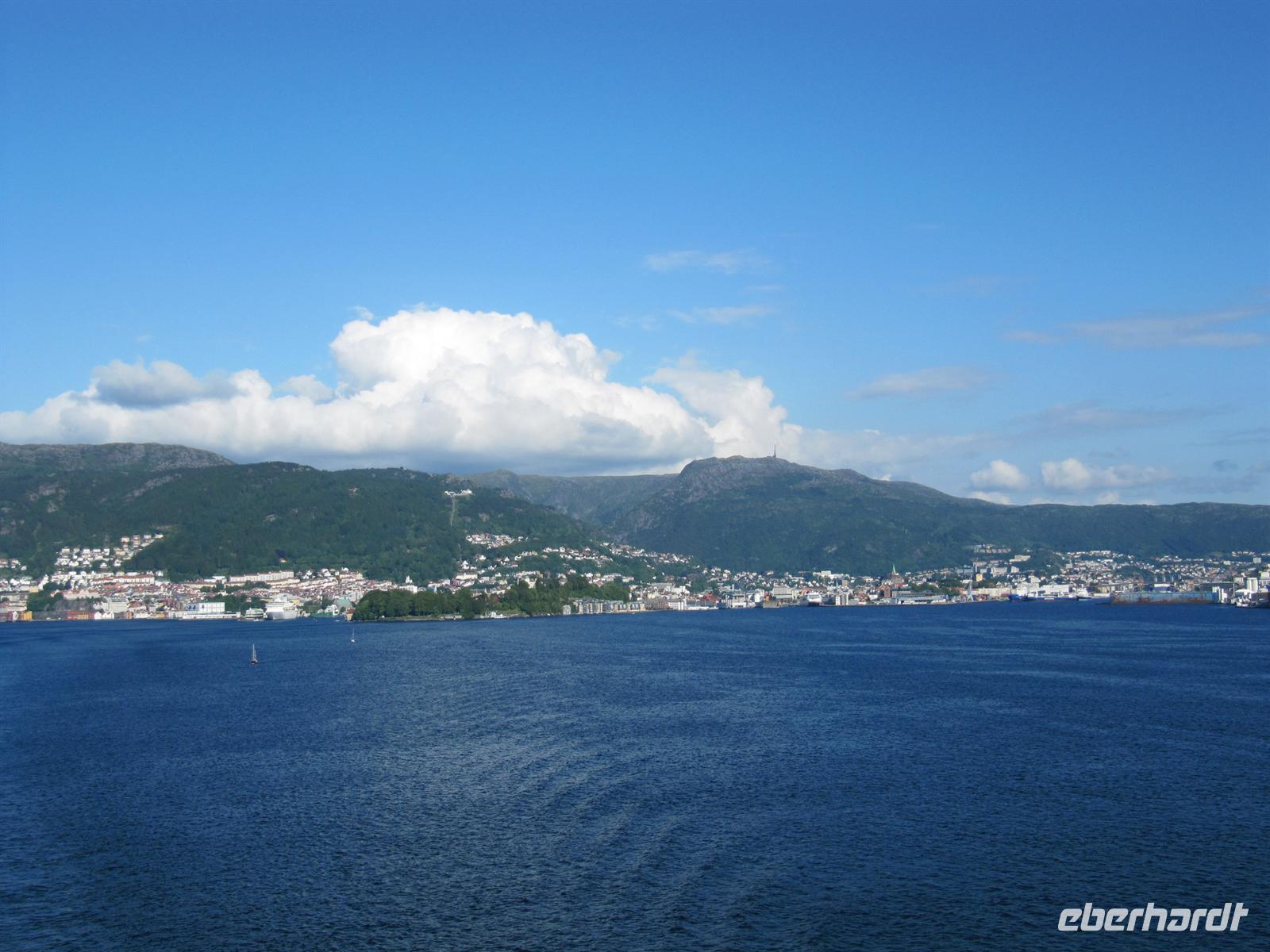 Bereits die Einfahrt in den Hafen von Bergen war ein Erlebnis. Dementsprechend zeitig sind einige Gäste aufgestanden und wir genossen die Sicht auf die hübschen Vororte und auf Bergen vom Außendeck aus. Anschließend standen bereits die ersten Ausflüge auf unserem Programm. Unsere Gäste hatten unterschiedliche Ausflüge gebucht oder wollten Bergen auf eigene Faust erkunden. Die meisten unserer Gäste hatten den Ausflug zum Hardagerfjord gebucht. So konnten wir auch alle gemeinsam in einem Bus den Ausflug starten. Wir unternahmen zunächst eine kleine Stadtrundfahrt durch Bergen. Lukas, unser örtlicher Reiseleiter, zeigte uns die schönsten Orte der wunderschönen Stadt. Wir sahen den Fischmarkt, das alte herrlich restaurierte Hanseviertel Bryggen, welches zum UNESCO-Weltkulturerbe gehört, das Bergenhus und die Hakonshalle, den alten Hafen und die verschiedenen Kirchen. Nun ging es in die wunderschöne Natur. Wir fuhren zunächst durch die Berge nach Hatvik. Mit der Fähre fuhren wir über den Samnangerfjord. Durch herrliche Fjordlandschaft erreichten wir den Hardagerfjord. Mit 179 km Länge ist dieser einer der längsten Fjorde Norwegens. Die imposante Landschaft brachte uns immer wieder zum Staunen. In Öystese legten wir eine Mittagspause ein. Mit ganz leckeren Fischspezialitäten stärkten wir uns. Danach erreichten wir den Steindalsfossen. Ein imposanter Wasserfall, hinter dem man auf einem kleinen Weg spazieren kann. Es ist ein einmaliges Erlebnis, die Wassermassen ins Tal donnern zu sehen. Durch die Tokagjelt-Schlucht und vorbei an Kvamskogen, dem Ski-Eldorado der Bergener führte uns die Reise weiter. Entlang eines Nebenfjords brachte uns der Bus bei herrlichstem Sonnenschein nach Bergen zurück. Der Ausflug hat uns wunderschöne Naturerlebnisse vermittelt. Bei herrlichstem Wetter genossen wir dann wieder die Ausfahrt aus Bergen. Einige Gäste nahmen am Ausflug zum Berg Floyen teil. Mit der Standseilbahn erreichten sie den Aussichtspunkt. Sie waren begeistert von dem fantastischen Panorama. Anschließend wanderten sie nach Bergen zurück.