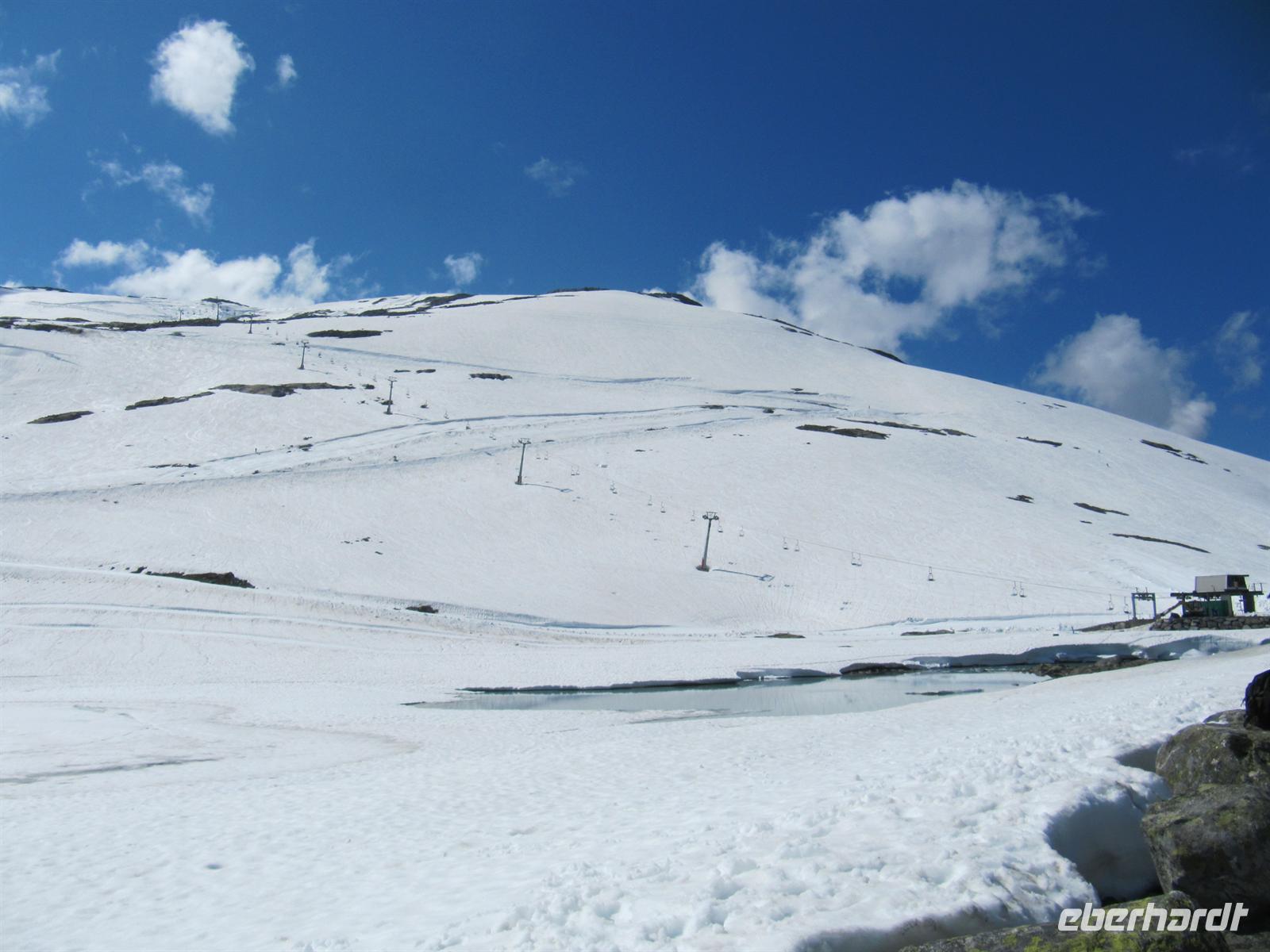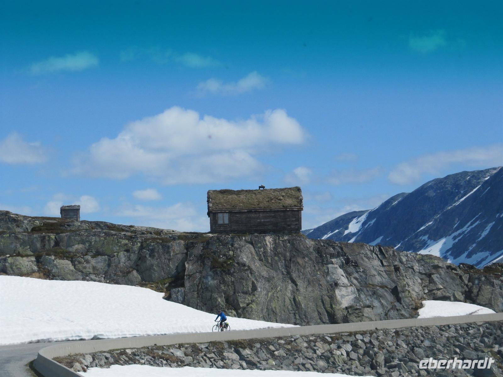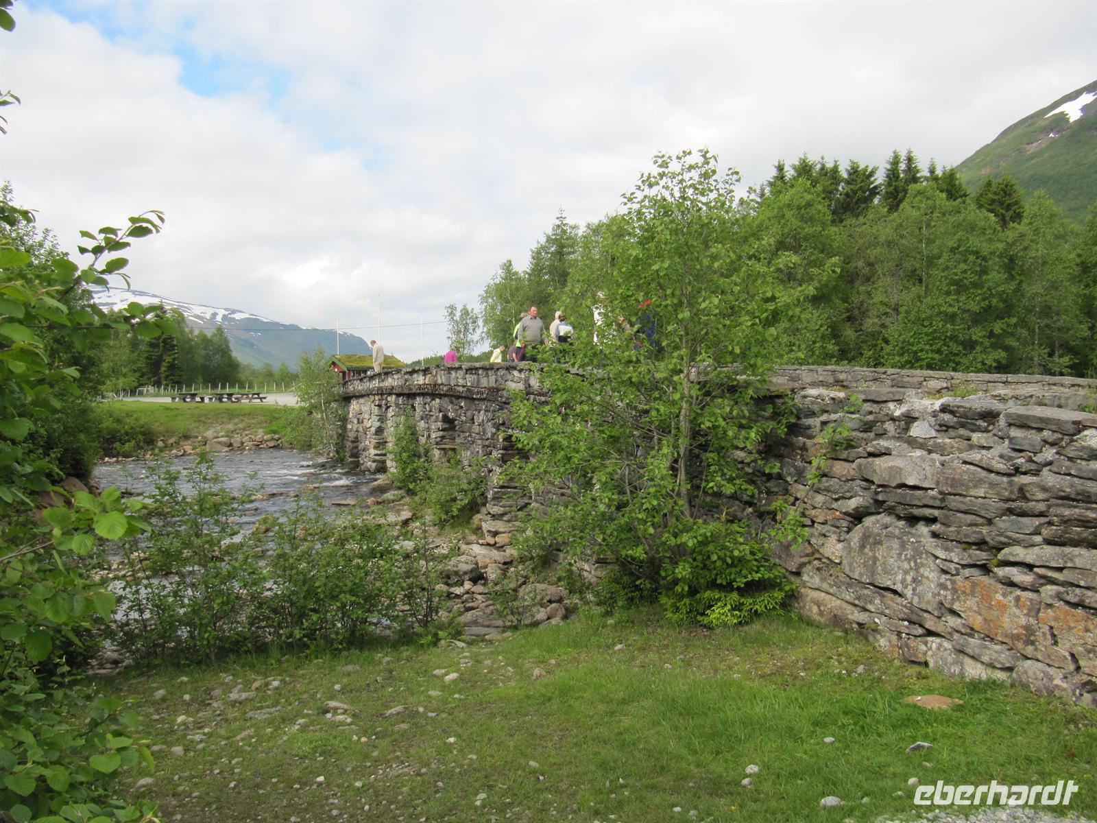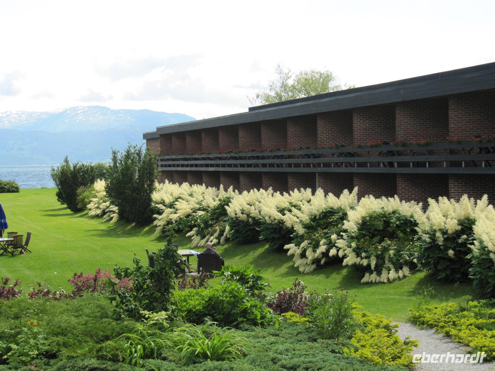 Uns begrüßte wiederum die Sonne am Morgen. Wir freuten uns auf unseren gemeinsamen Eberhardt-Ausflug. Mit den Tenderbooten der AIDA erreichten wir den kleinen Ort Hellesylt, direkt am Eingang zum Geirangerfjord. Maria, unsere Reiseleiterin, erwartete uns bereits. Nach einem kurzen Bummel durch den kleinen Ort starteten wir mit unserem Bus zunächst über den alten Postweg nach Stryn. Maria erzählte uns viele interessante Geschichten aus ihrer Heimat Norwegen. Wir bestaunten den „Hochzeitsstein", durch den der Legende nach die jungen Mädchen klettern mussten, bevor sie heiraten durften. Damit sollte geprüft werden, ob sie wirklich noch jungfräulich waren. Einige unsrer Gäste probierten es aus... Durch herrliche Landschaft brachte uns der Bus nach Stryn. Wir bummelten durch den kleinen Ort. Er bestach durch seine hübschen Häuser. Über die alte sepentienenreiche Straße erreichten wir durch eine imposante Landschaft das Sommer-Skizentrum des Tystigbreen. Wir legten eine kurze Mittagspause ein. In diesem Jahr lagt noch ungewöhnlich viel Schnee. So konnten wir einigen Skifahrern zuschauen. Durch die imposante Hochgebirgslandschaft, die hier aber nur bis ca. 1.100 Meter reicht und dennoch ein ähnliches Gesicht, wie die Alpen in 2.000 - 3.000 Metern Höhe aufweist, ging es weiter. Wir sahen hübsche Hüttensiedlungen, denn jeder Norweger möchte eine Hütte in mitten der Natur haben. Früher dienten die Hütten den Bauern auf den Almen als Unterkünfte und inzwischen sind sie zu Urlaubsdomizilen ausgebaut worden. Nun stand ein Höhepunkt unserer Reise auf dem Programm. Über eine kurvenreiche Schotterstraße erreichten