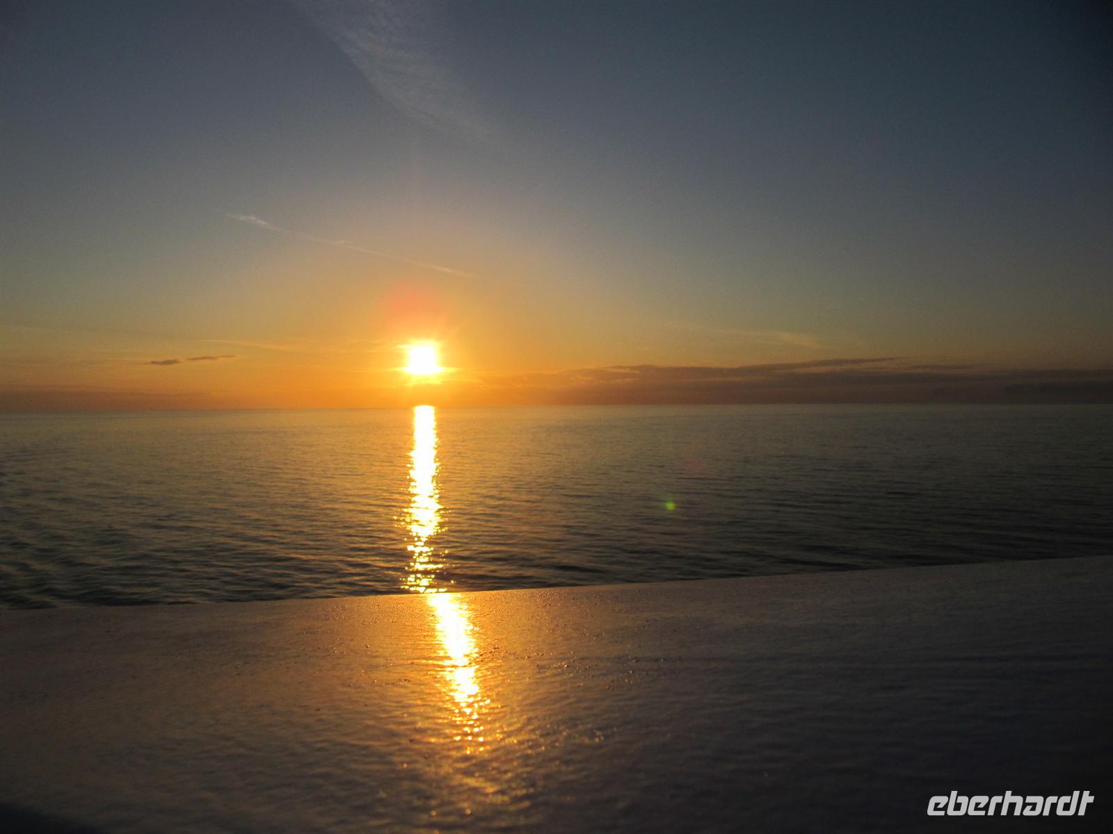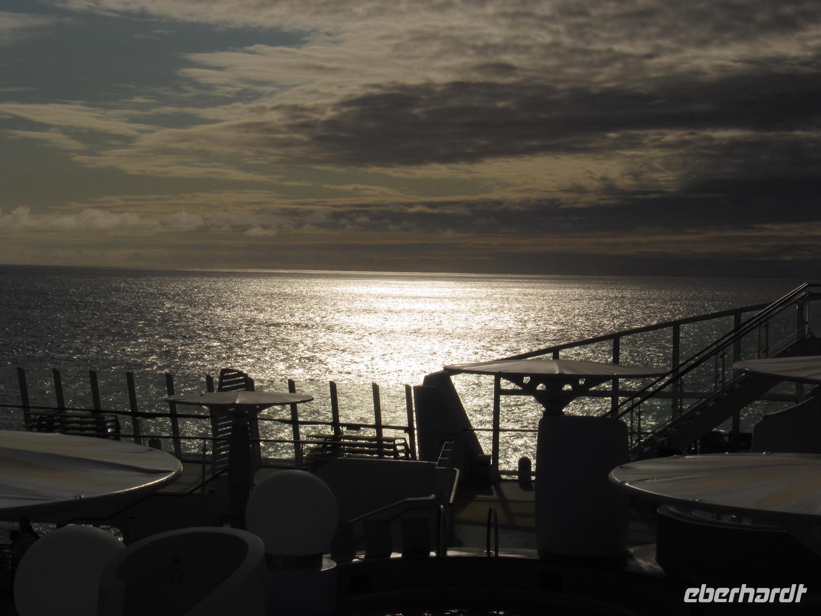 Zwei schöne Seetage standen uns bevor. Die See war ruhig und so konnten wir alle die Tage voll genießen. Das Angebot auf dem Schiff war vielfältig, ob verschiedene Vorträge zu unseren nächsten Reisezielen, Tanzkurs, Kochkurs, Malkurs oder Entspannen im Spa-Bereich. Es gibt auf dem Schiff einige ruhige Plätze, wo man sich mit einem guten Buch zurück ziehen kann oder um einfach auf das weite Meer hinaus zu schauen und den Gedanken freien Lauf zu lassen. Langeweile kam nie auf. Ganz Mutige mummelten sich dick ein und genossen die frische Meeresluft an Deck.