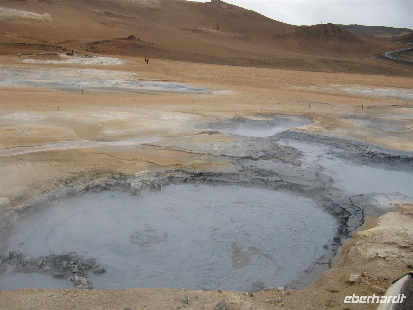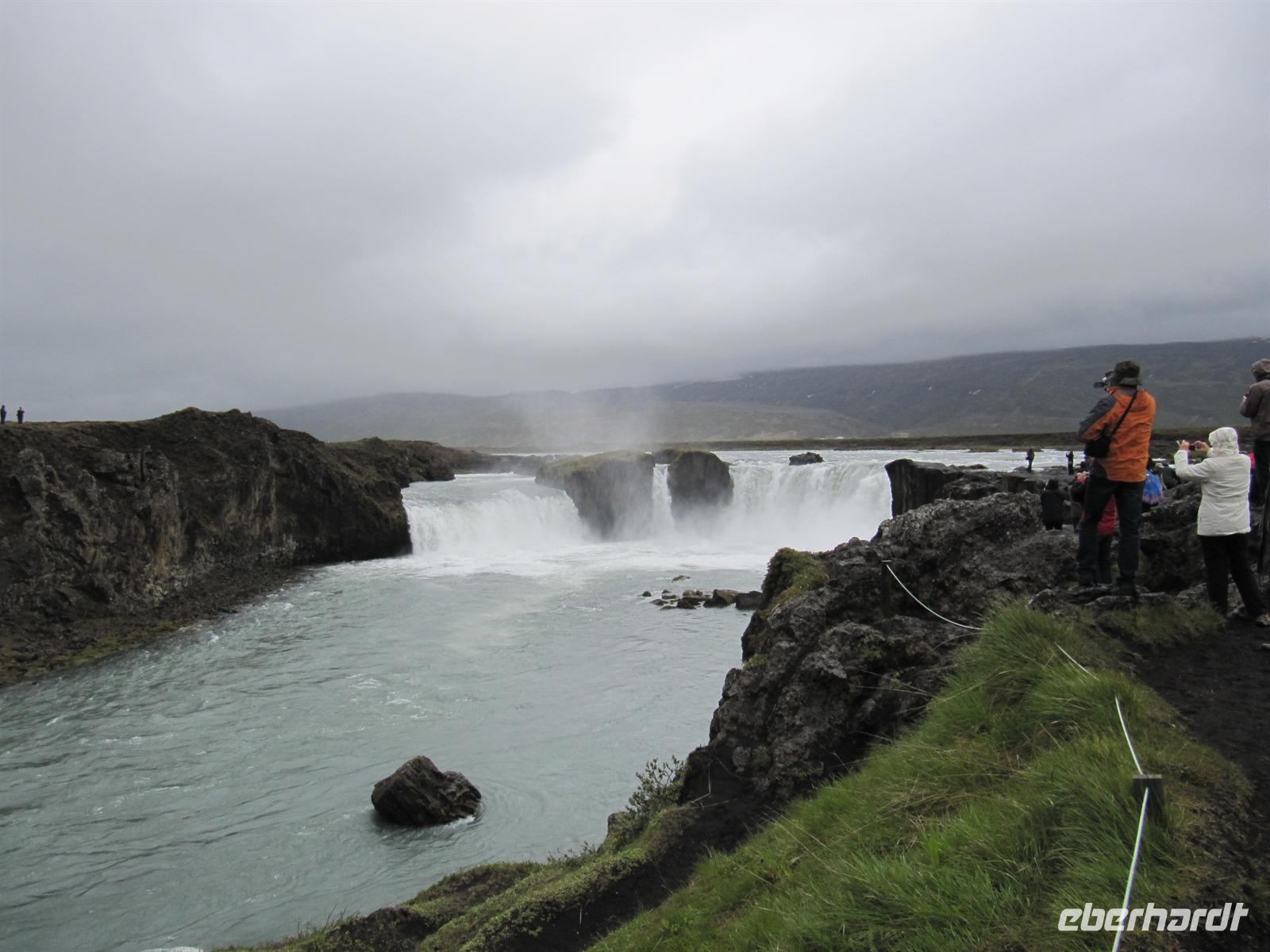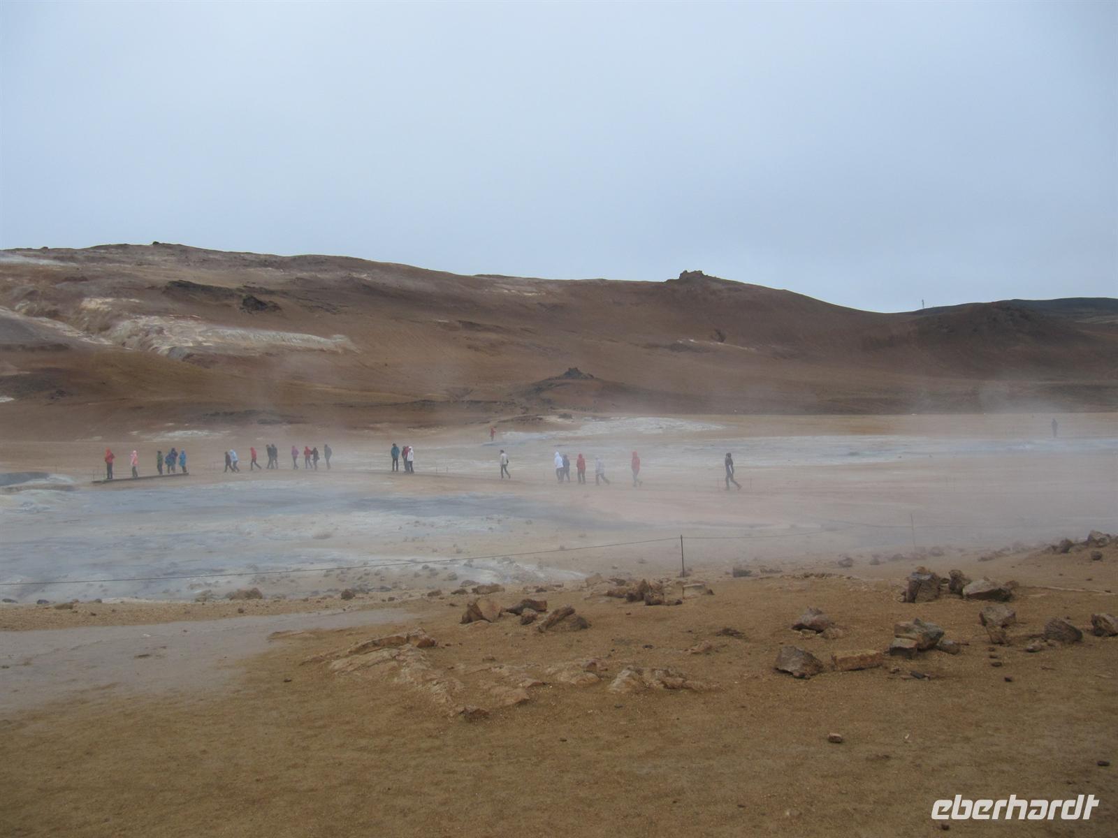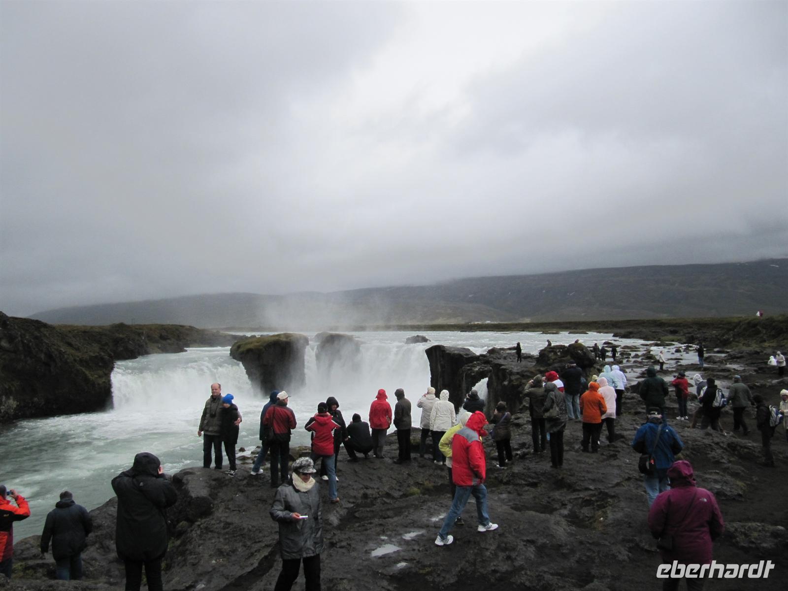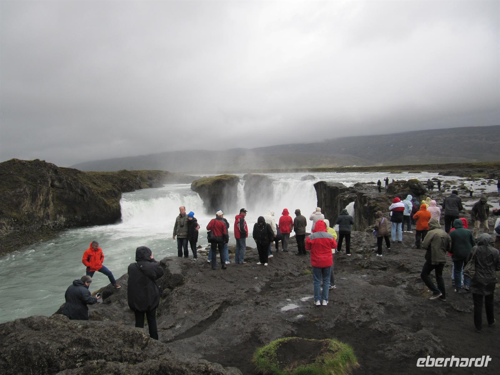 so manch Geschichte dazu zu erzählen. Danach erreichten wir Námafjall ein geothermisches Hochtemperaturgebiet. Schon von weitem drang der beißende Schwefelgeruch in unsere Nasen. In diesem Gebiet tritt heißer Dampf aus der Erde unter hohem Druck aus. Schwefelwasserstoff tritt mit dem Dampf aus uns verursacht den charakteristischen Geruch. Die blubbernden Schlammlöcher und der aus verschiednen Erdspalten aufsteigende Dampf waren faszinierende Begegnungen mit den Aktivitäten im Innern unserer Erde. Abschließend bestaunten wir noch den Godafoss den „Wasserfall der Götter". Hier stürzt sich das Wasser 12 Meter in die Tiefe. Der Name soll aus der Zeit der Christianisierung Islands um das Jahr 1.000 herum stammen. Nachdem die Entscheidung zum Übertritt zum Christentum gefallen war, sollen die Bürger die heidnischen Götterstatuen in den Wasserfall geworfen haben. Eine kleine Stadtrundfahrt durch Akureyri rundeten den erlebnisreichen Tag ab. Am Nachmittag verließ die AIDAluna den Hafen und nahm Kurs auf Süden. Es erwartete uns eine etwas rauere See mit Windstärke 7 - 9 und das Schiff schaukelte um einiges mehr, als die letzten Tage.