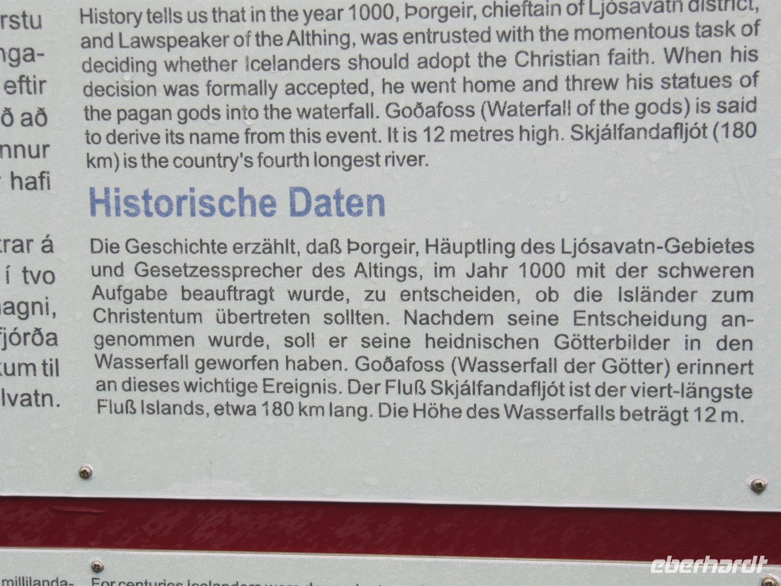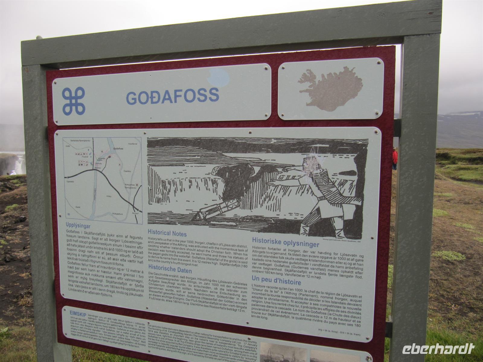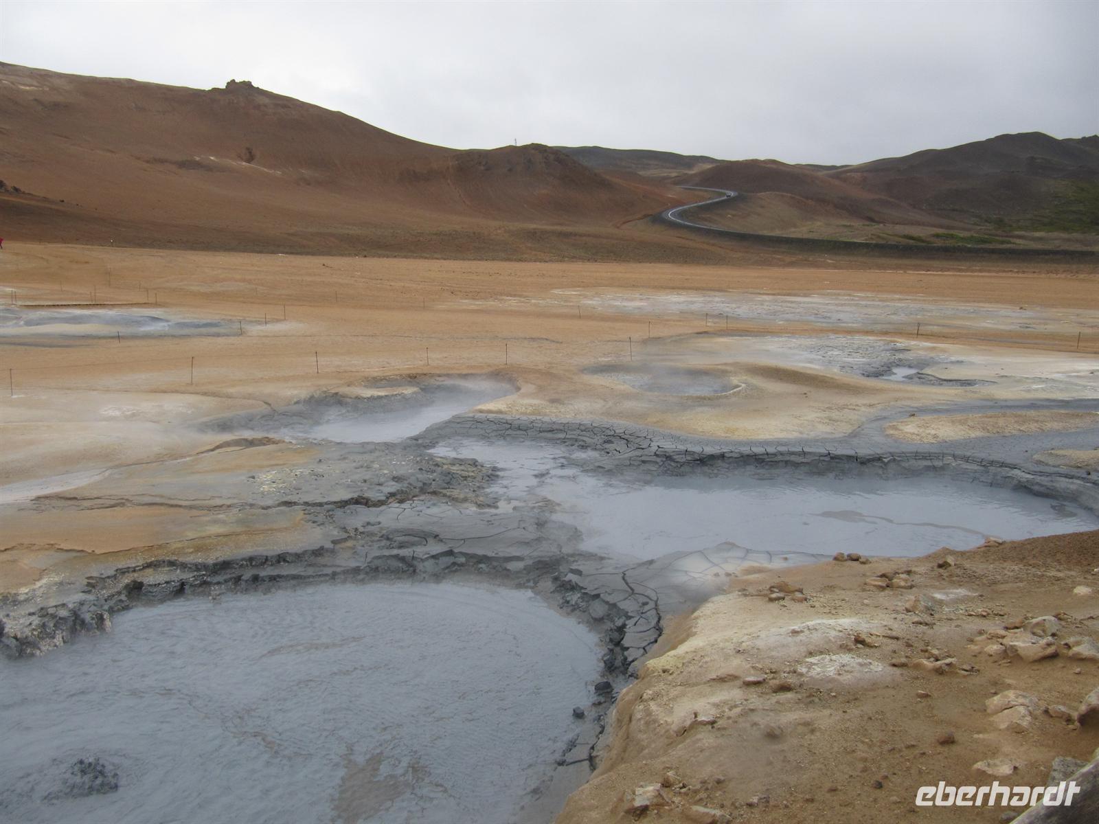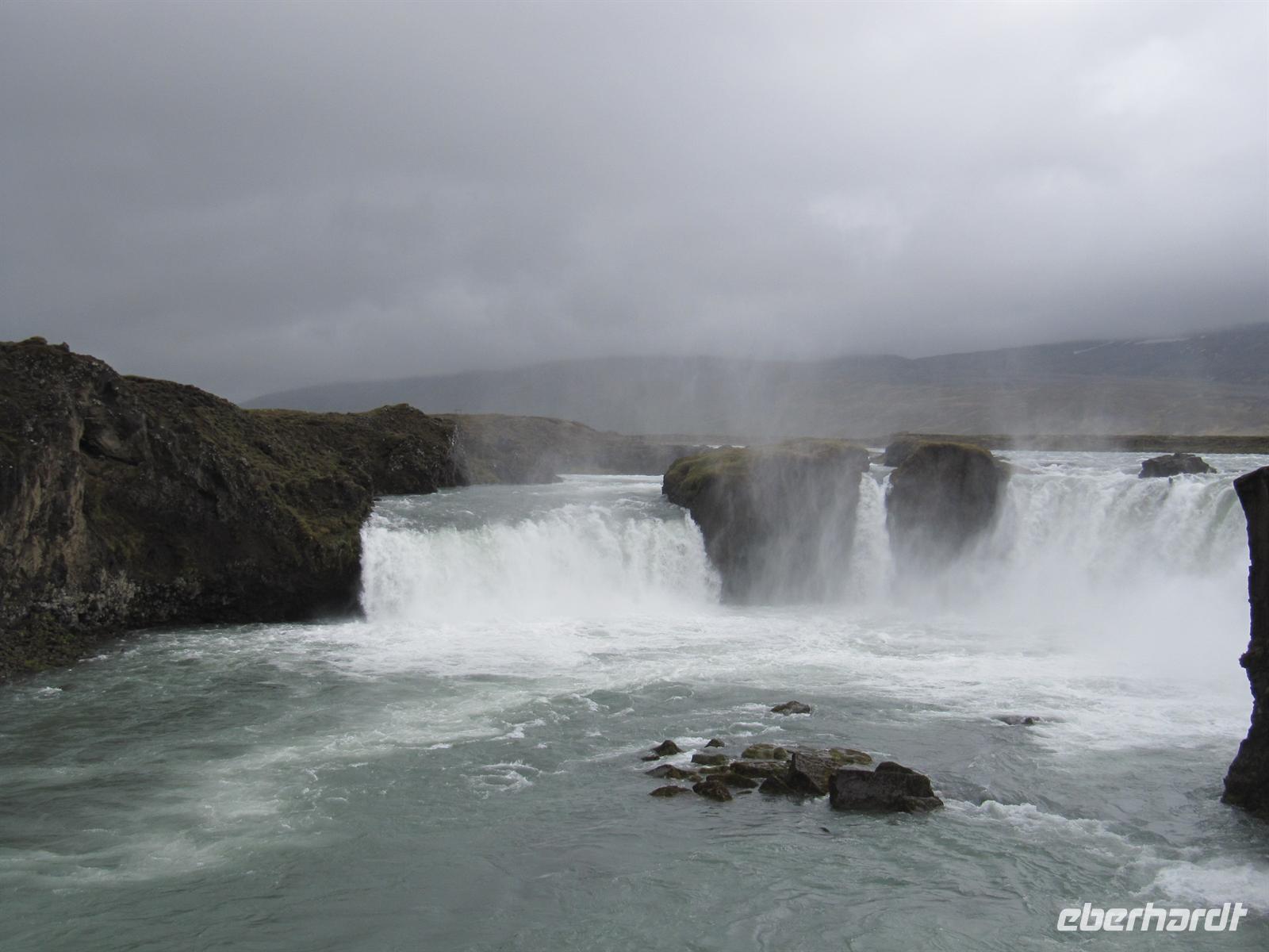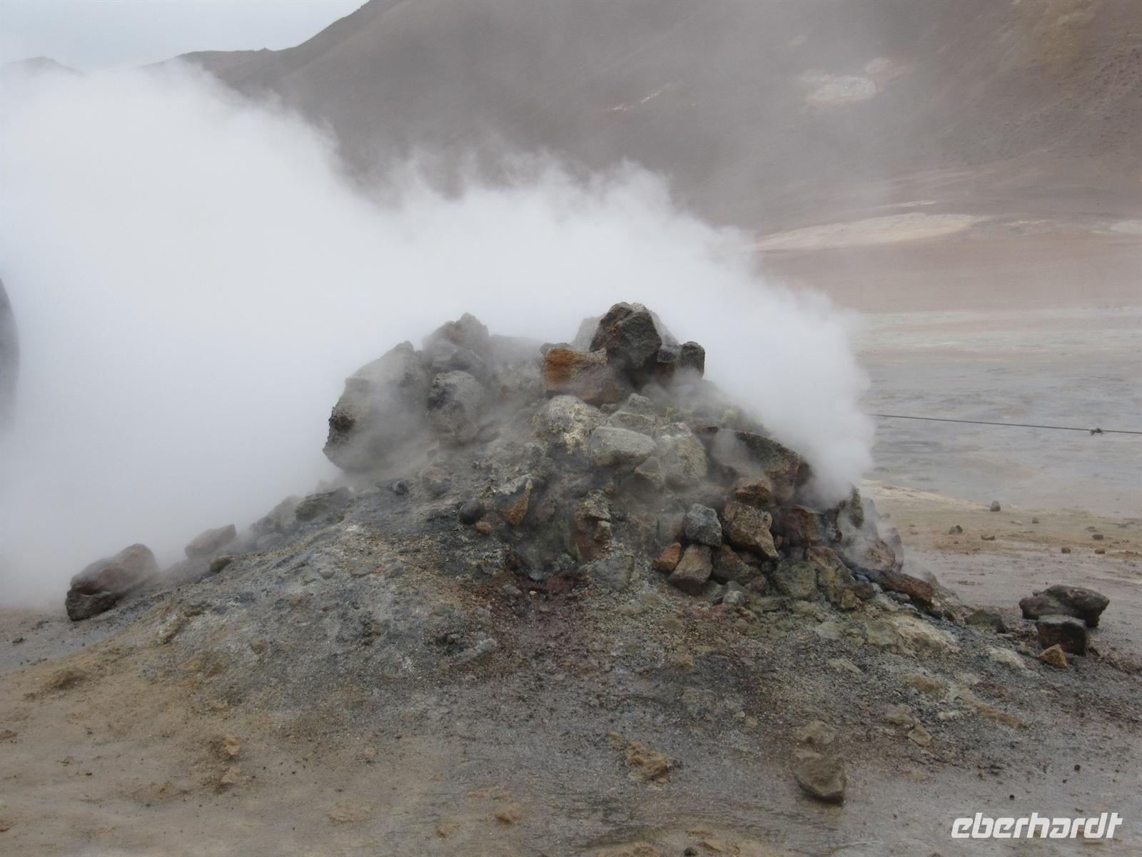 so manch Geschichte dazu zu erzählen. Danach erreichten wir Námafjall ein geothermisches Hochtemperaturgebiet. Schon von weitem drang der beißende Schwefelgeruch in unsere Nasen. In diesem Gebiet tritt heißer Dampf aus der Erde unter hohem Druck aus. Schwefelwasserstoff tritt mit dem Dampf aus uns verursacht den charakteristischen Geruch. Die blubbernden Schlammlöcher und der aus verschiednen Erdspalten aufsteigende Dampf waren faszinierende Begegnungen mit den Aktivitäten im Innern unserer Erde. Abschließend bestaunten wir noch den Godafoss den „Wasserfall der Götter". Hier stürzt sich das Wasser 12 Meter in die Tiefe. Der Name soll aus der Zeit der Christianisierung Islands um das Jahr 1.000 herum stammen. Nachdem die Entscheidung zum Übertritt zum Christentum gefallen war, sollen die Bürger die heidnischen Götterstatuen in den Wasserfall geworfen haben. Eine kleine Stadtrundfahrt durch Akureyri rundeten den erlebnisreichen Tag ab. Am Nachmittag verließ die AIDAluna den Hafen und nahm Kurs auf Süden. Es erwartete uns eine etwas rauere See mit Windstärke 7 - 9 und das Schiff schaukelte um einiges mehr, als die letzten Tage.