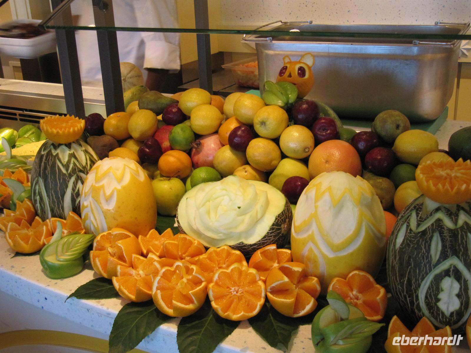 Heute stand uns ein zusätzlicher Seetag bevor. Auf der AIDAluna wurden wiederum verschiedene Vorträge, Workshops und sportliche Aktivitäten angeboten. Am Mittag kam dann die Sonne raus und wir konnten einen herrlichen Nachmittag auf dem Außendeck genießen. An dieser Stelle seien vielleicht einmal die Restaurants an Bord erwähnt. In den drei großen Buffet-Restaurants konnten wir täglich zu drei Mahlzeiten aus einem reichhaltigen und sehr schmackhaftem Angebot wählen. Ob traditionelle bodenständige deutsche Küche, asiatische Köstlichkeiten oder Gerichte aus den bereisten Ländern die Mannschaft um den Küchenchef verstand es, uns immer wieder zu Verführen. Besonders umfangreich war das Fischangebot. Wahrscheinlich jeder auf dem Schiff fürchtet sich vor dem Gang auf die Waage zu Hause, denn sicher werden einige Gramm mehr angezeigt, als vor der Reise.